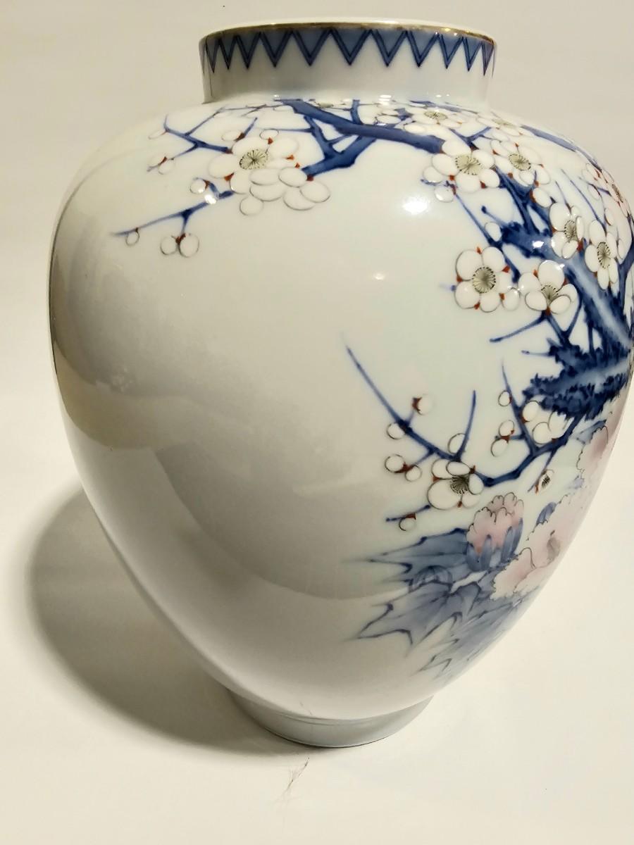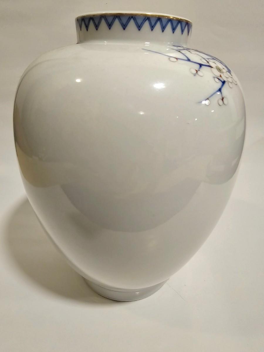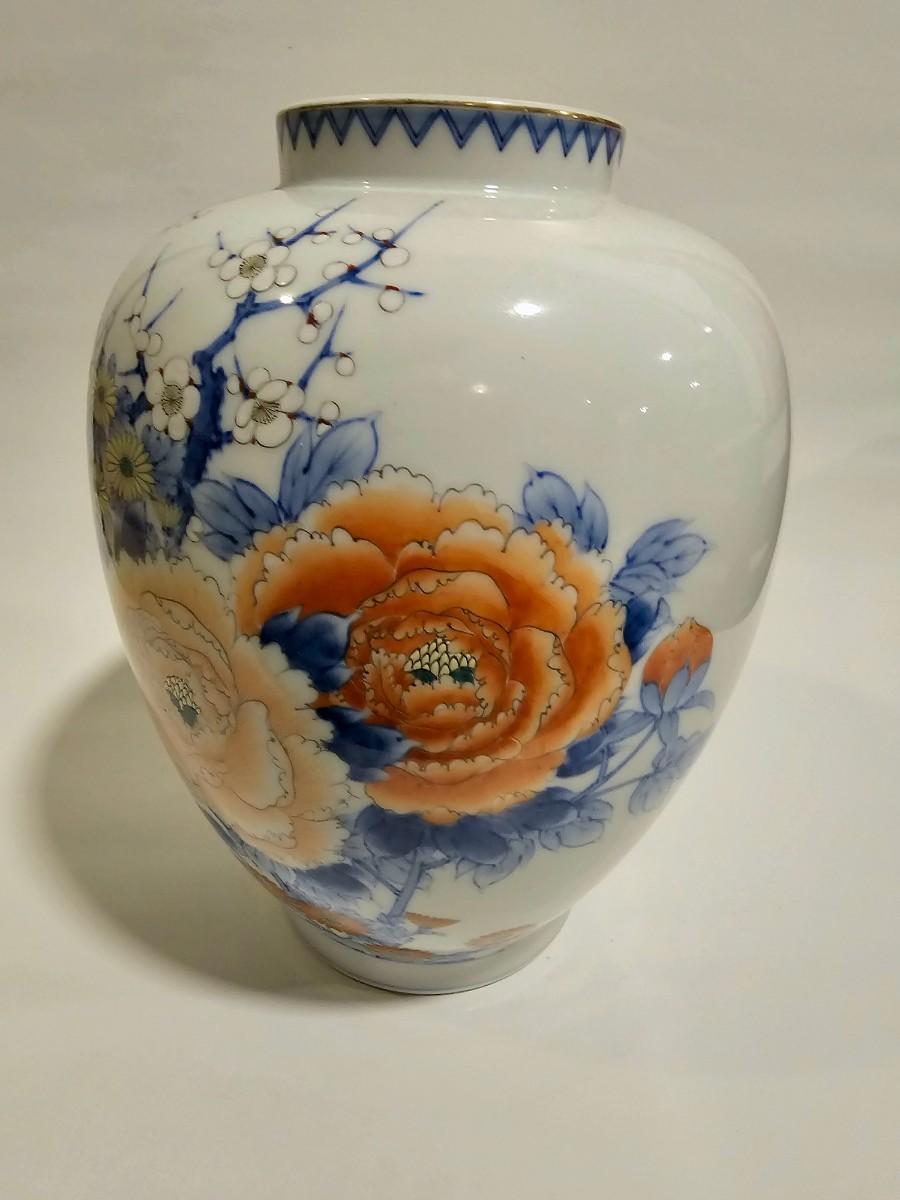 This is a large Japanese handpainted vase on white porcelain 10 inches tall and widest 7in