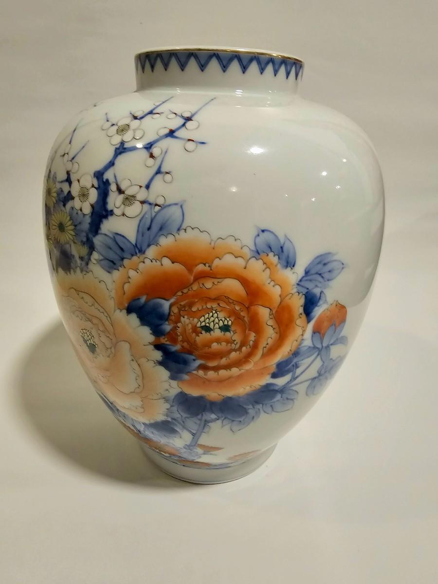 This is a large Japanese handpainted vase on white porcelain 10 inches tall and widest 7in
