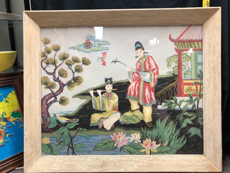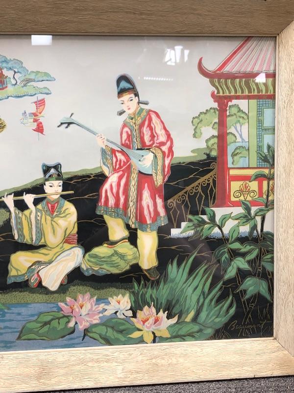 Large Japanese inspired watercolor painting by Arthur Beaumont. Beautifully colored. Great Condition.