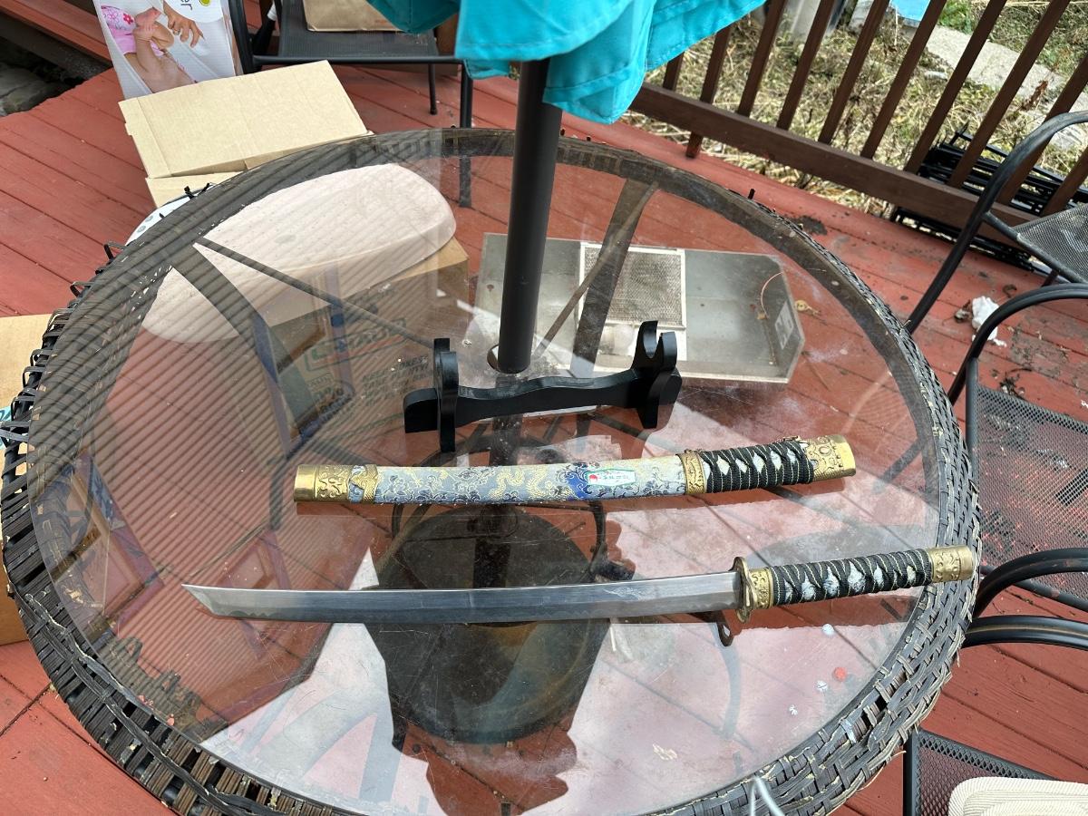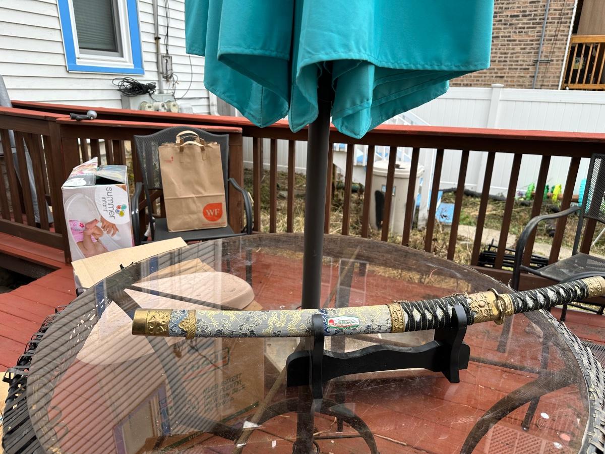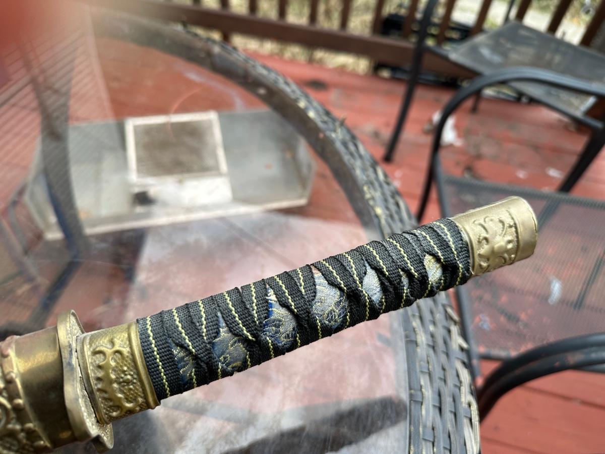 Katana for display or costume purposes. Blade is metal but does not extend into the hilt as would a combat sword.