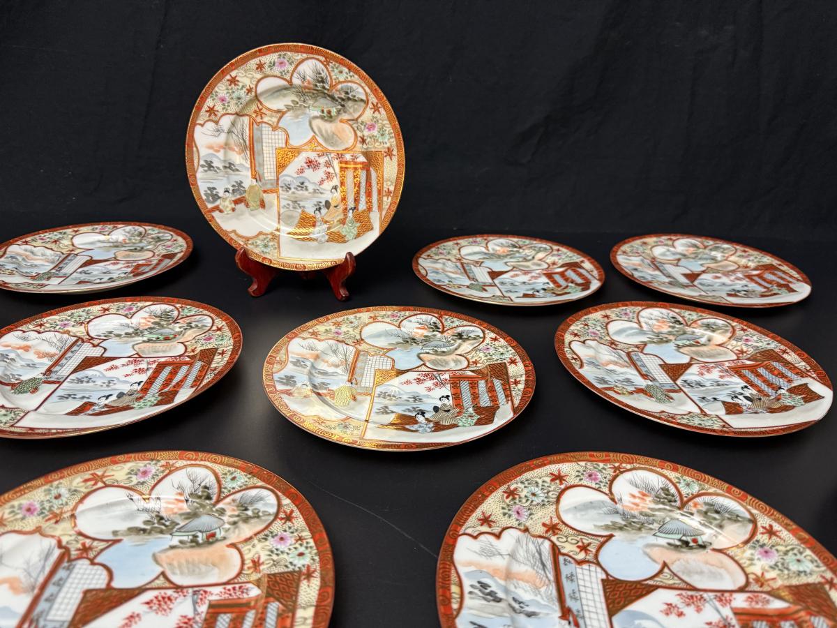 Nice antique set of 11 plates, pitcher and covered jar. Plates approximately 7 1/4” round.