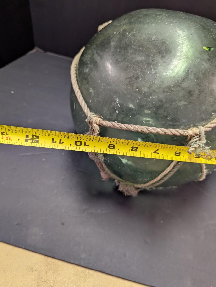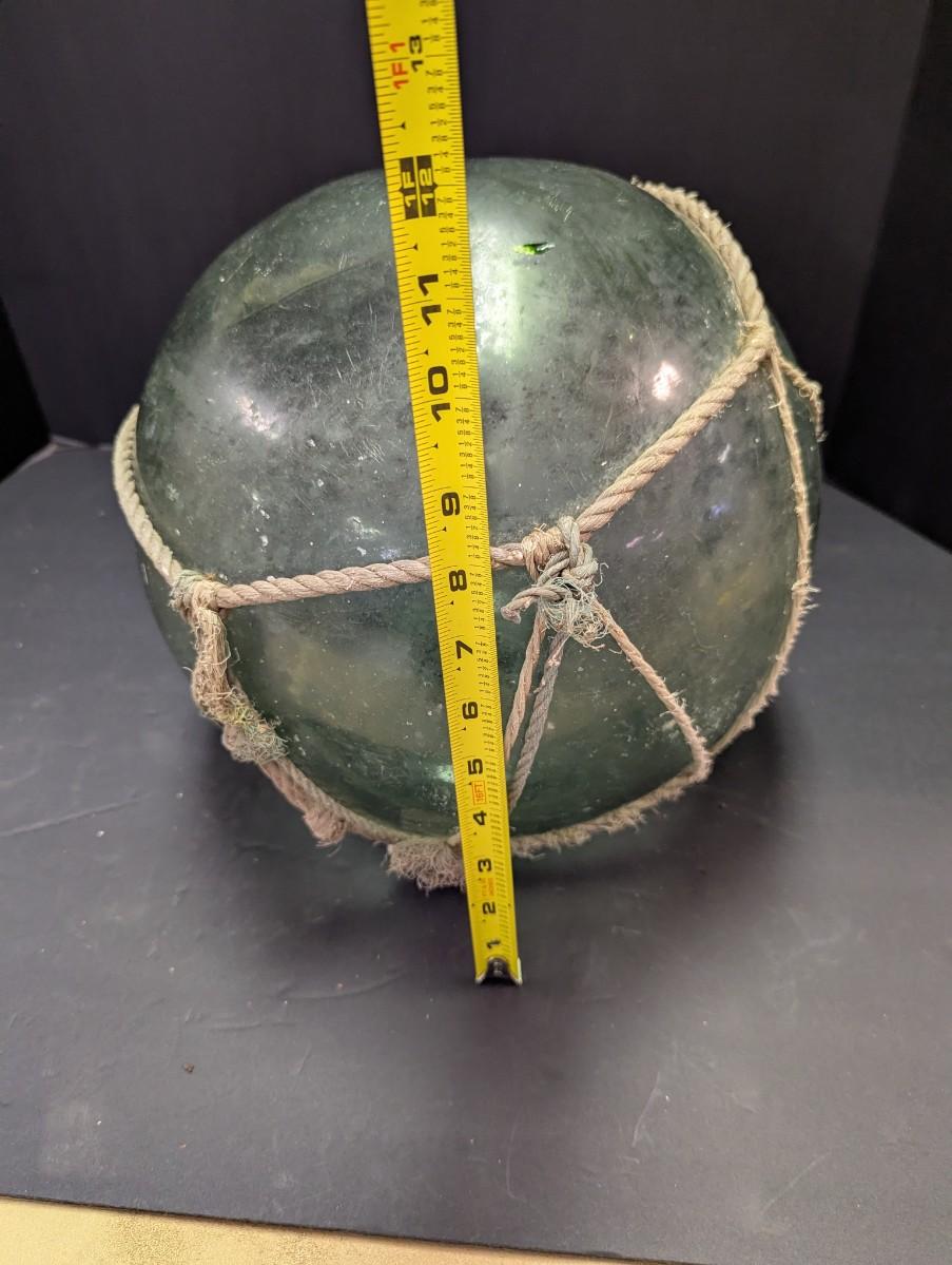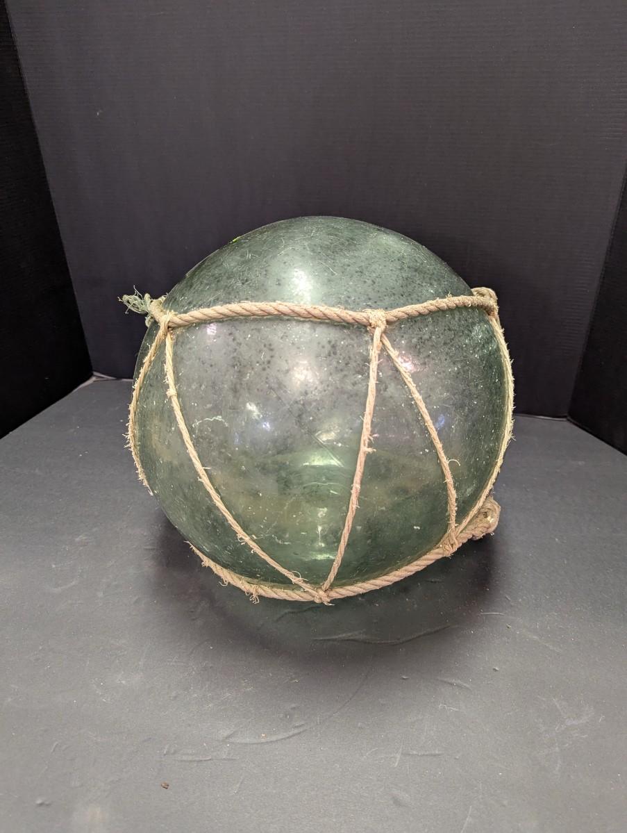 Japanese Large Glass Fishing Float Buoy Ball Net Green Approx 11" In Diameter