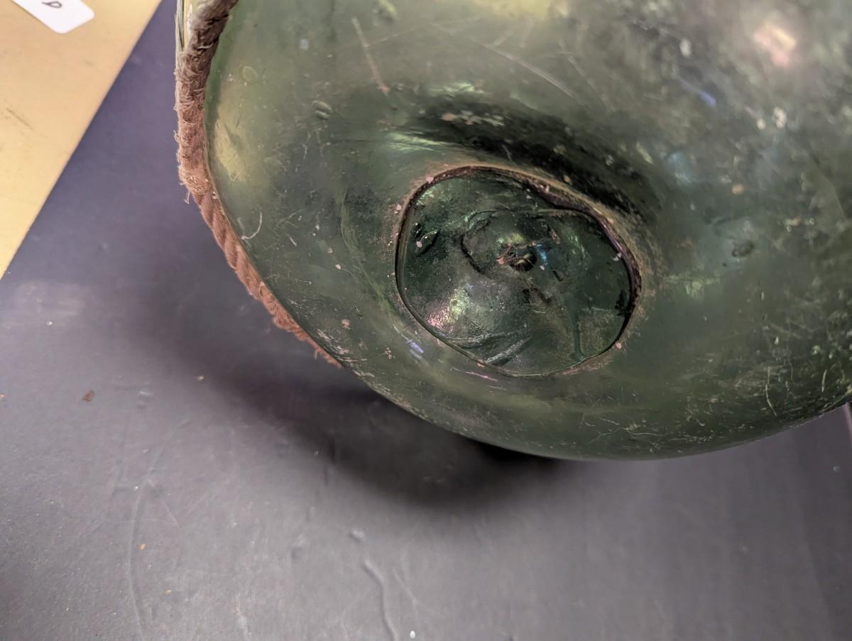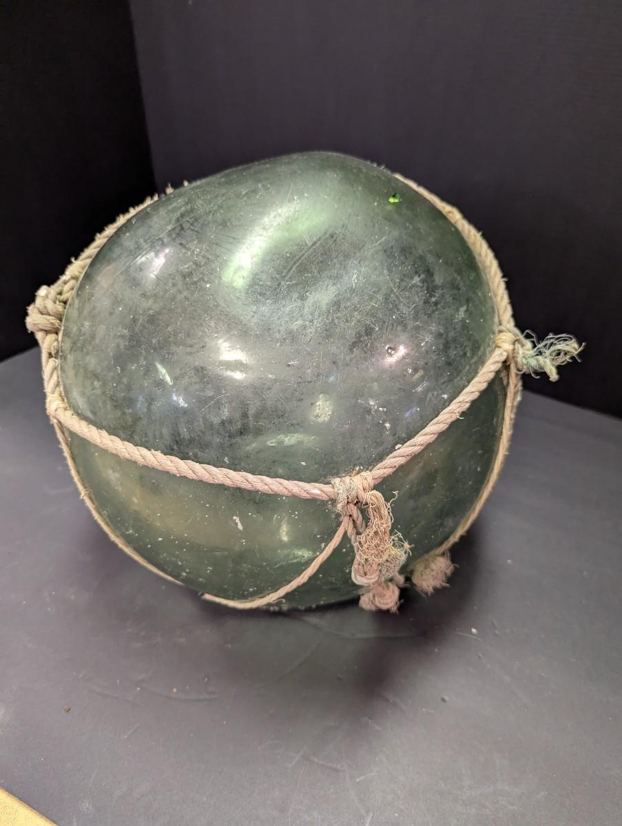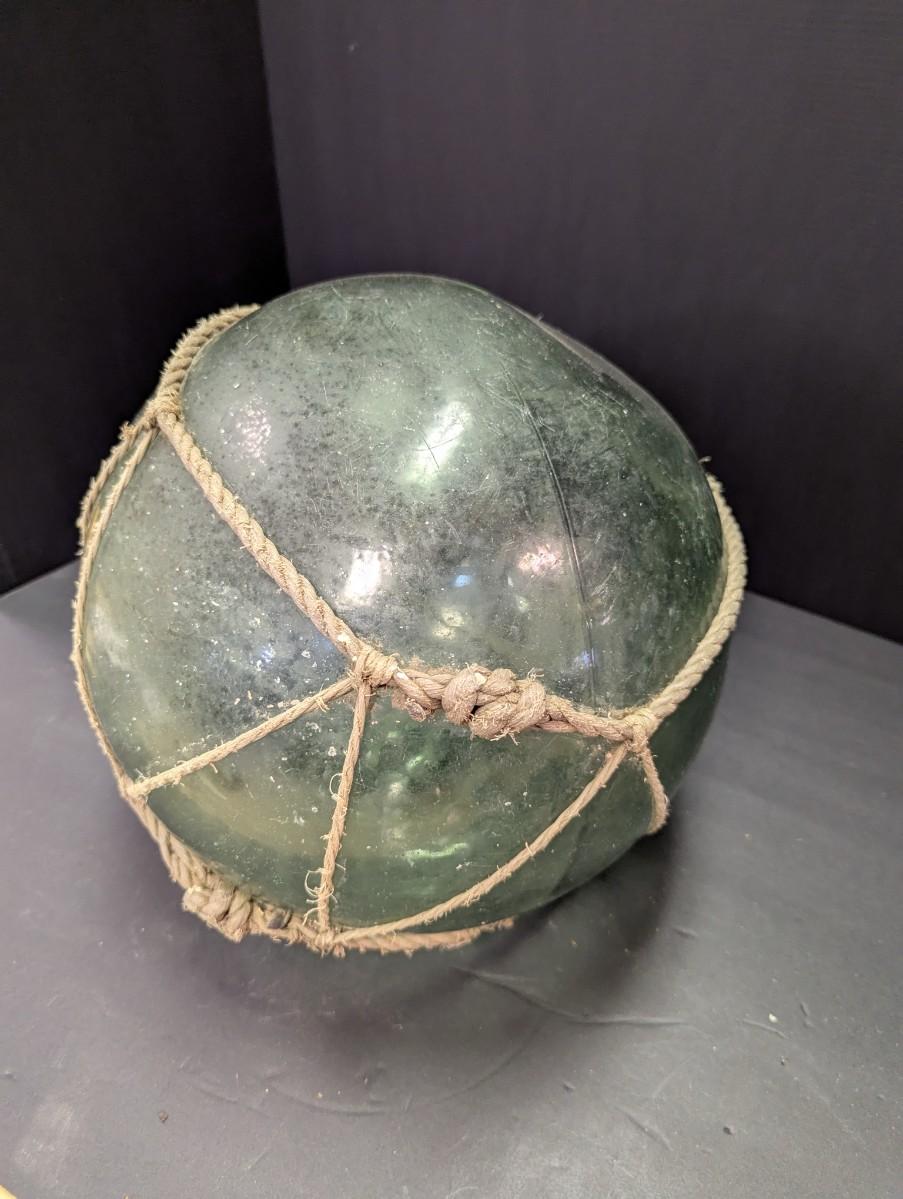 Japanese Large Glass Fishing Float Buoy Ball Net Green Approx 11" In Diameter