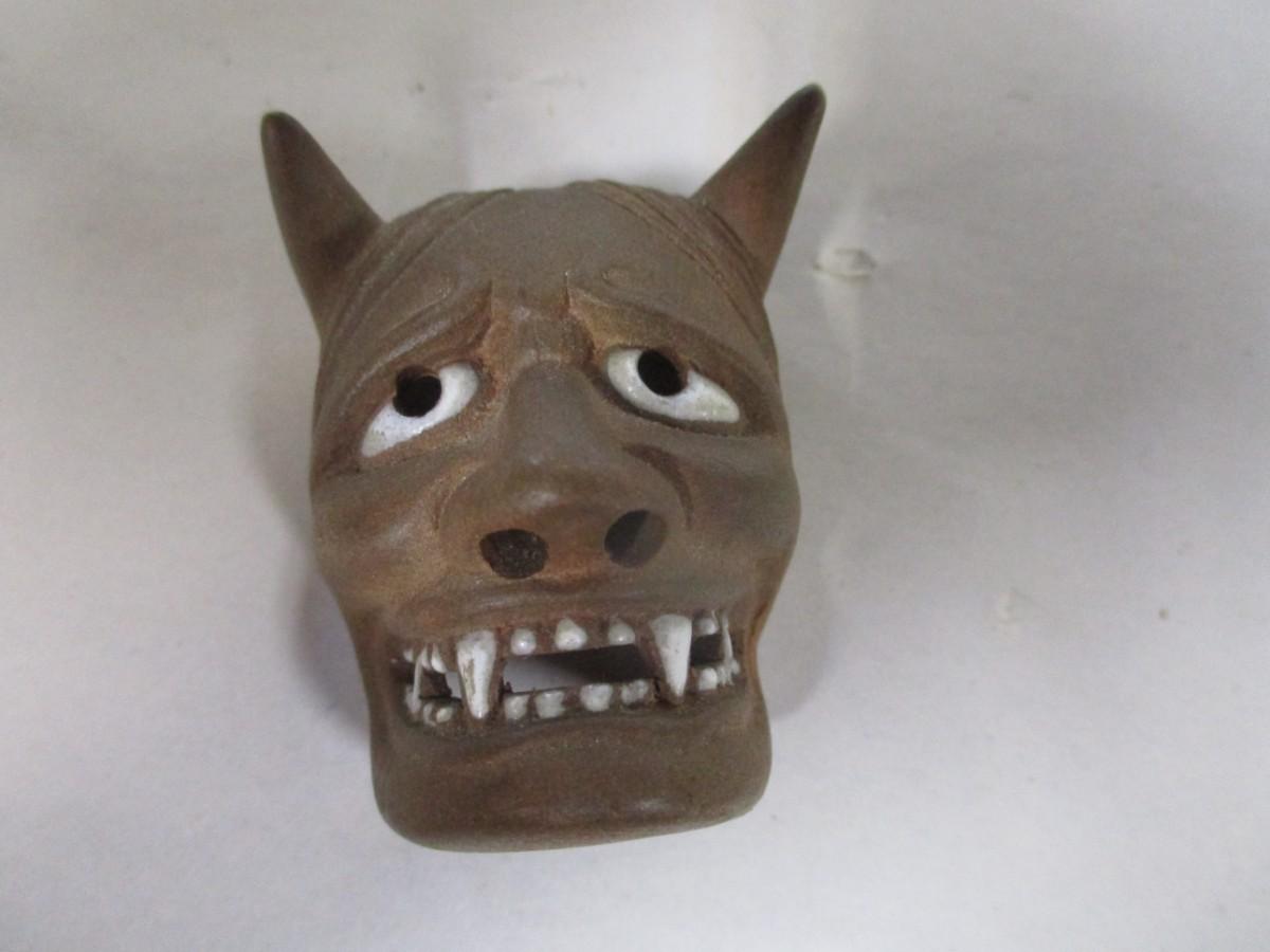 Japanese Netsuke Clay Hand Carved Noh Mask Signed
