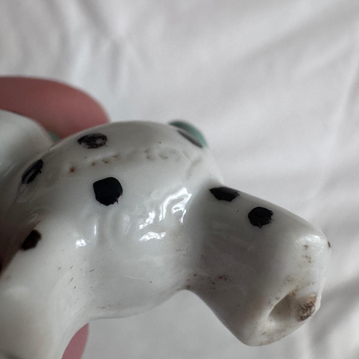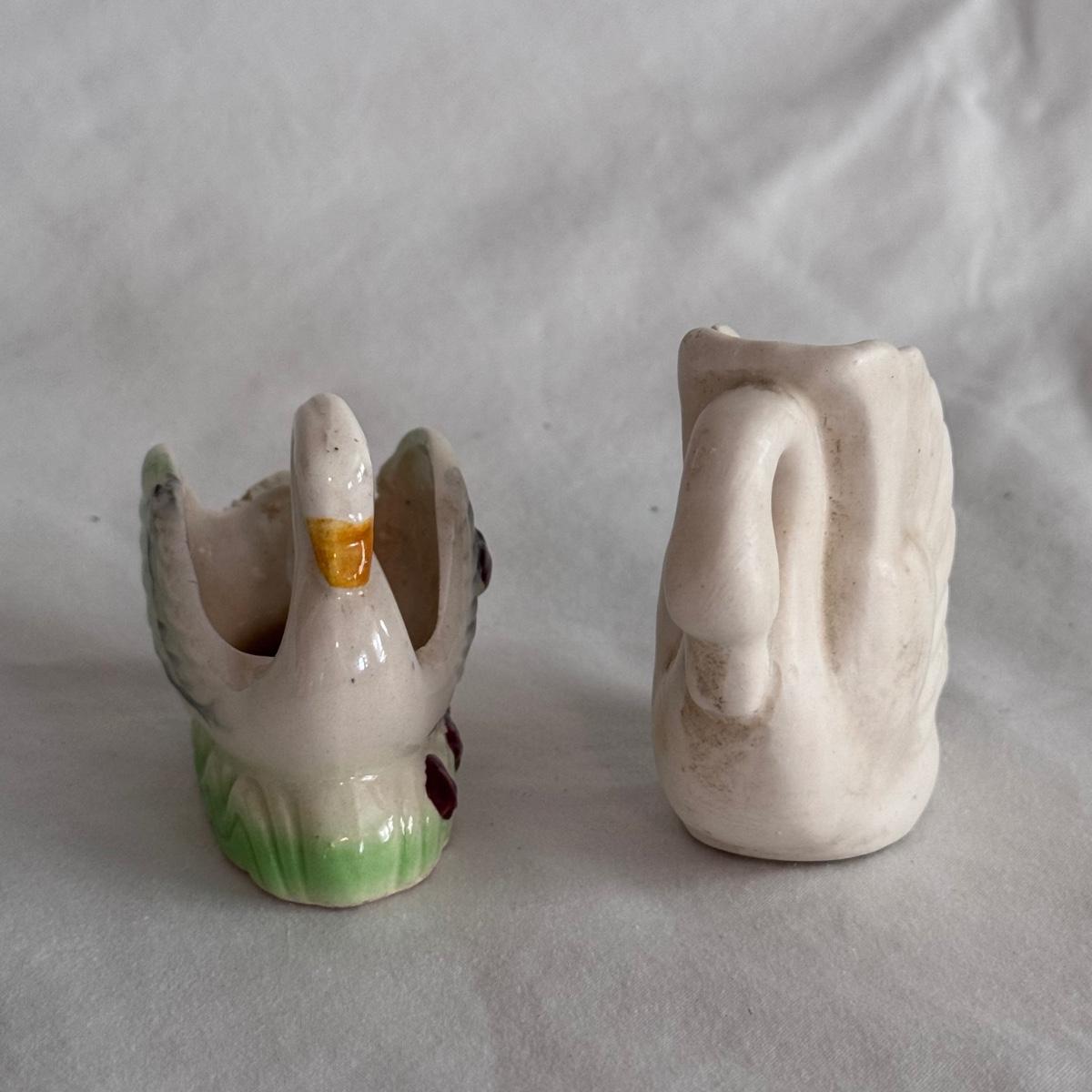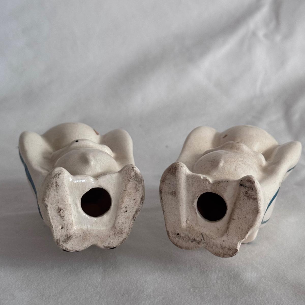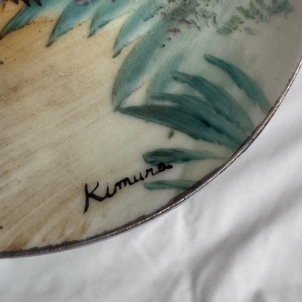 This lot includes two porcelain circus elephant salt and pepper shakers from Japan, porcelain Boston terrier figurine, two small ceramic swan vases (one signed with what appears to be Beritice), and one Syroco wood figurine. You’ll also find one small dog figurine with Germany 1025 stamped, a small porcelain duck toothpick holder, a small ceramic dog with “made in Japan” in the bottom, and a porcelain elephant and small resting dish - both stamped with Made in Japan. Lastly, you’ll find two small decorative plates, both signed with Kimuna and stamped with Japan on the back. The plates individually measure almost 4”D. The small dog with Germany 1025 stamped in the bottom has a small chip on its foot. Shipping available.