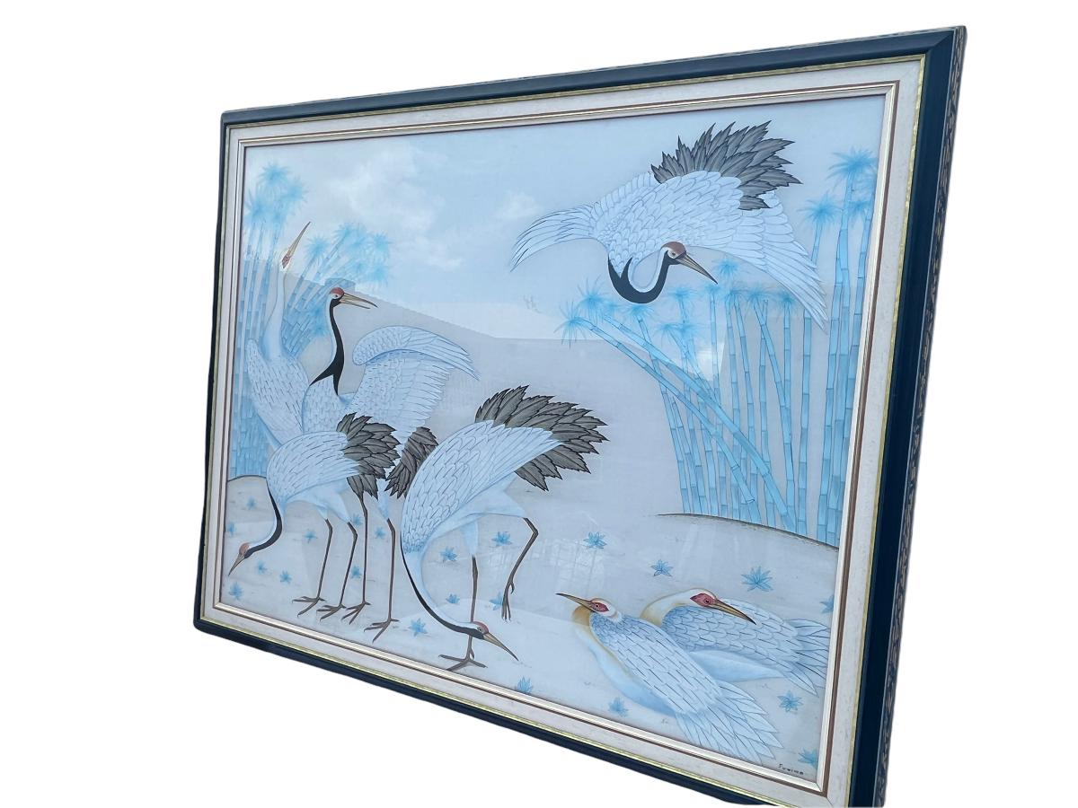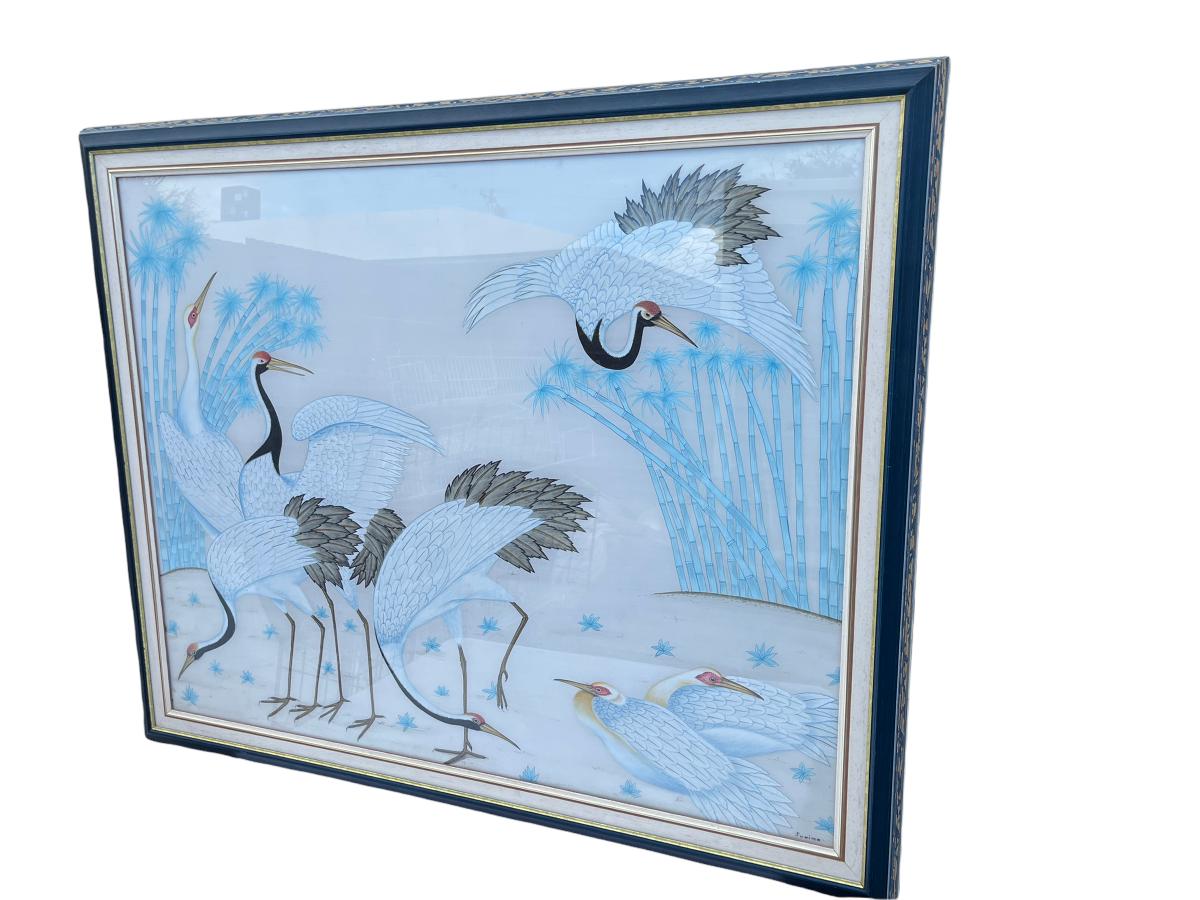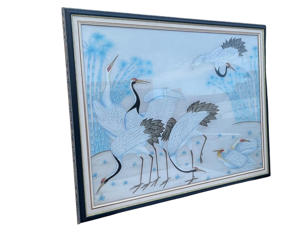Japanese Red Crested Cranes (On Silk) 46"x38" (Artist: Suwima). Place obtained: Cyprus