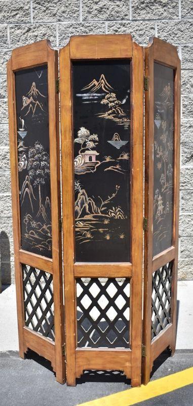 Japanese Screen, Room Divider, Tri-Fold Walls, Asian Landscape Painted, Gorgeous