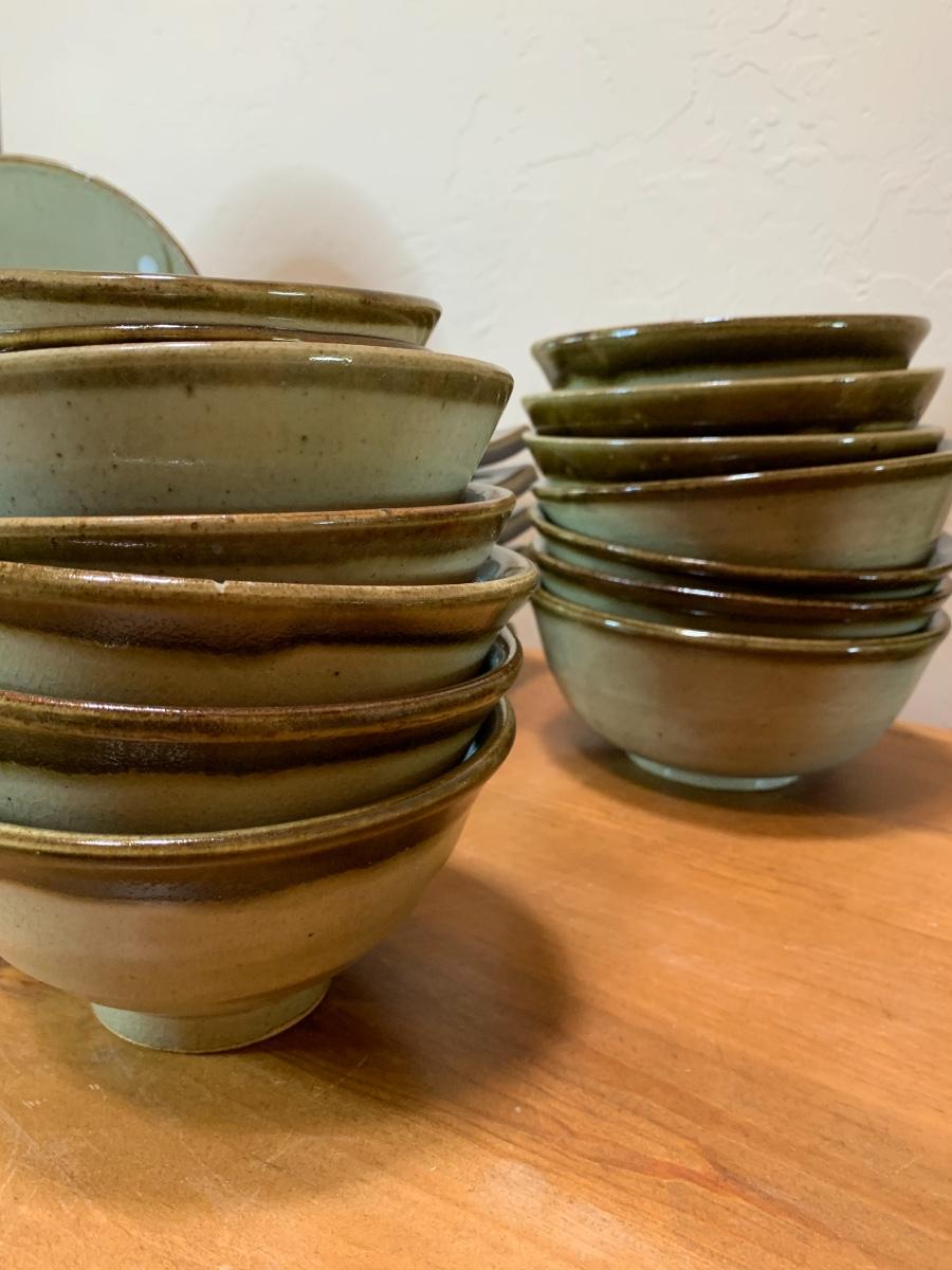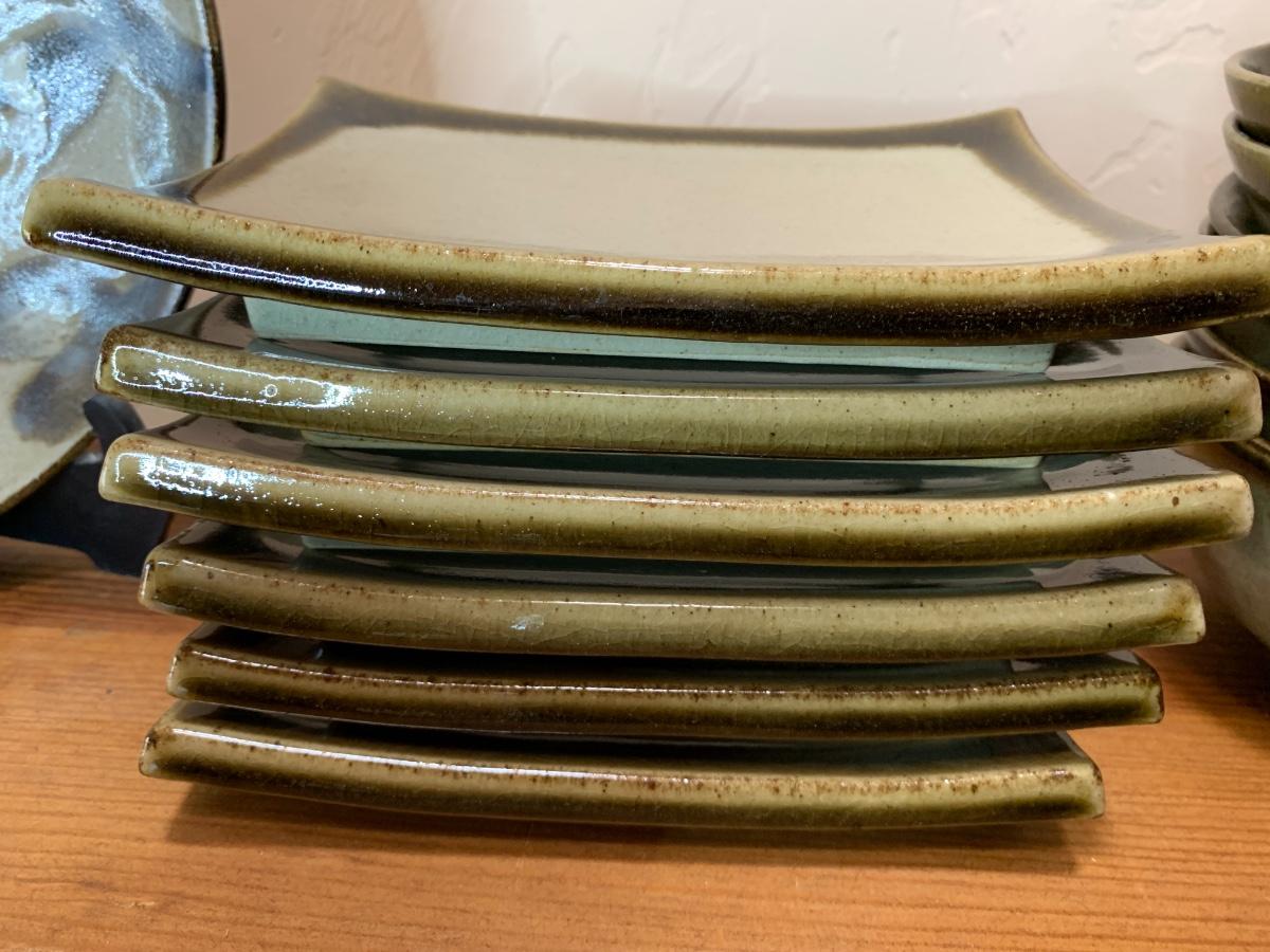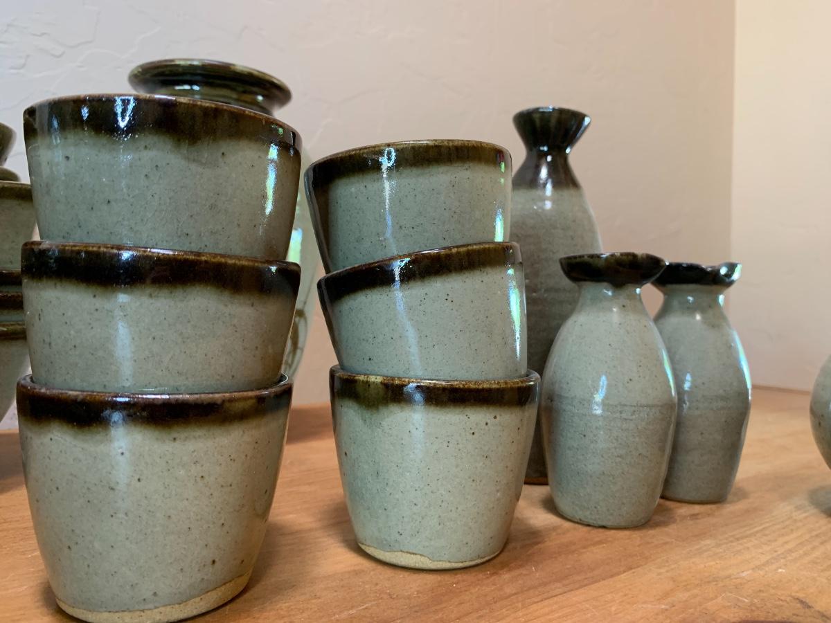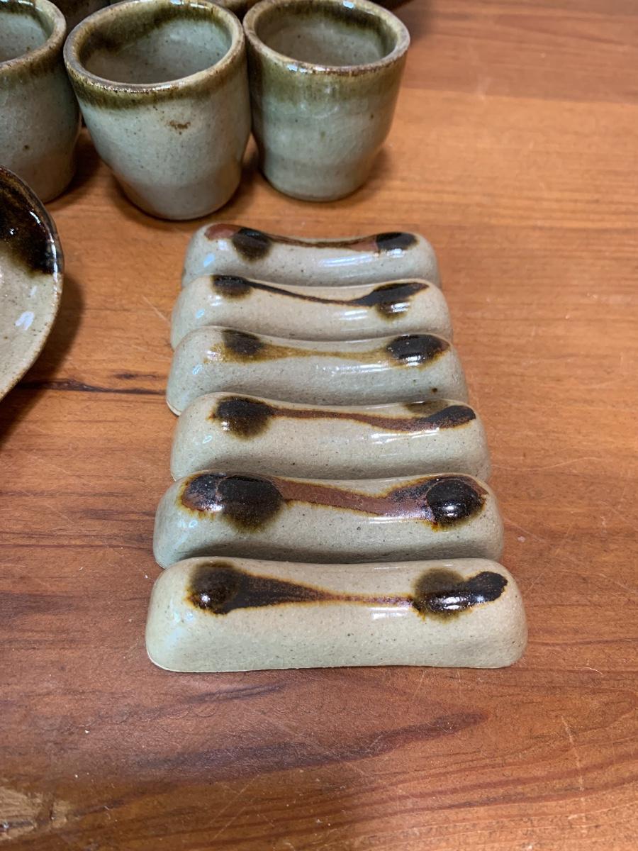 Authentic hand made Japanese Stone ware set with a total of 79 pieces. This is beautiful work and the person who made this took their time hand crafting each piece for this particular family.