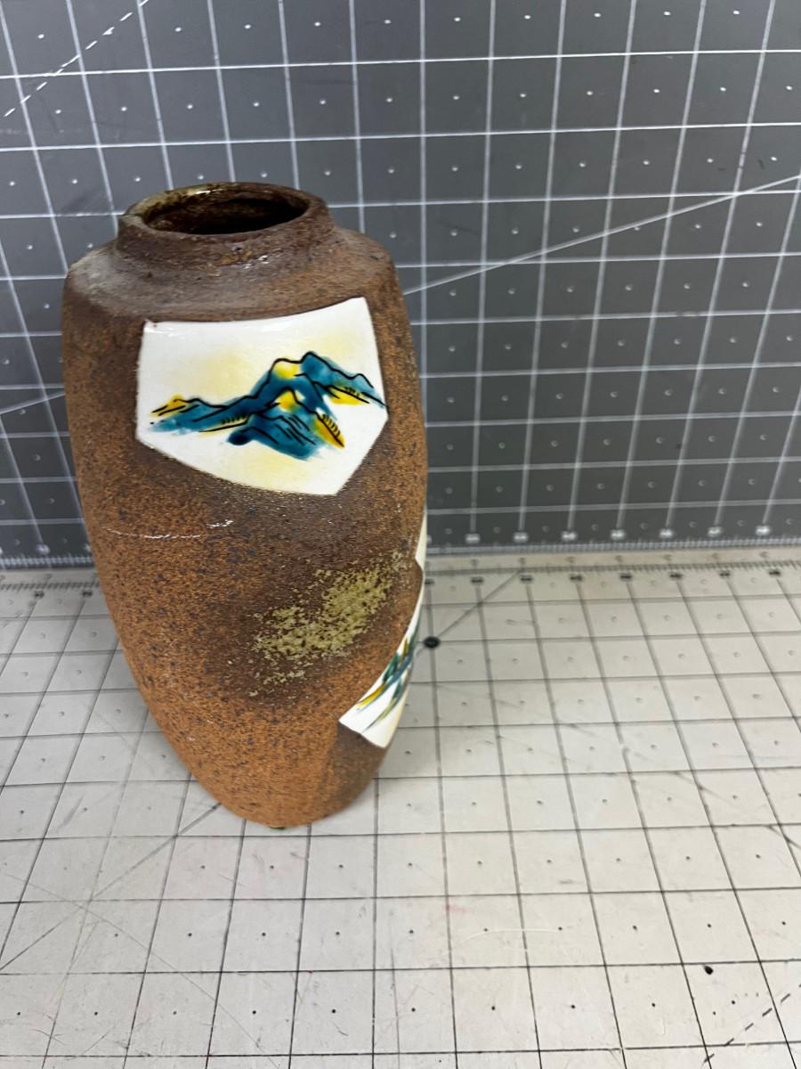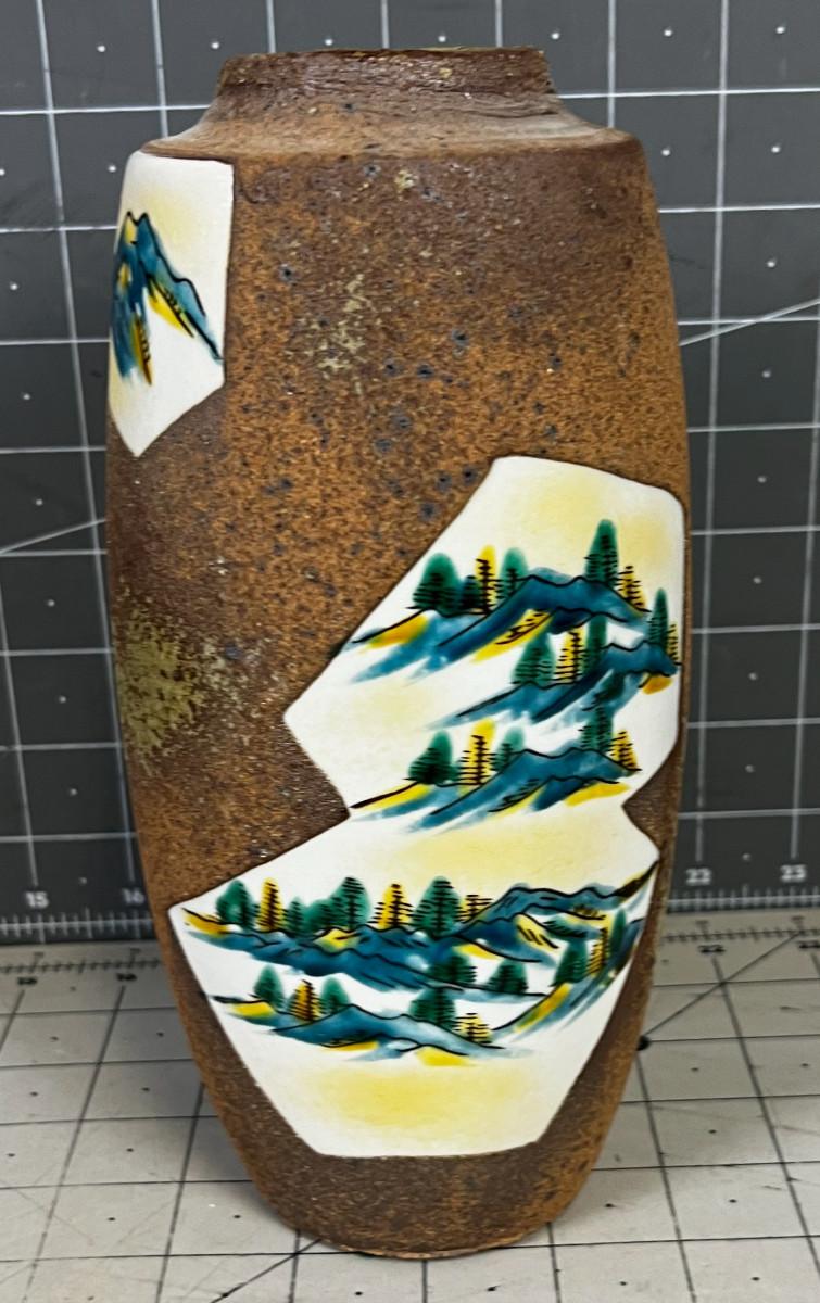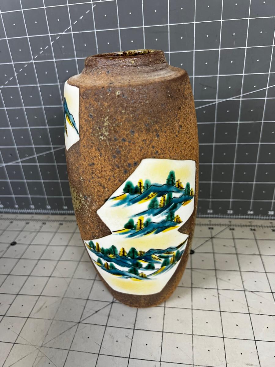 Interesting design with stoneware and glazed porcelain mountains and pine trees. C.1970, most likely of Japanese origin
