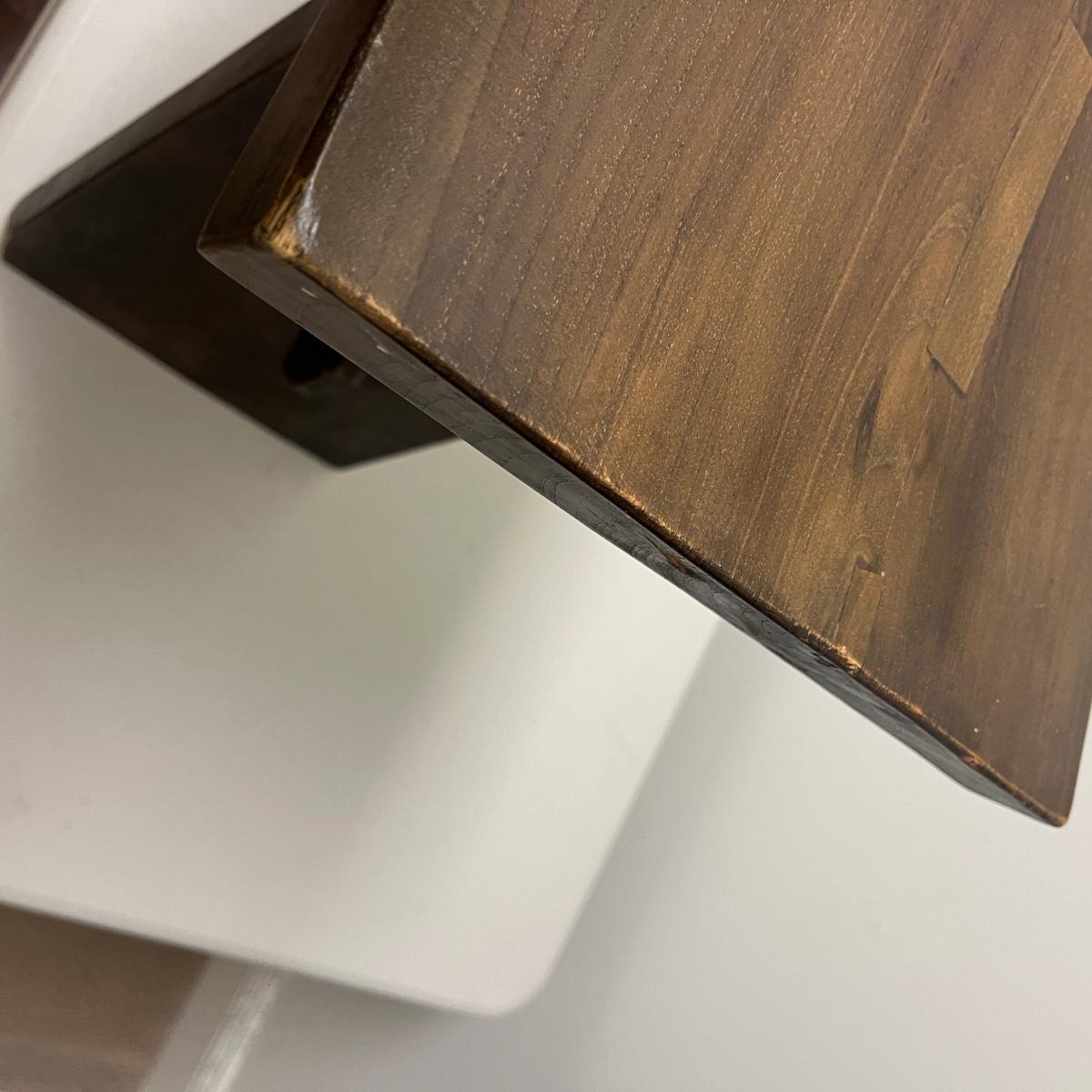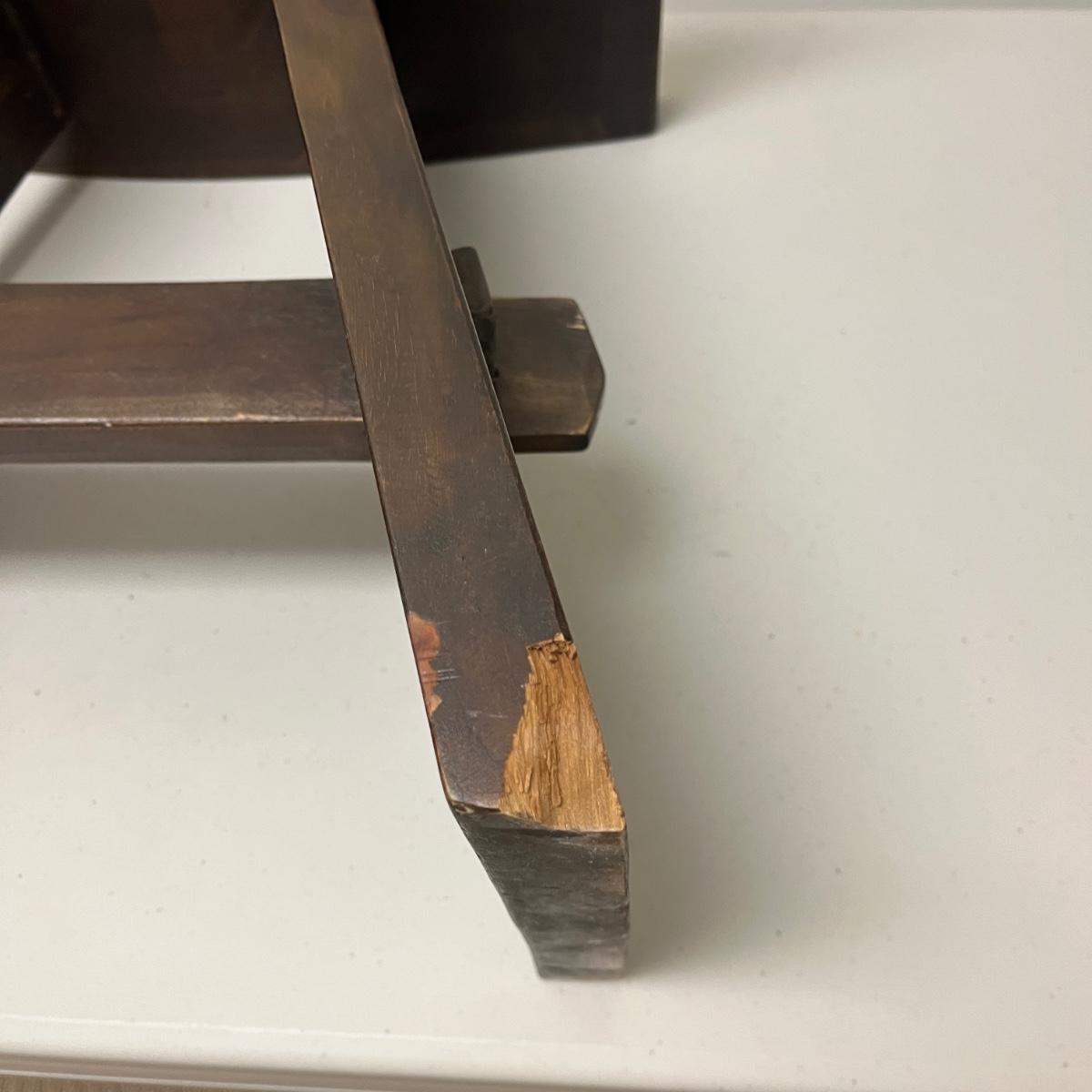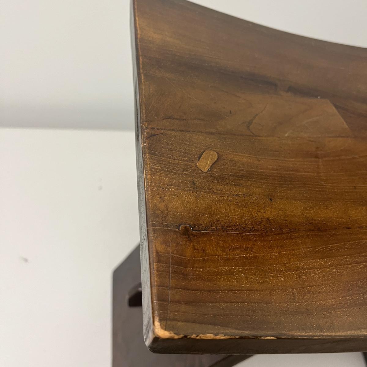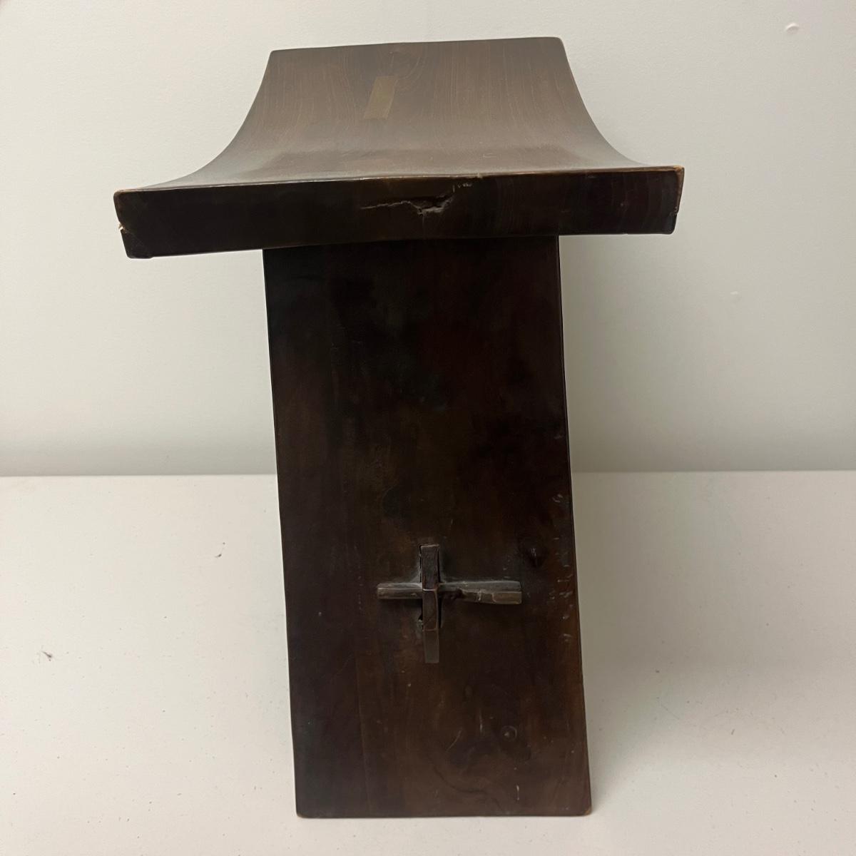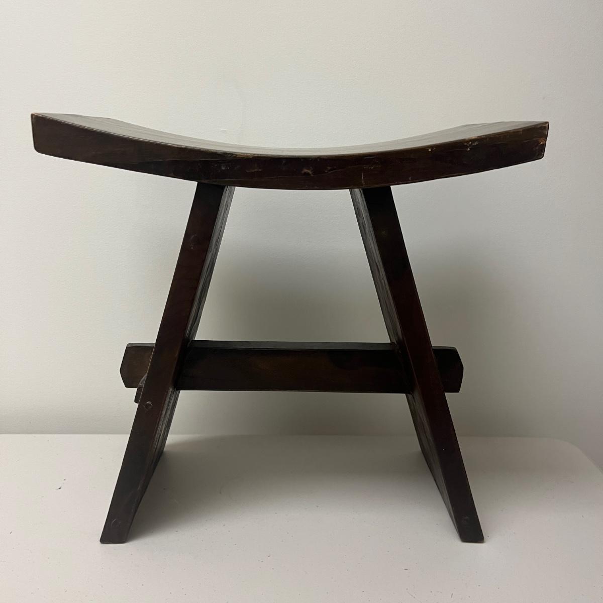 Lot includes a Japanese style wooden stool that measures 19” x 11” x 19”H. Stool has a chip and scratches, see pictures.