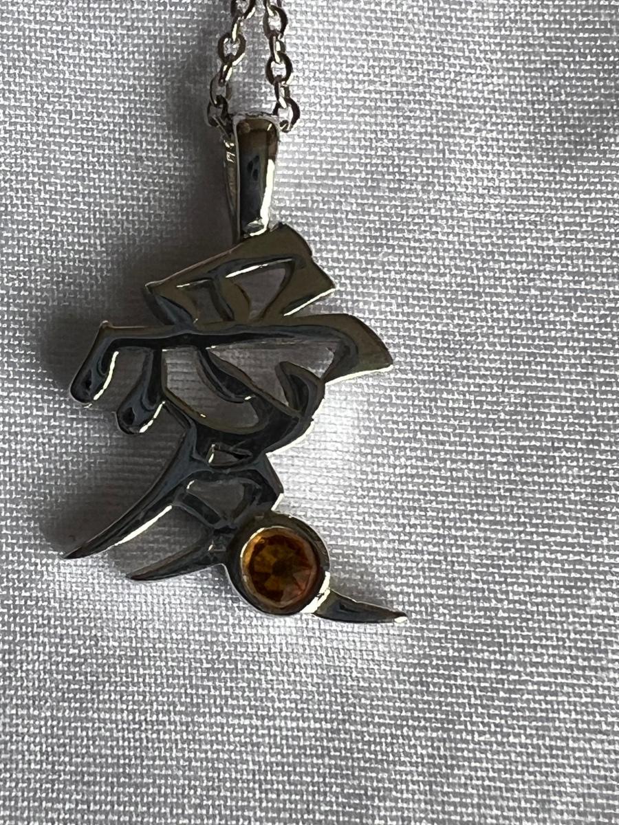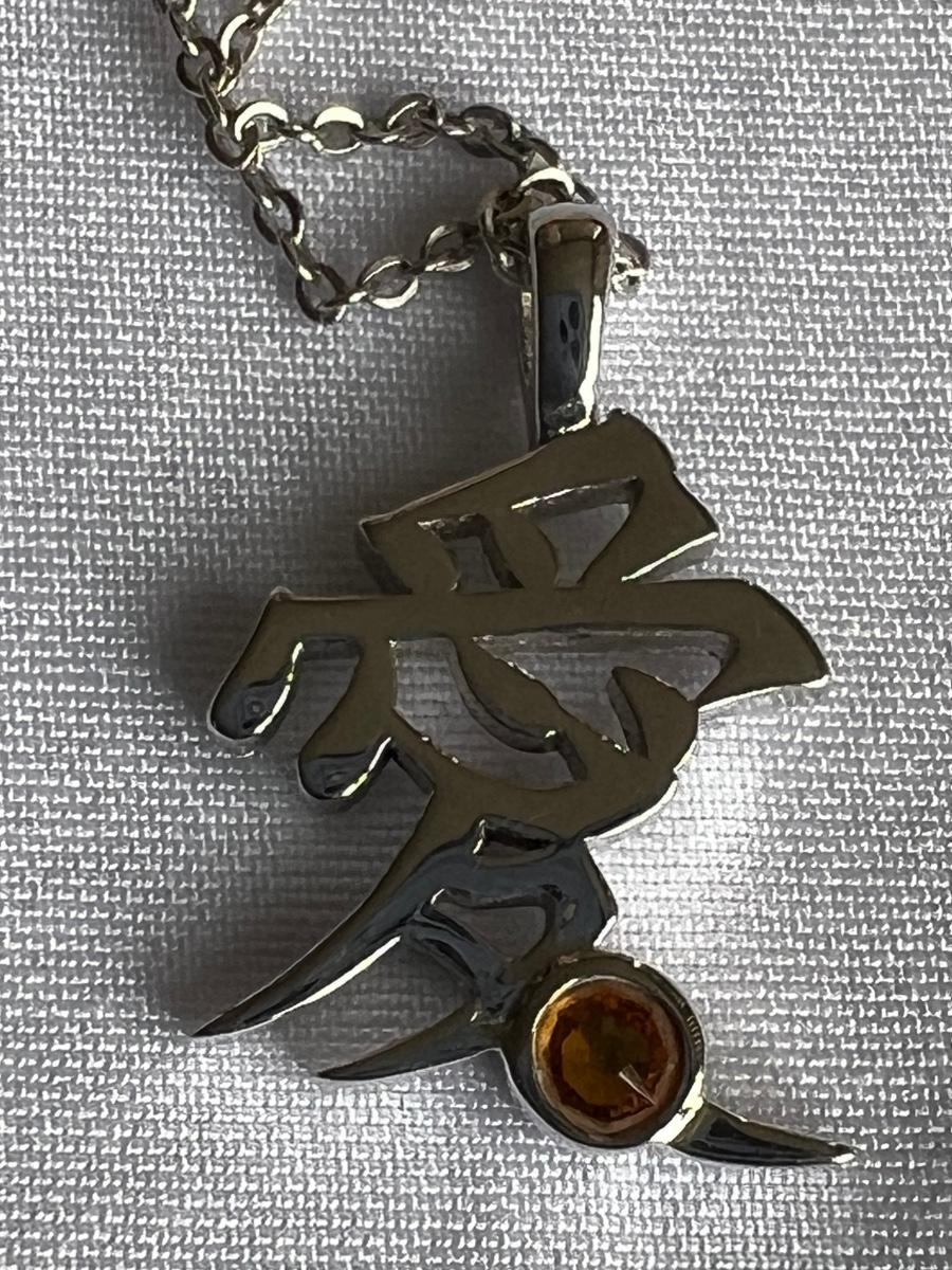 Sterling Silver Japanese symbols necklace with Citrine like Stone
