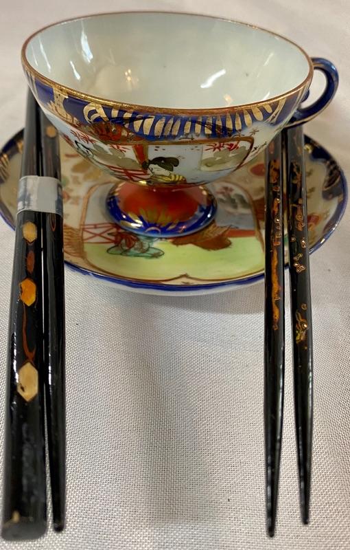 Japanese tea cup with chopsticks