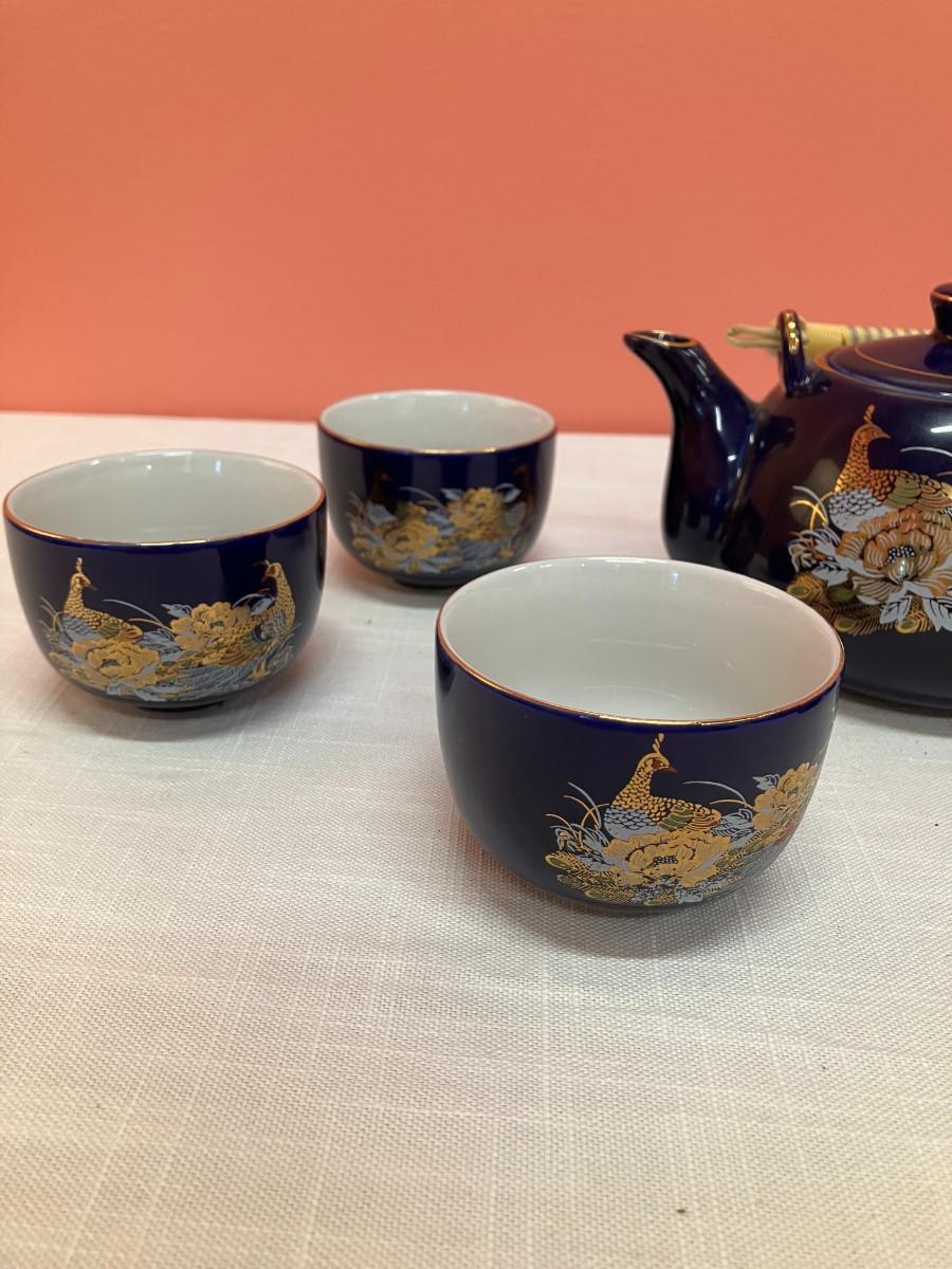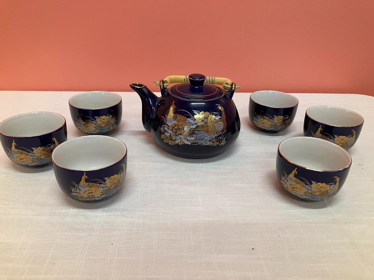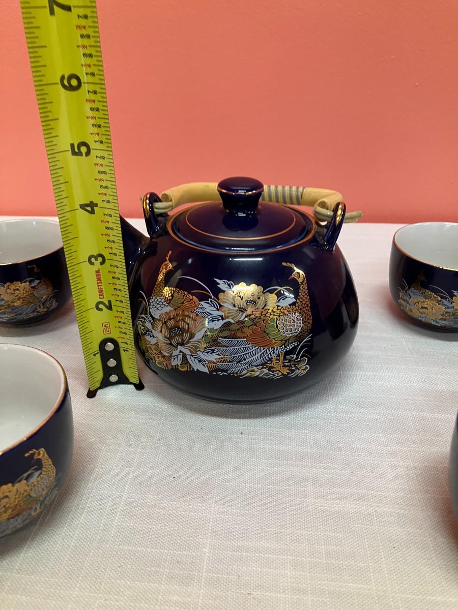 Japanese cobalt blue teapot and 6 cups, no chips or cracks. Excellent condition!