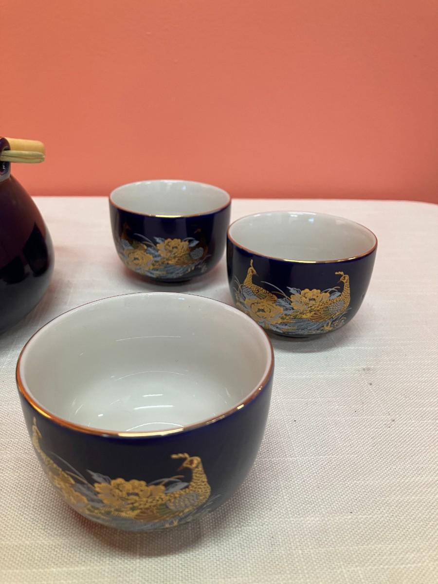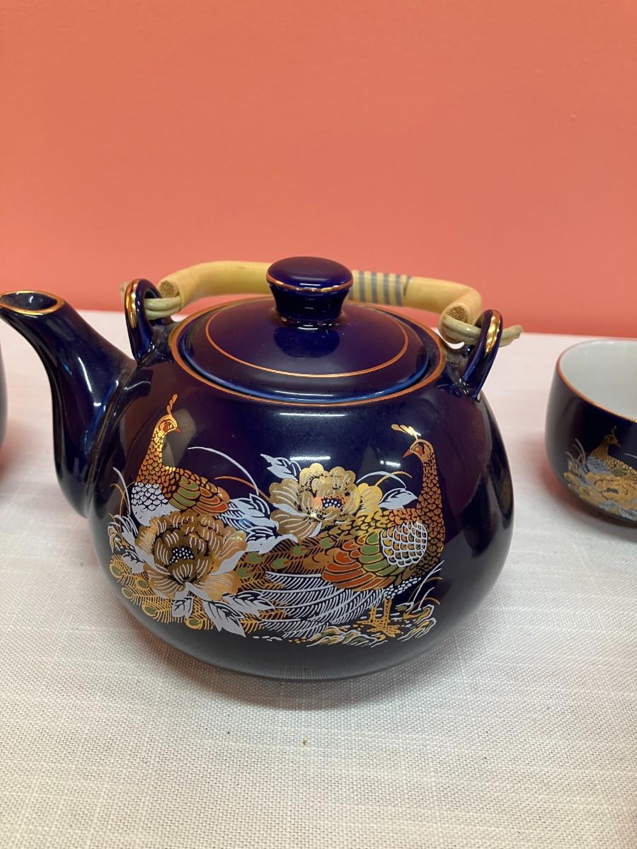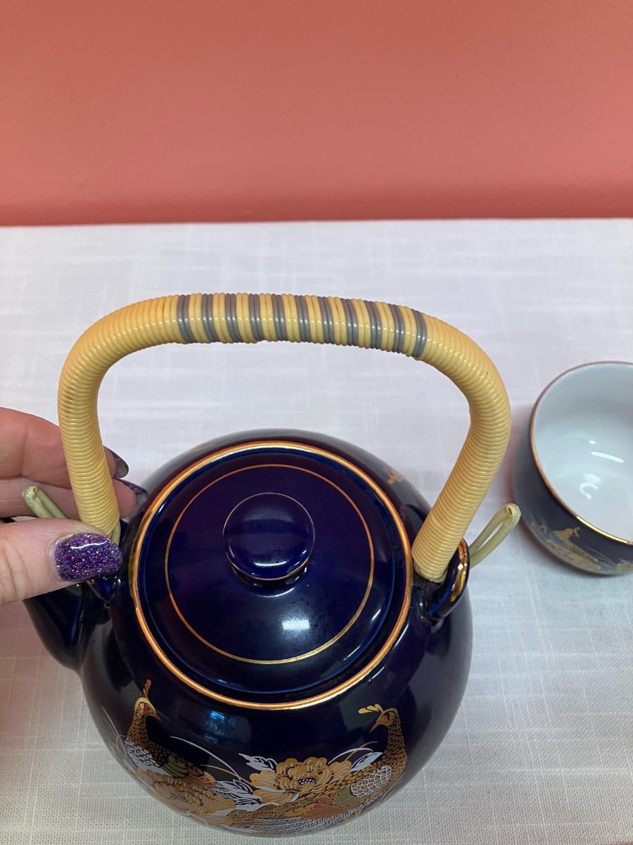 Japanese cobalt blue teapot and 6 cups, no chips or cracks. Excellent condition!