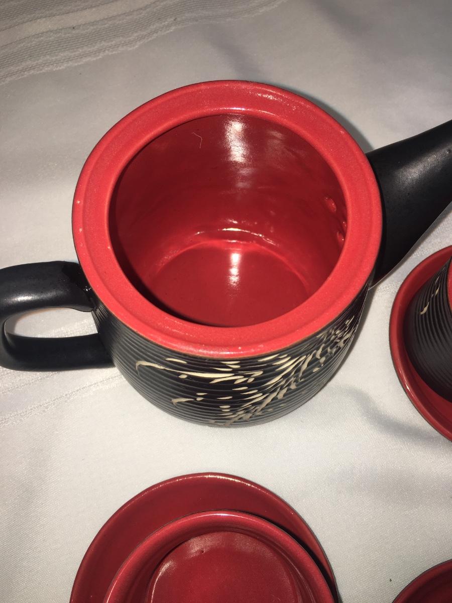 Sweet set with tea pot and 4 cups and saucers