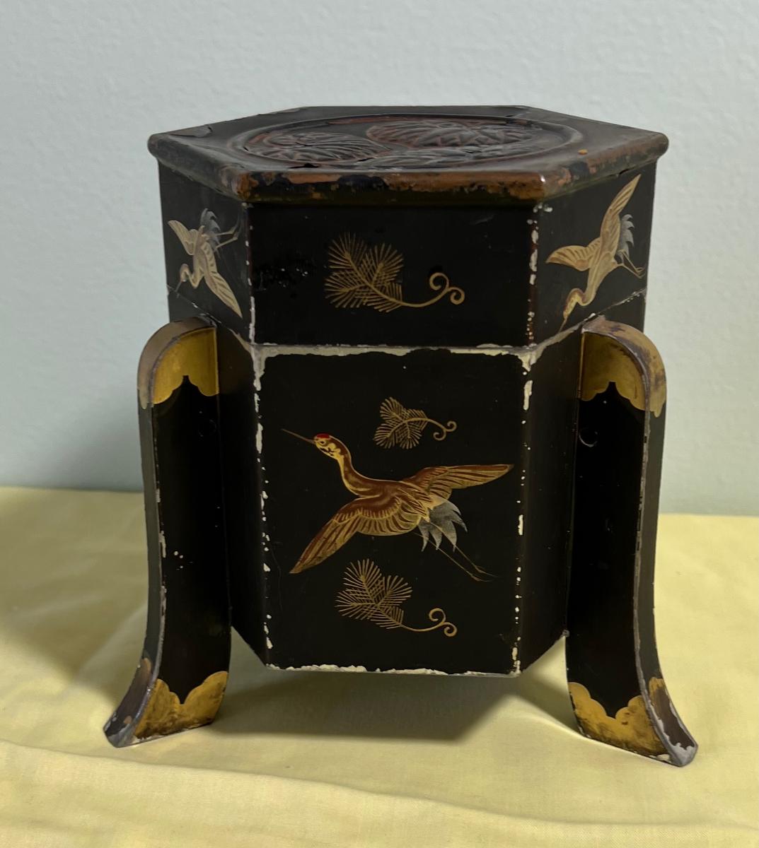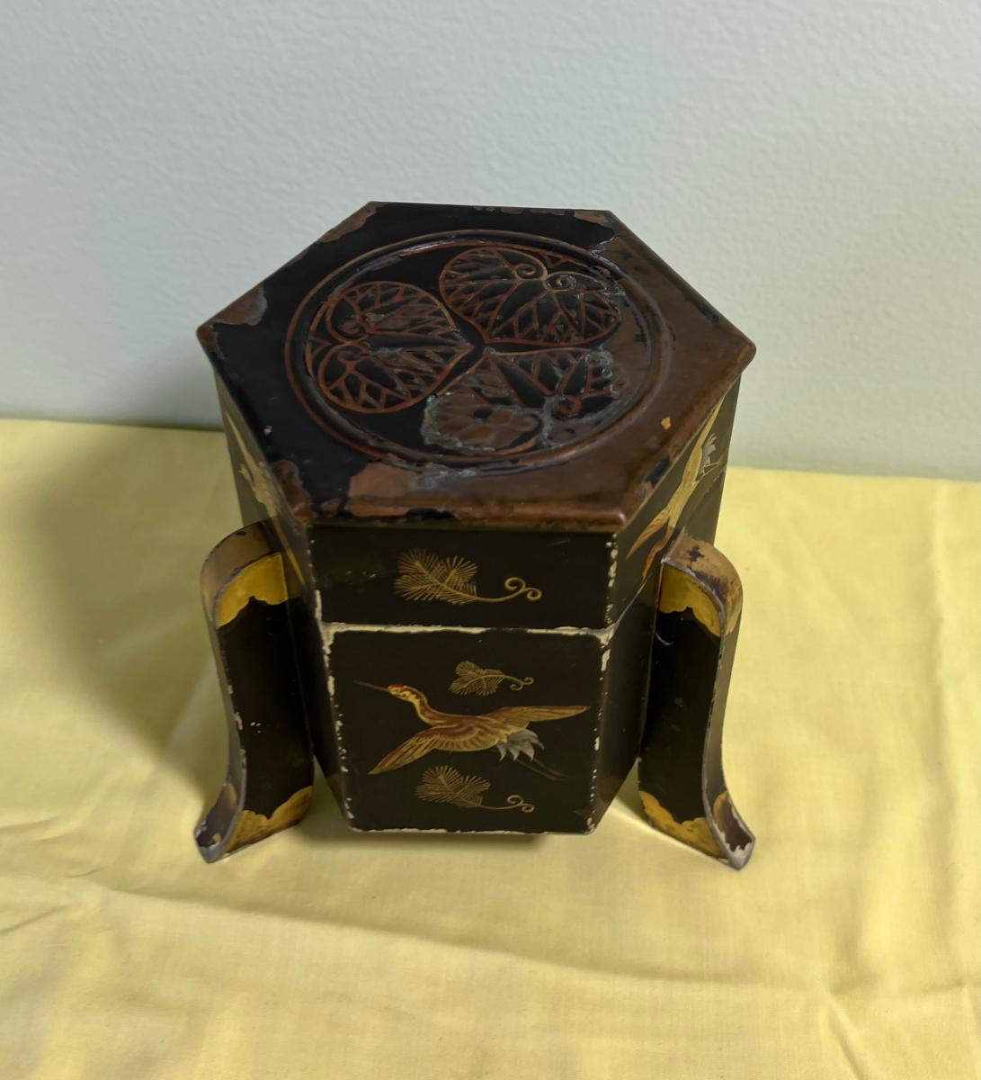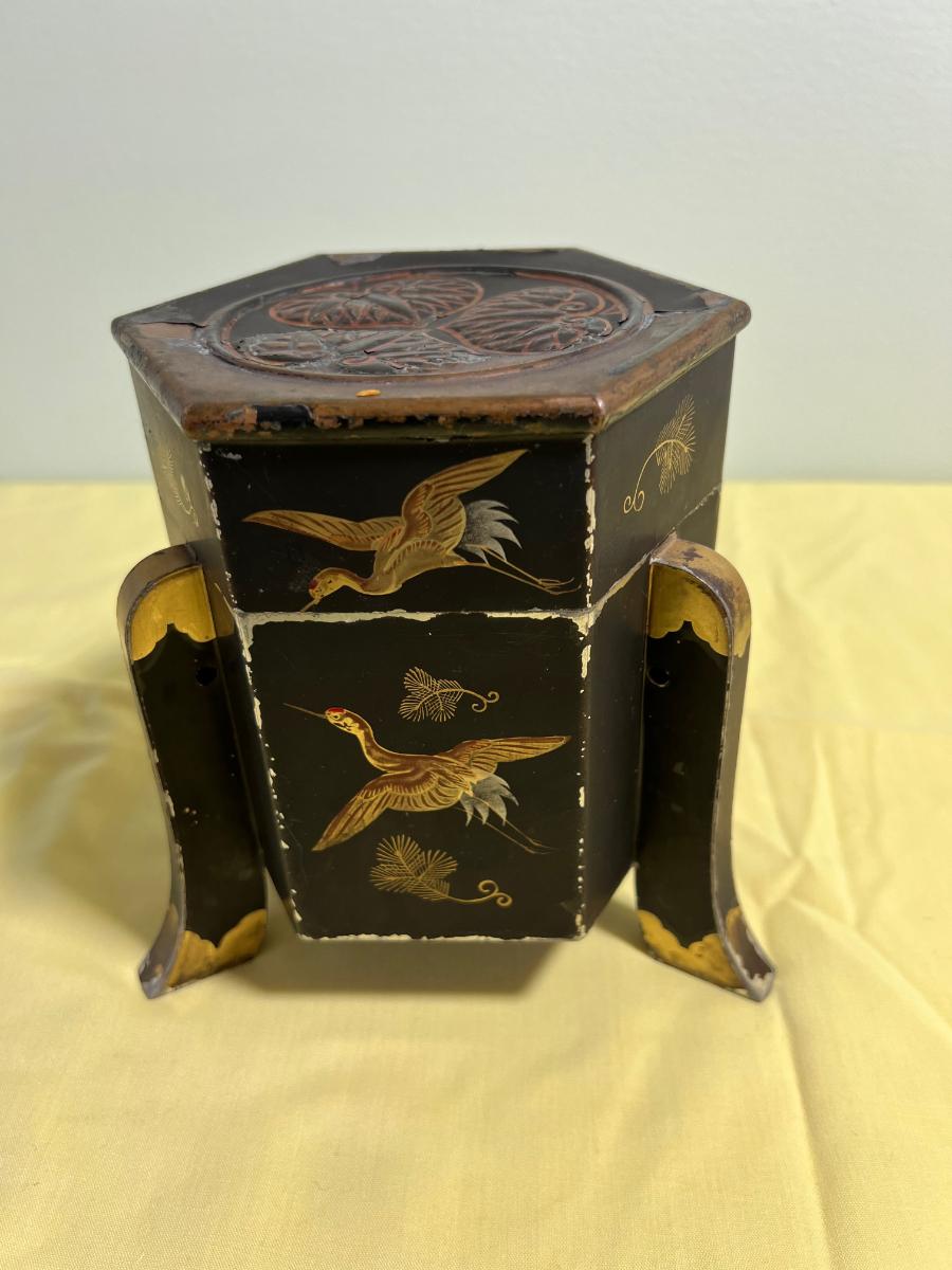 Japanese Tea Tin or Caddy Box Etched with Cranes