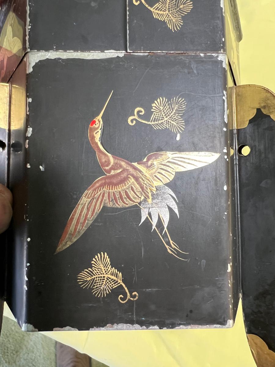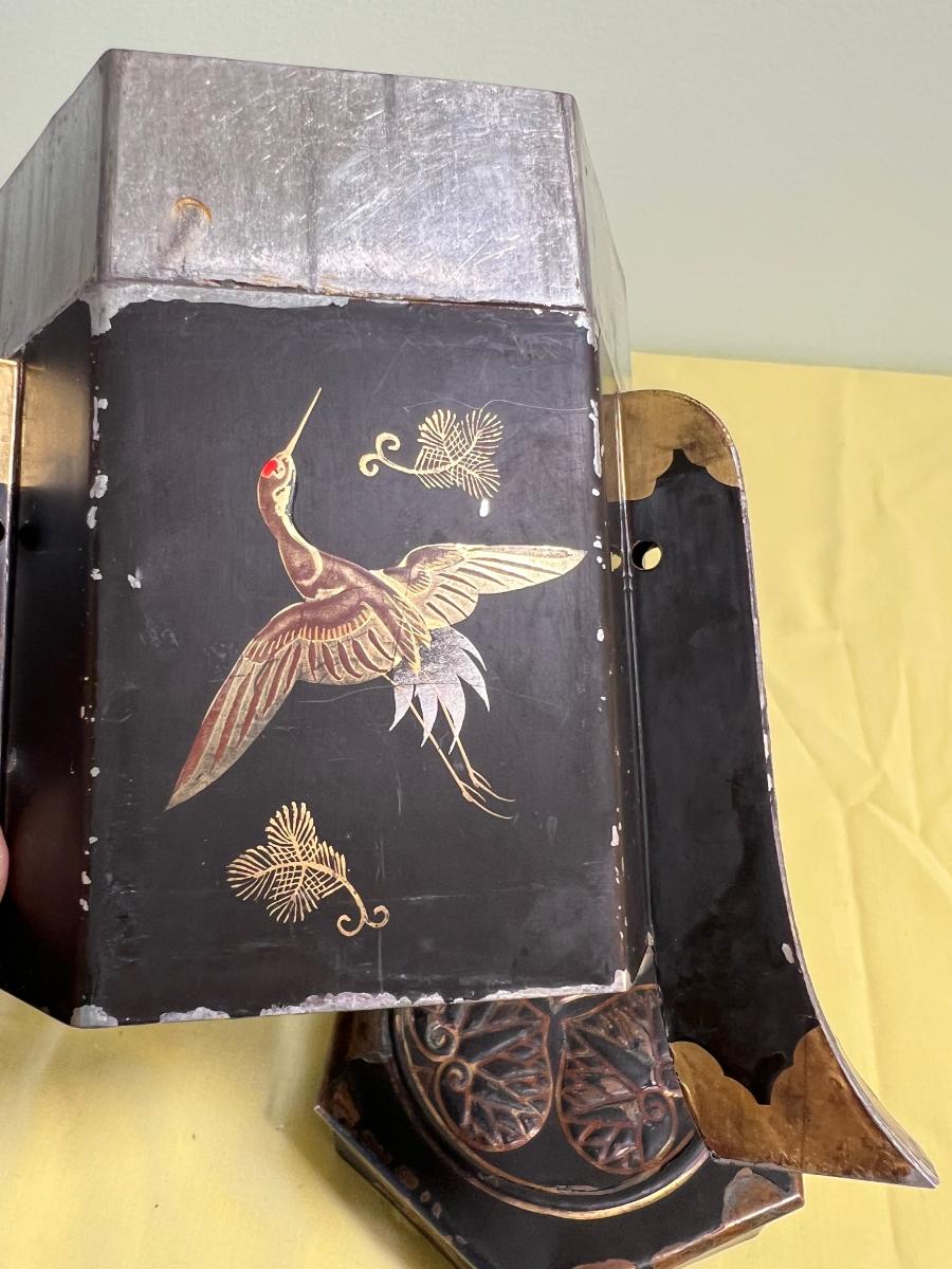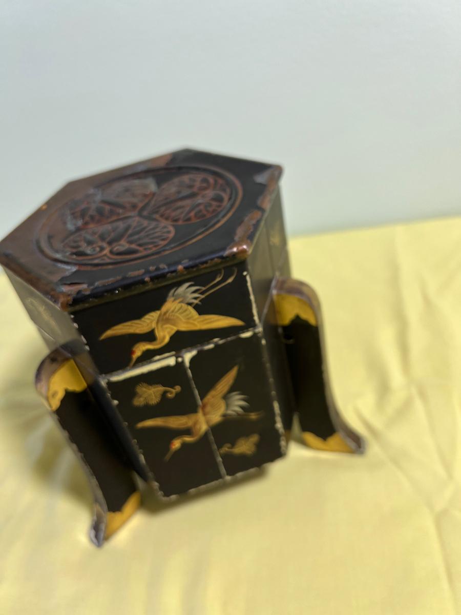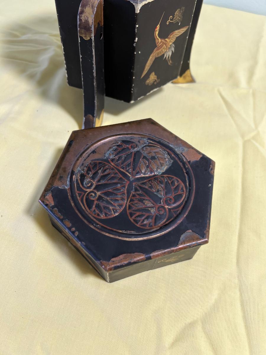 Japanese Tea Tin or Caddy Box Etched with Cranes