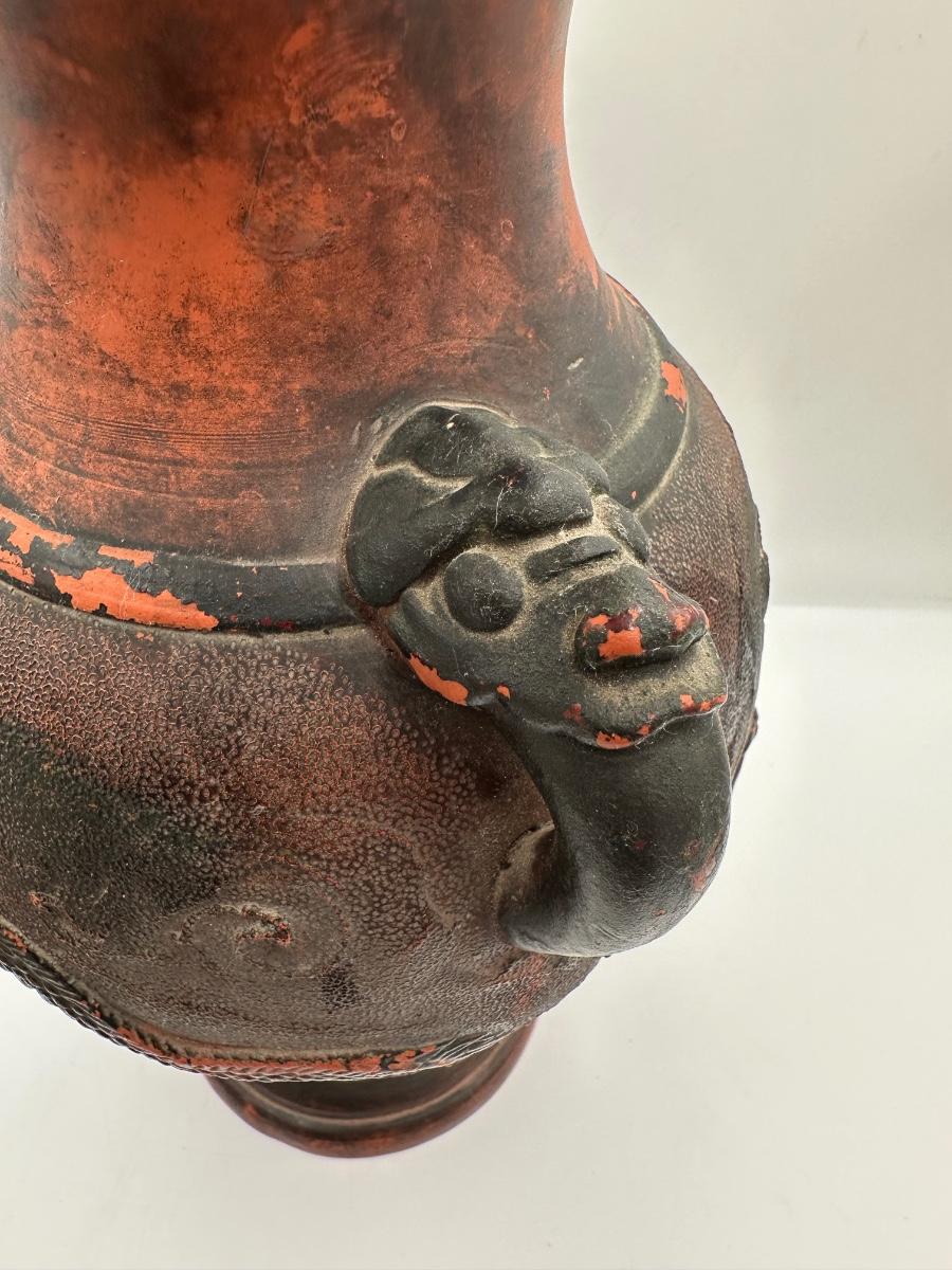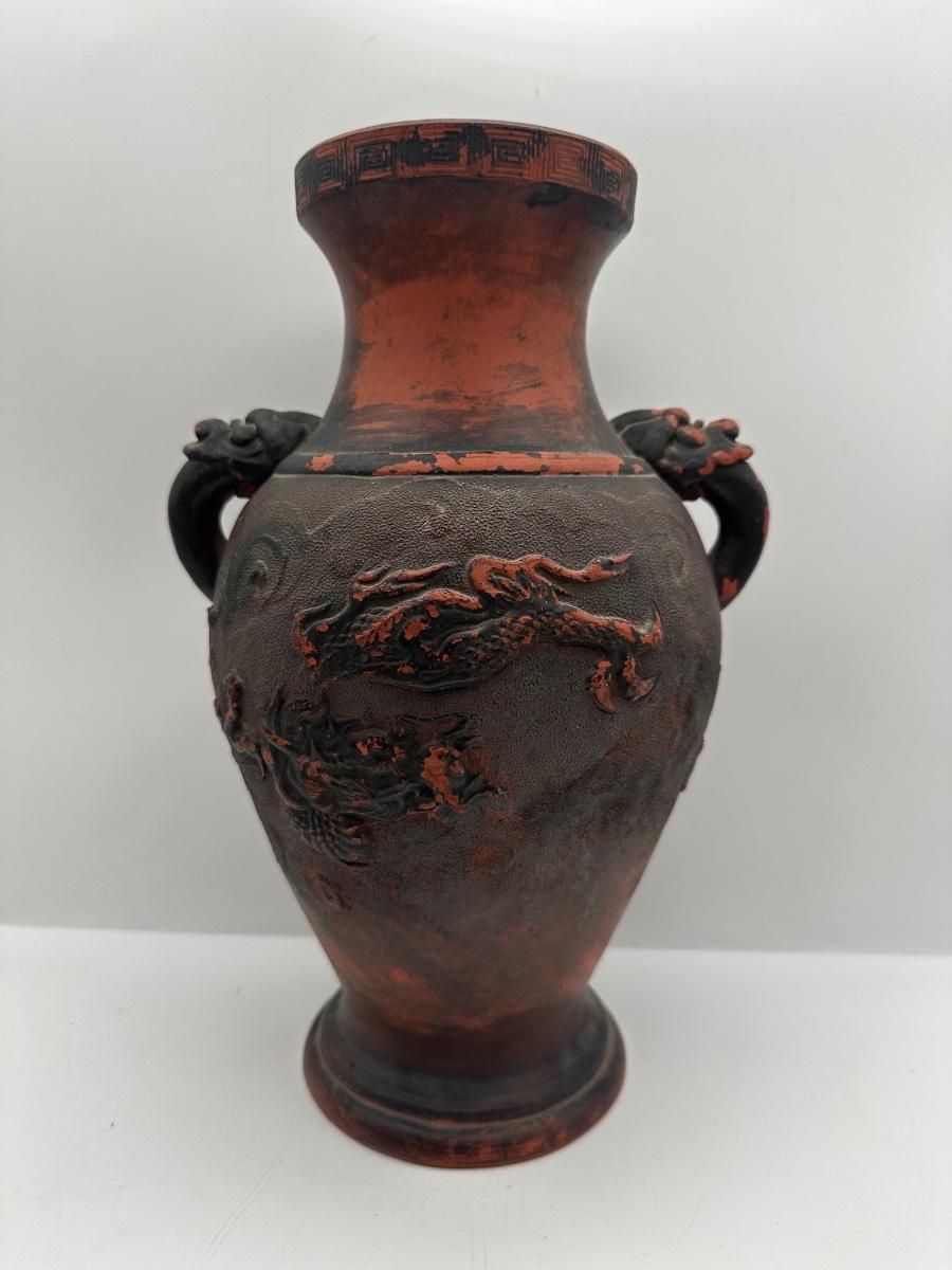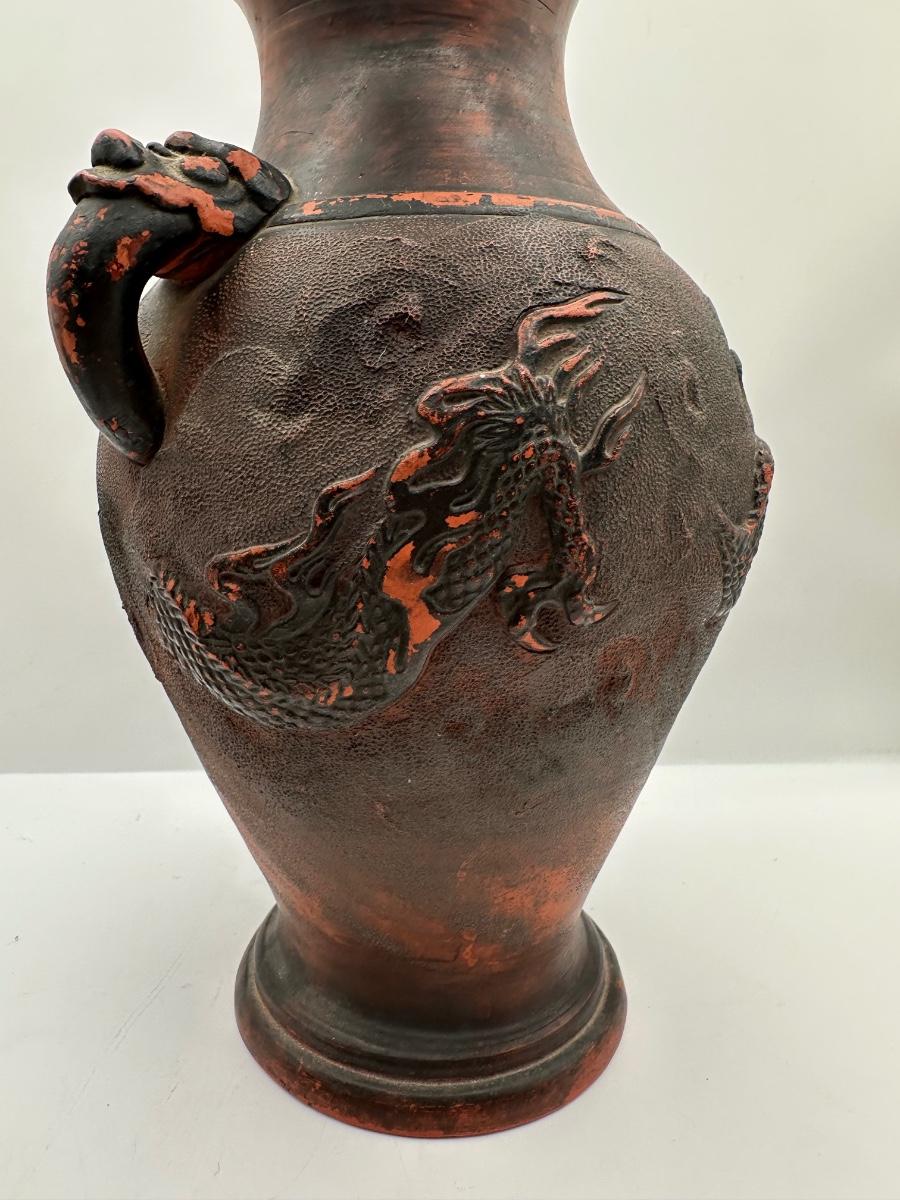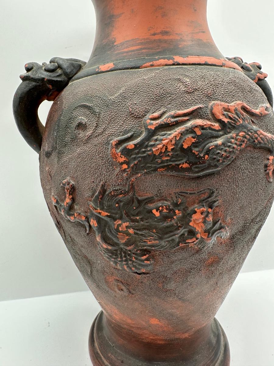 Japanese Tokoname Pottery Dragon in Clouds Amphora Vase
