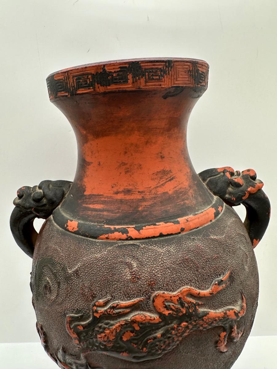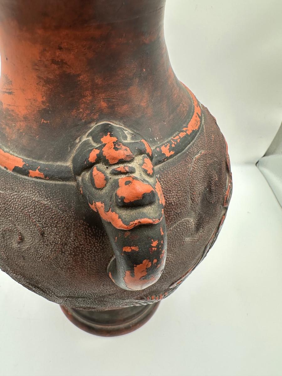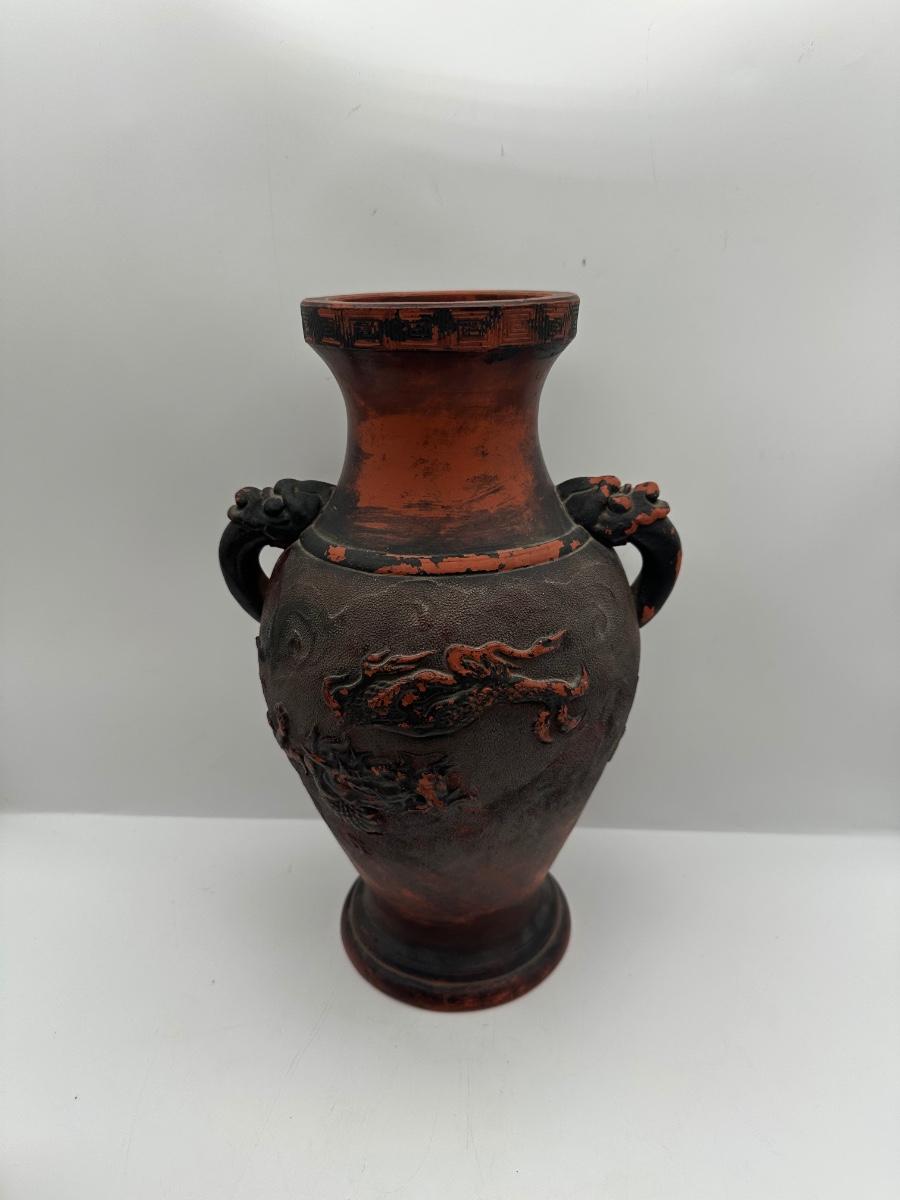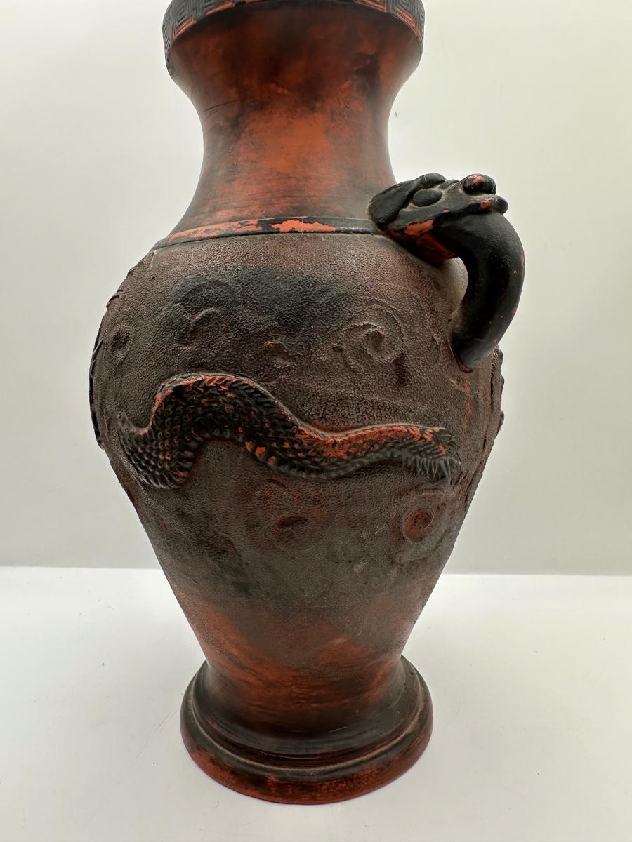 Japanese Tokoname Pottery Dragon in Clouds Amphora Vase