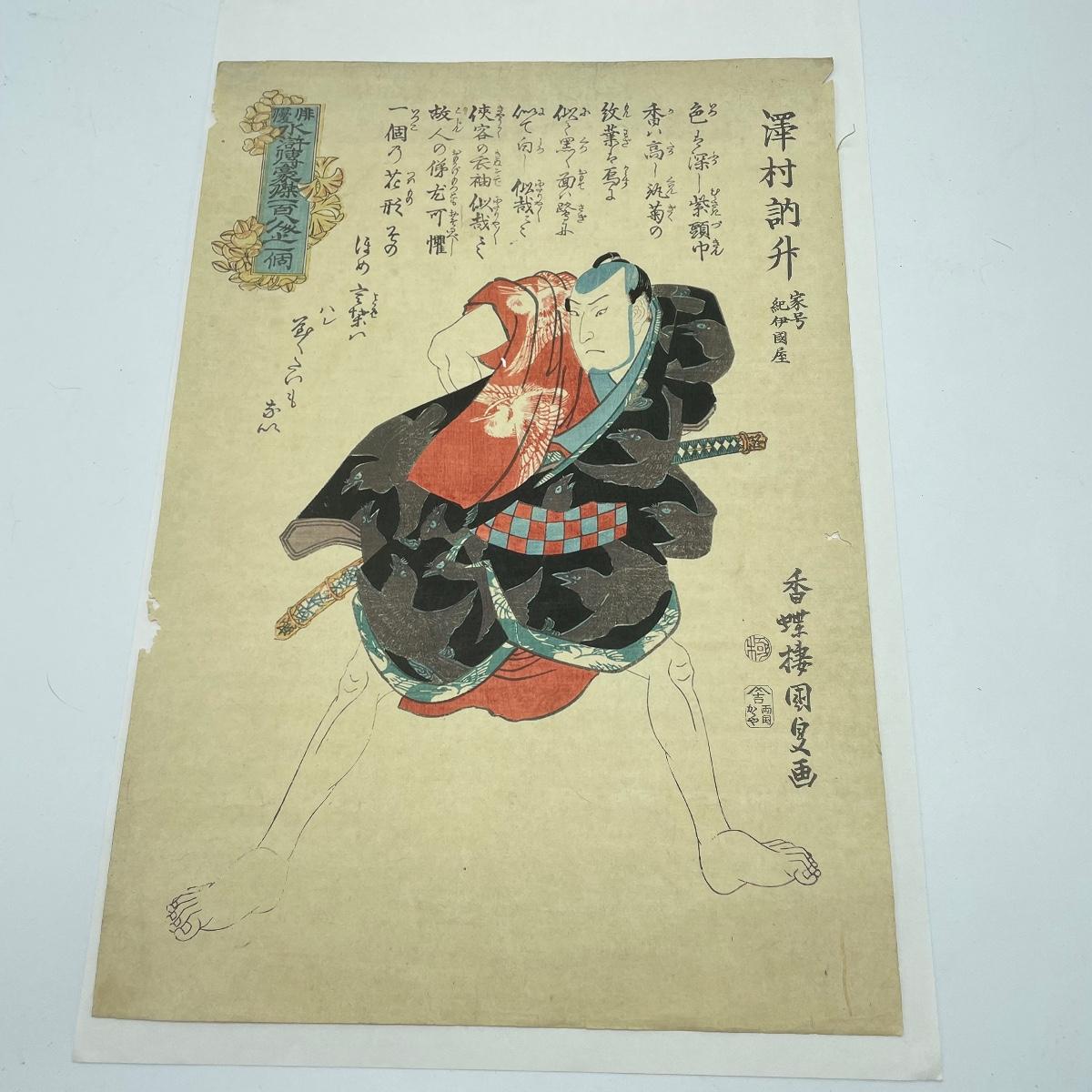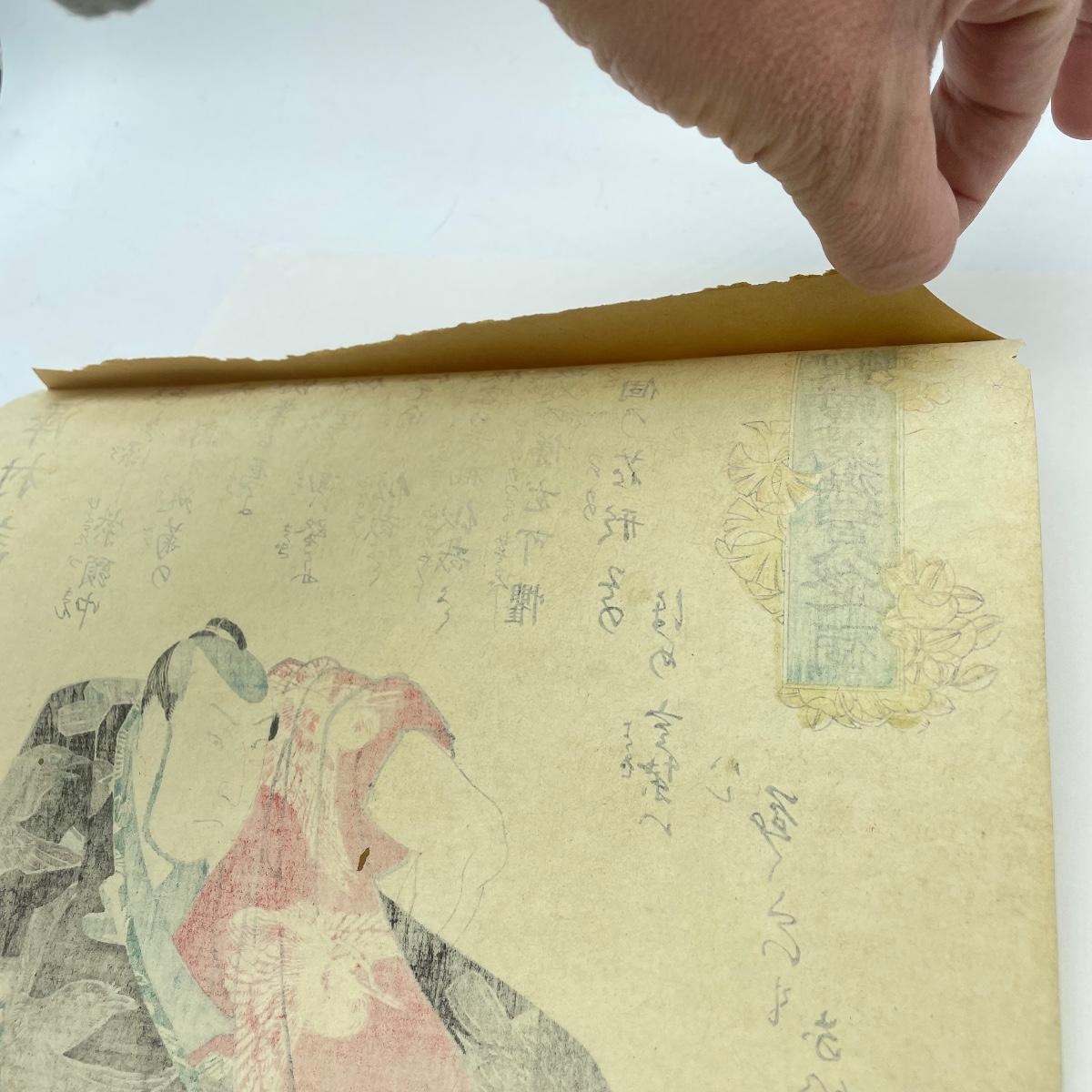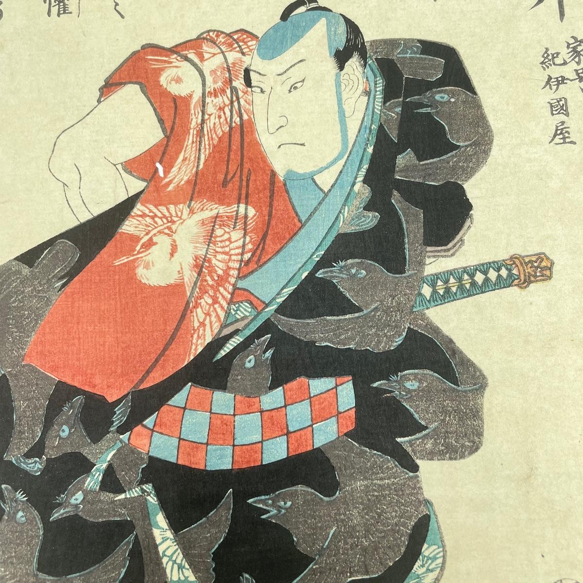 Sword wielding Samurai woodblock art. Piece measures 15” x 10.25” with fibers present. Sides of paper show minor blemishes. There is a pencil signature on the back. See images. Shipping available.