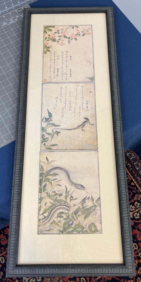 13 x 34 Framed in Black. Extra boxing fee if we have to ship theis in the frame.