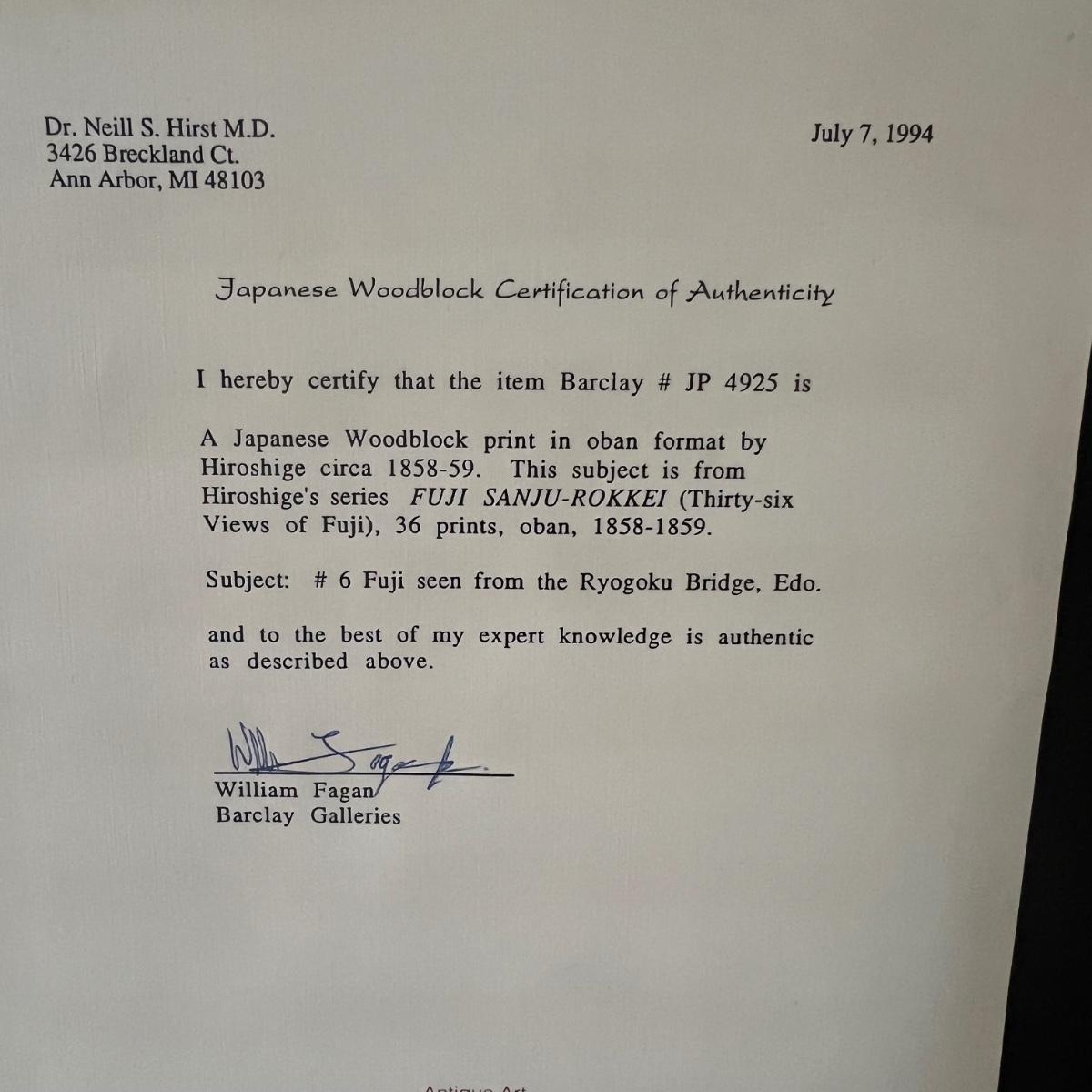 Japanese Woodblock Print By Hiroshige w/COA (DR-RG)