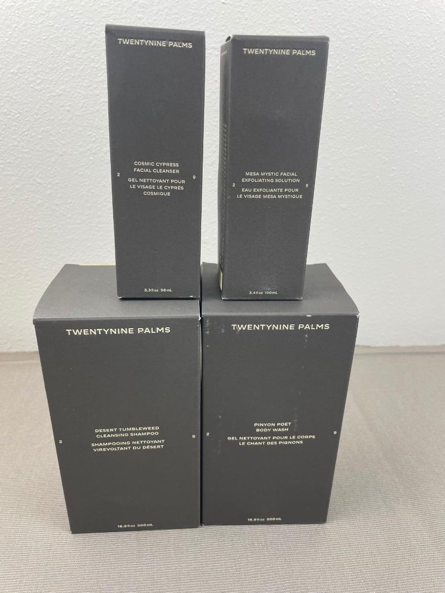 Shampoo, body wash, facial cleanser, exfoliating serum. High end beauty and smells good for men and women . New in boxes.