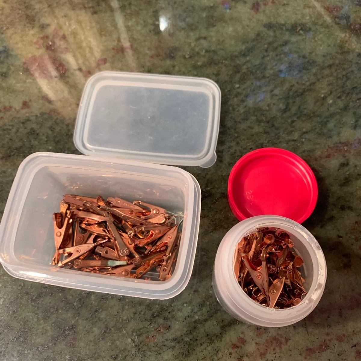 A collection of jars, bottles, inkwells, and more items for calligraphy inks or other uses. Includes a ceramic inkwell, glass jars, a heavy metal McCaffery jar, as well as some plastic items. Please see photos for inventory and details.