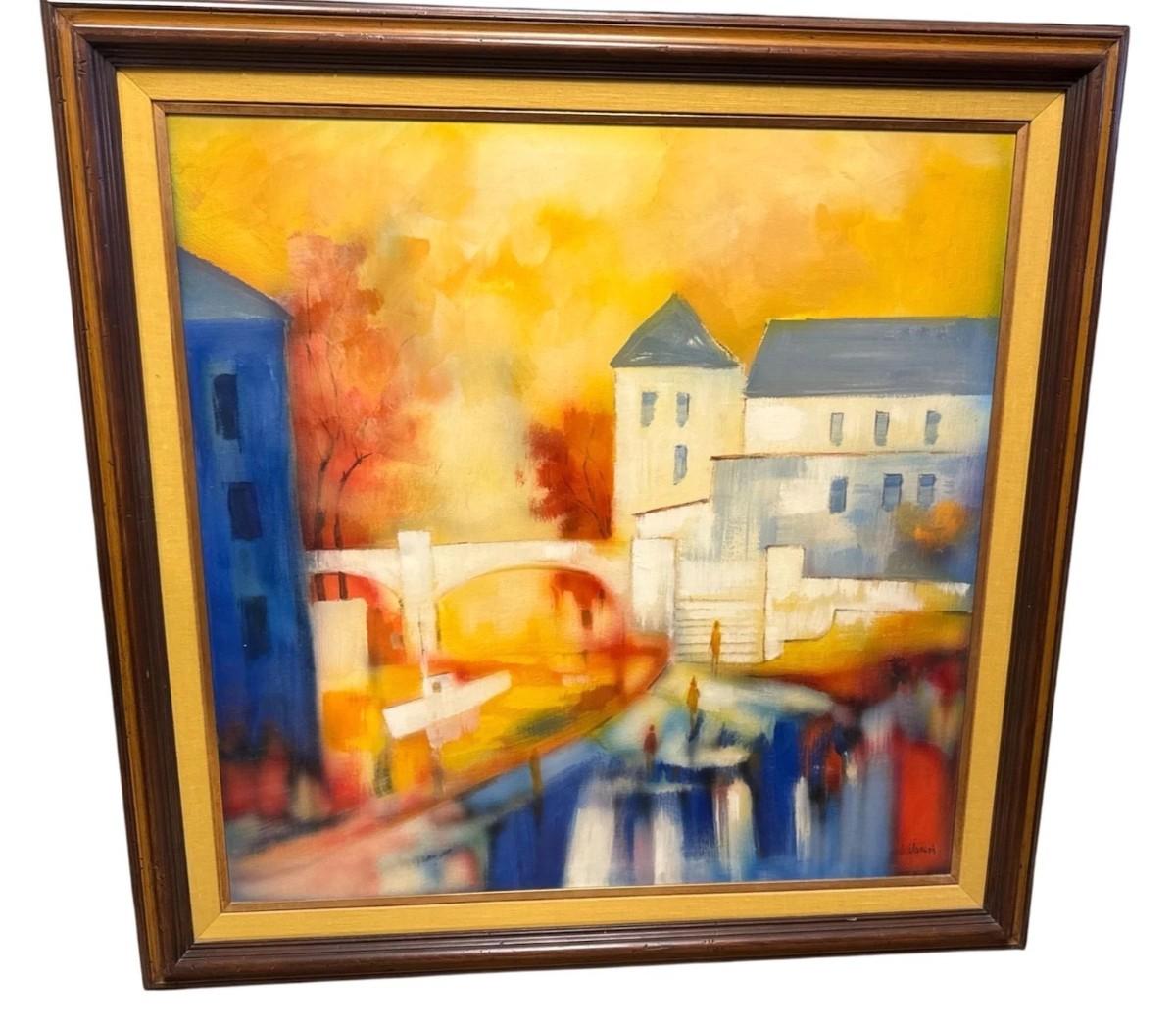 Jarvis (Belgium) Signed Cityscape Oil Painting