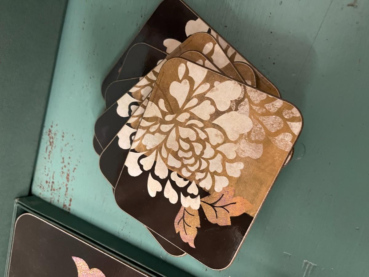 Includes 2 sets of 4 placemats and 6 coasters. Excellent condition.