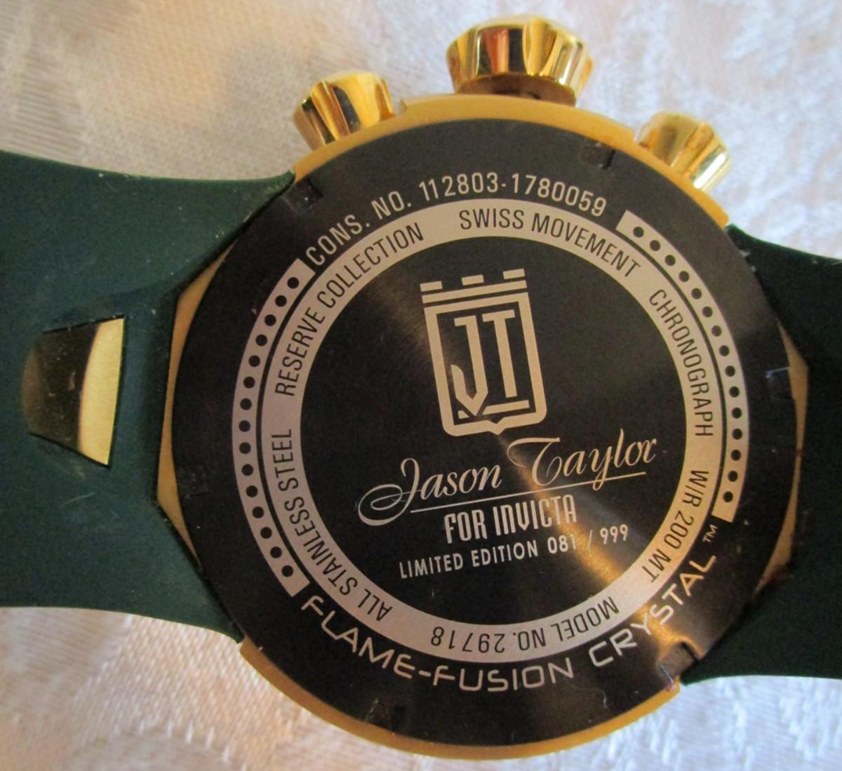 Jason Taylor for Invicta Reserve collection Green JT Venom Gen II, Quartz Chonograph Watch Model 29718, Limited Edition #81 of 999