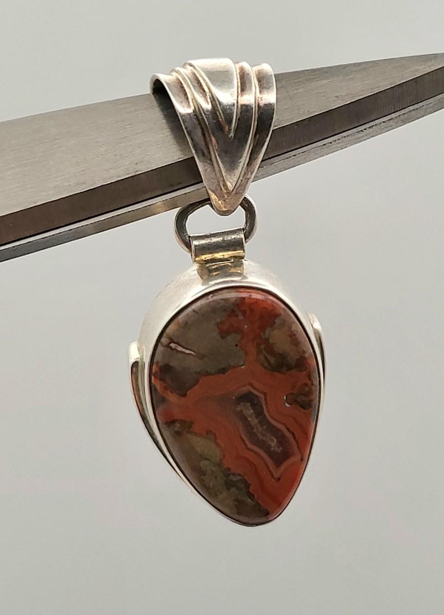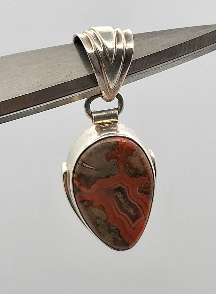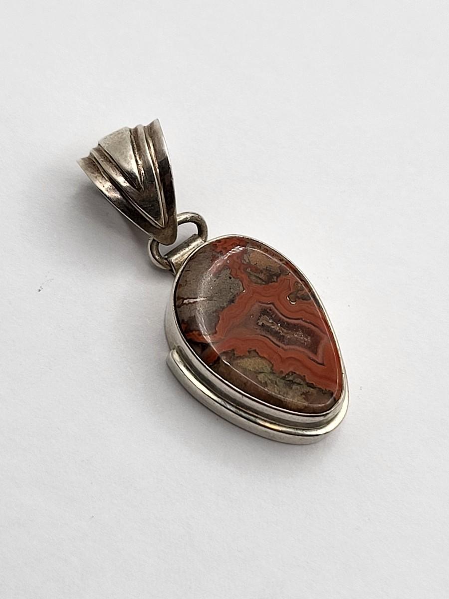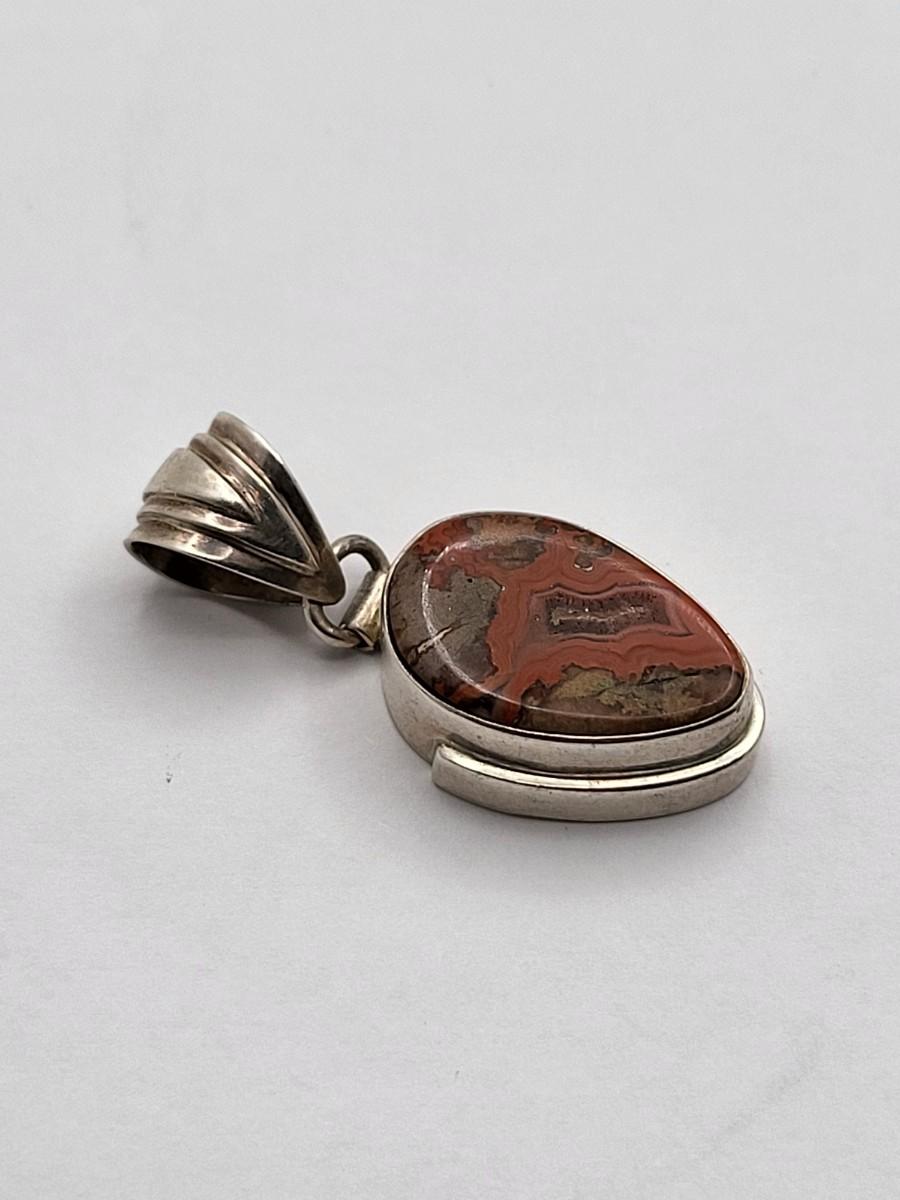 Tear drop shape Jasper pendant 1.5" long, set in 925 silver. Nice big cheveron bale for any type of chain. 11.5 grams.