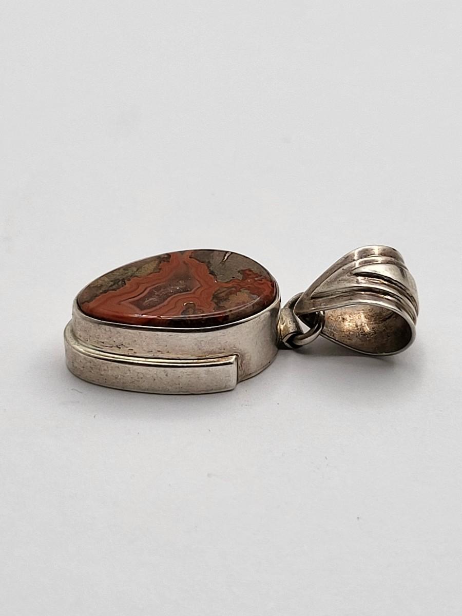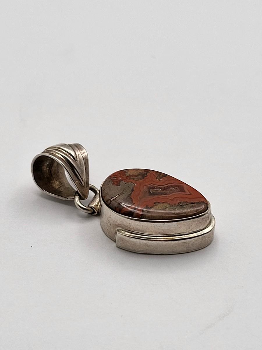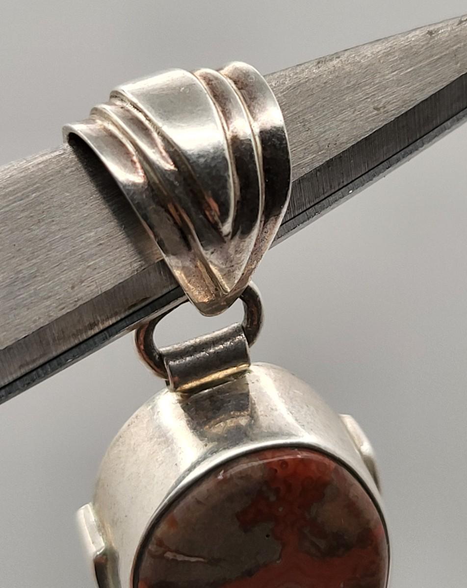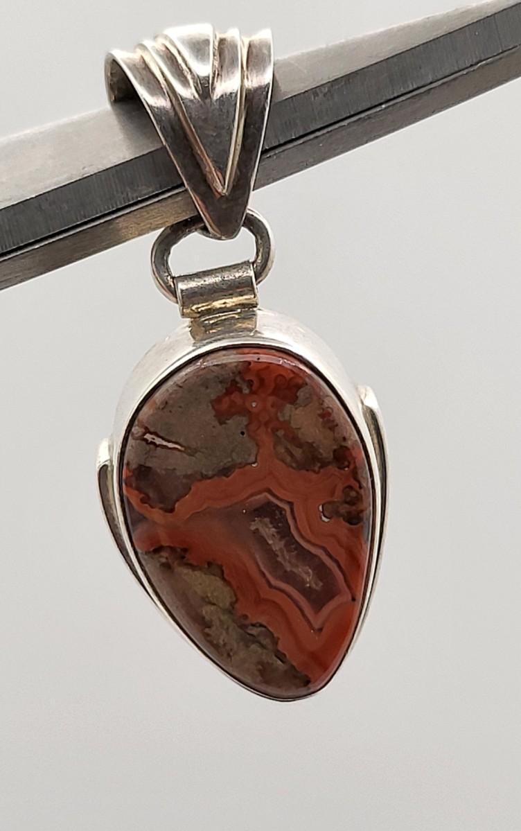 Tear drop shape Jasper pendant 1.5" long, set in 925 silver. Nice big cheveron bale for any type of chain. 11.5 grams.