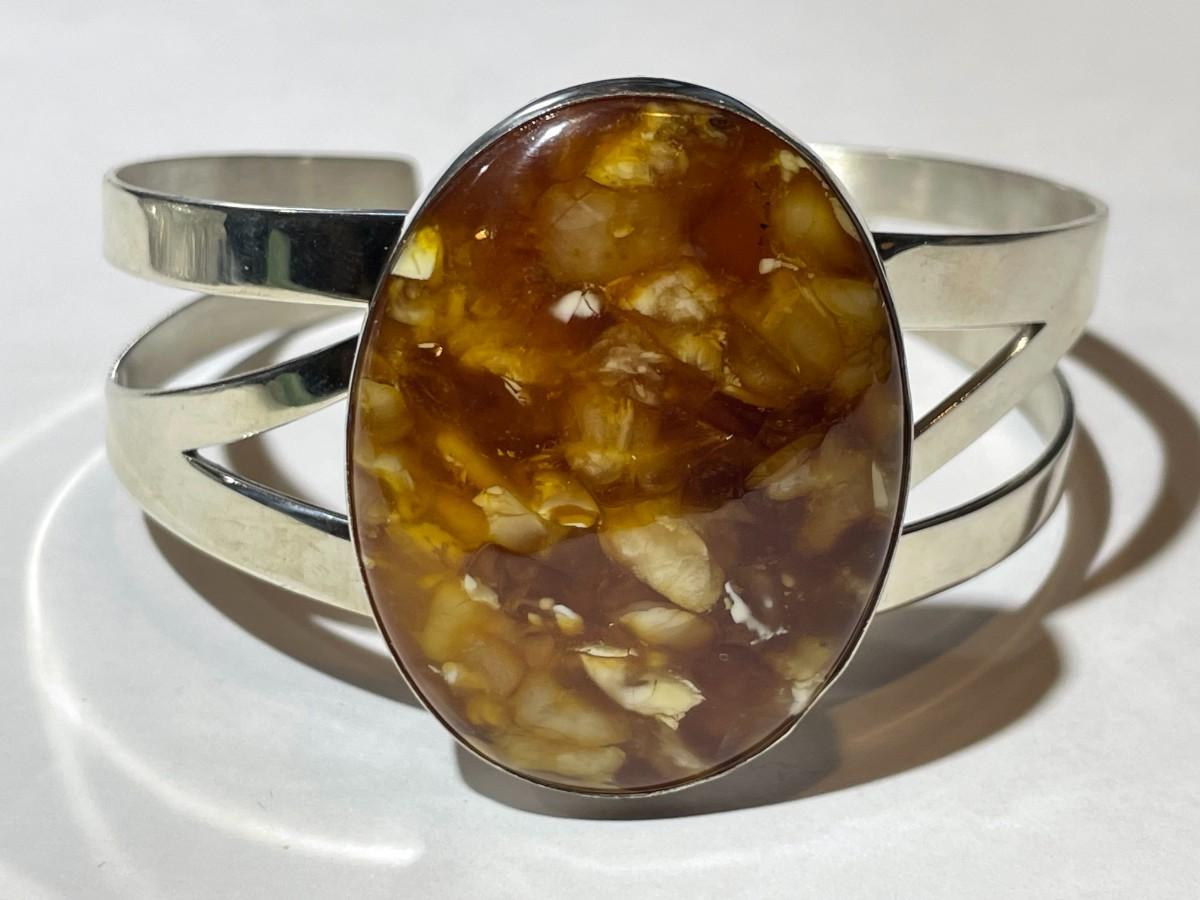 Jay King (DTR) Sterling Silver New Never Used Fashion Amber Color Cuff Bracelet Size for a 7" Wrist Preowned from an Estate. (Jewelry Piece #44).