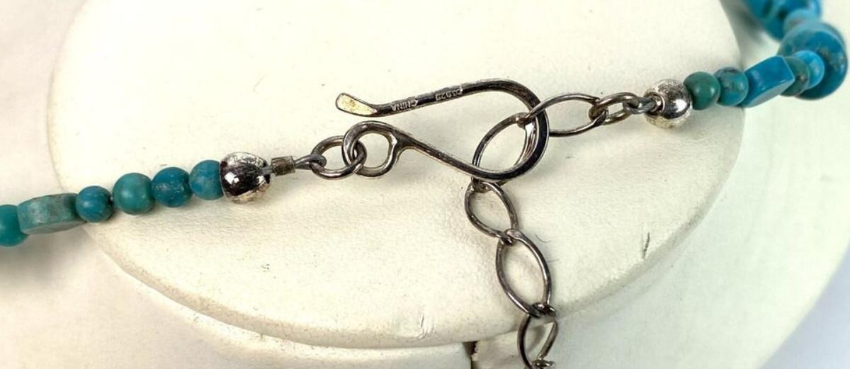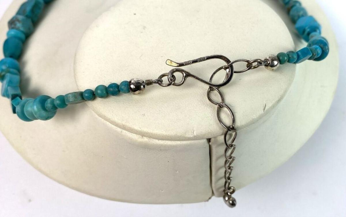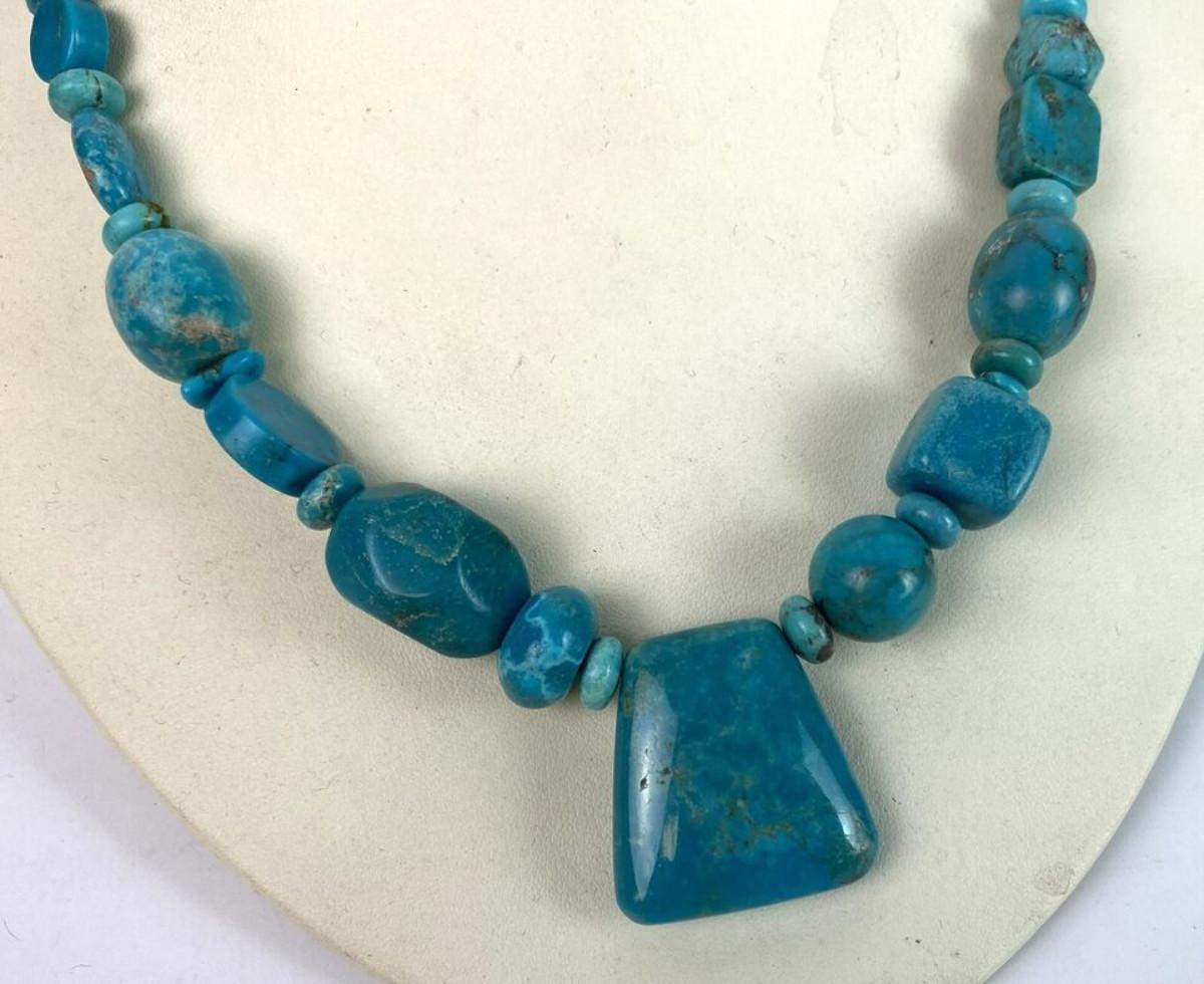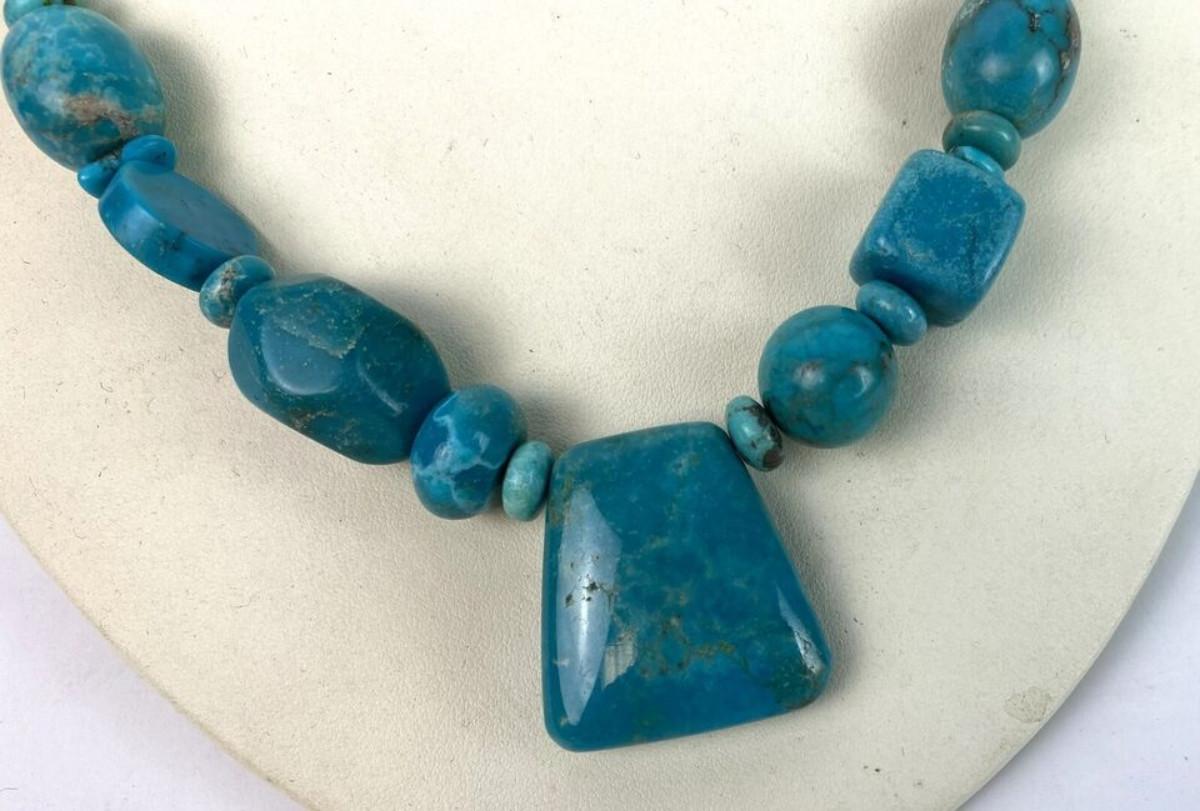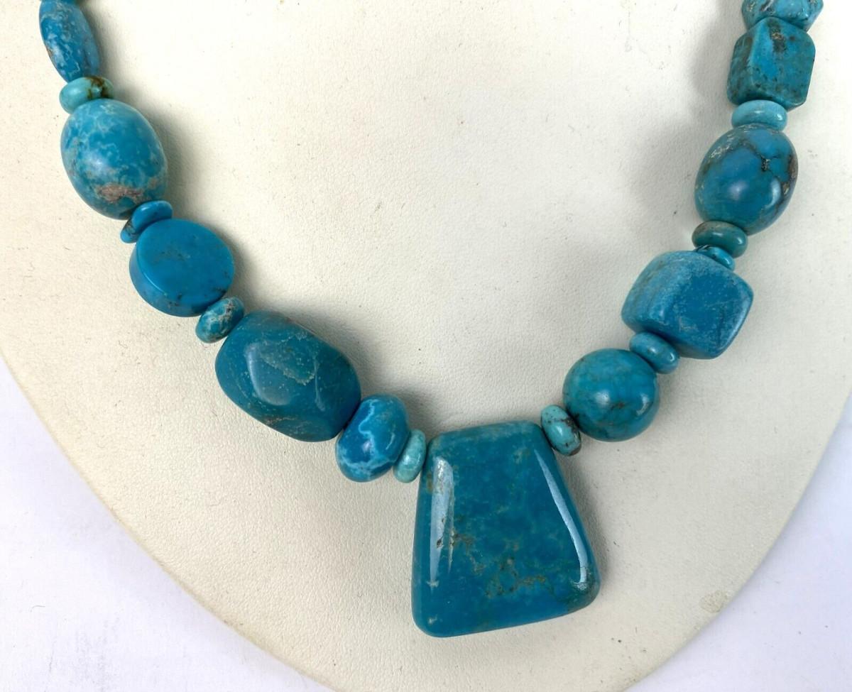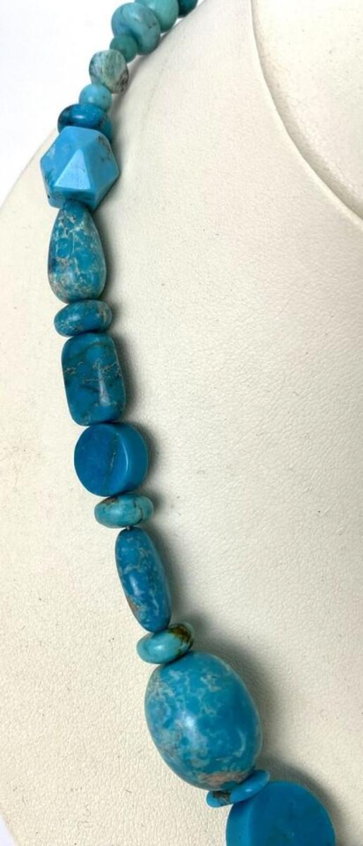 Here is a statement necklace from Jay King and the Desert Rose Trading Company...Geometric shaped Turquoise beads and a Sterling silver necklace...17 inches with a 3 inch extension...Excellent condition on this estate find.