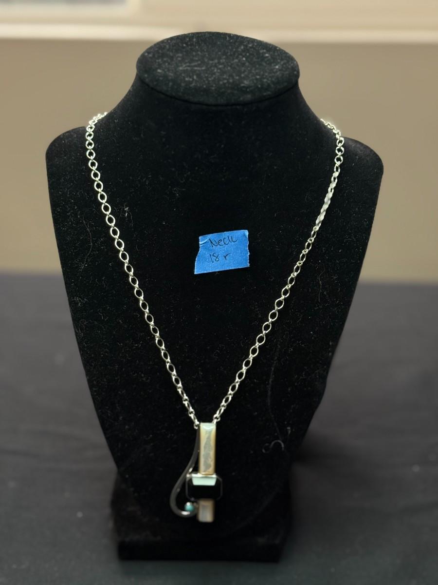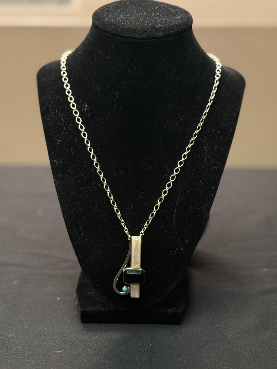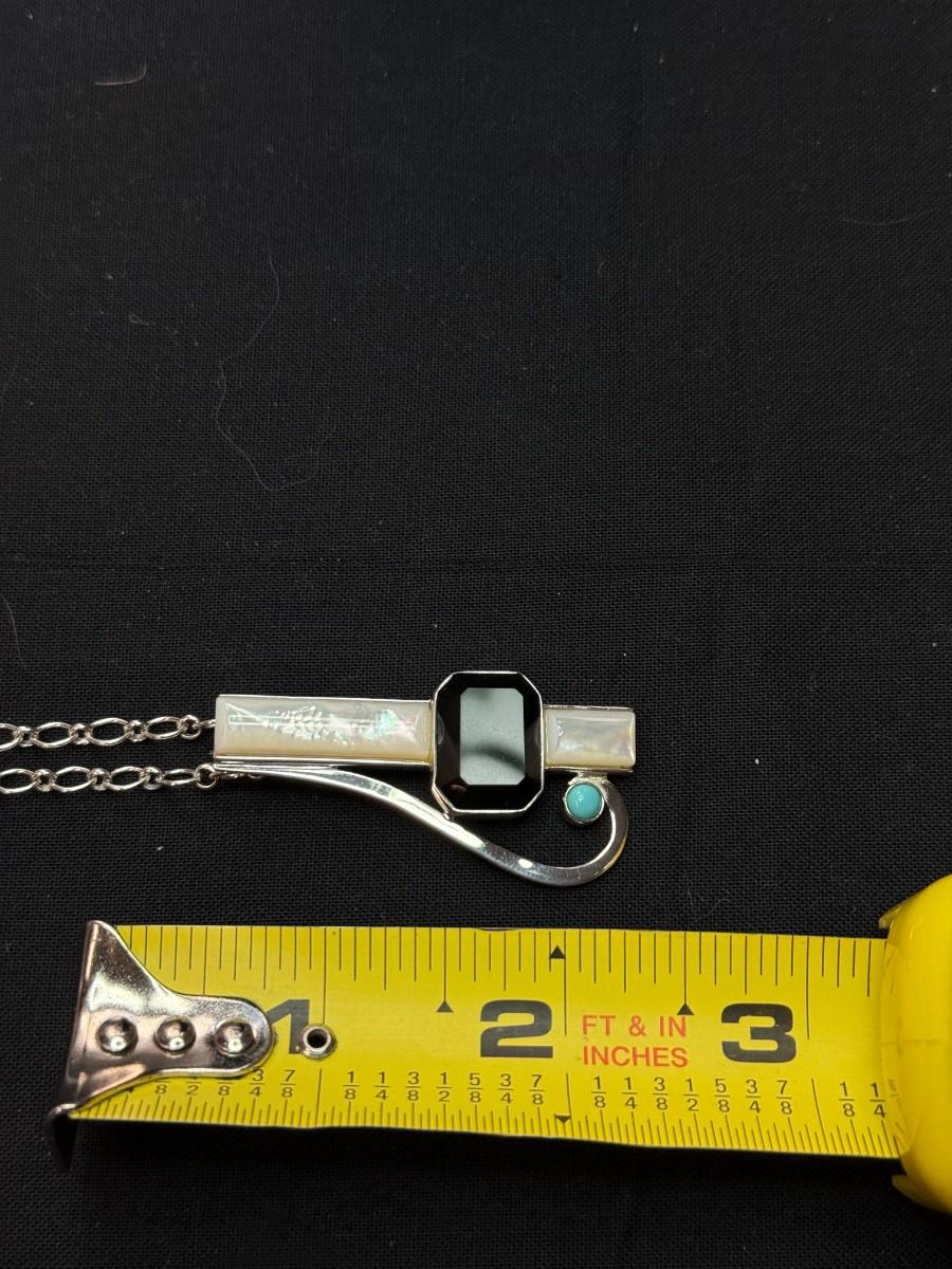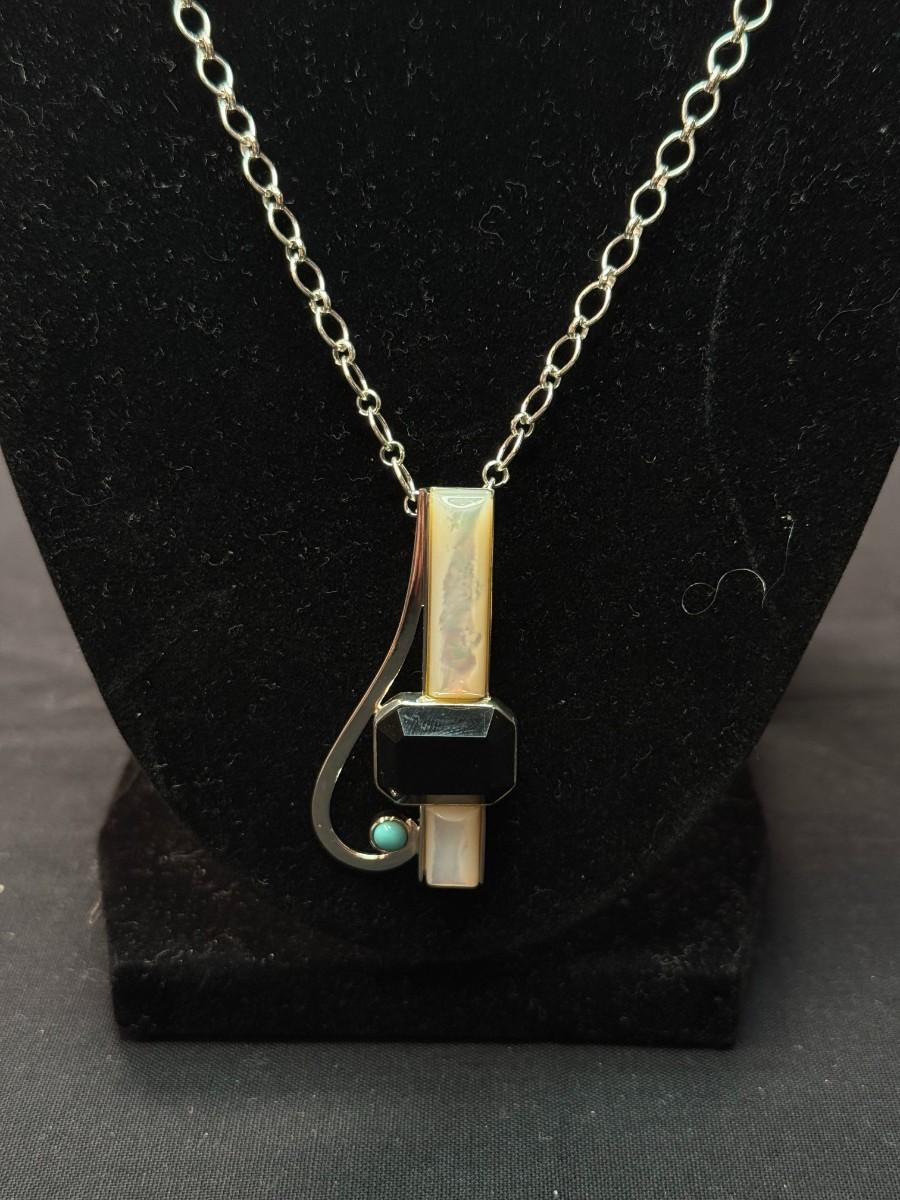 Jay King Mother of Pearl Black Chalcedony Turquoise Pendant w. Chain