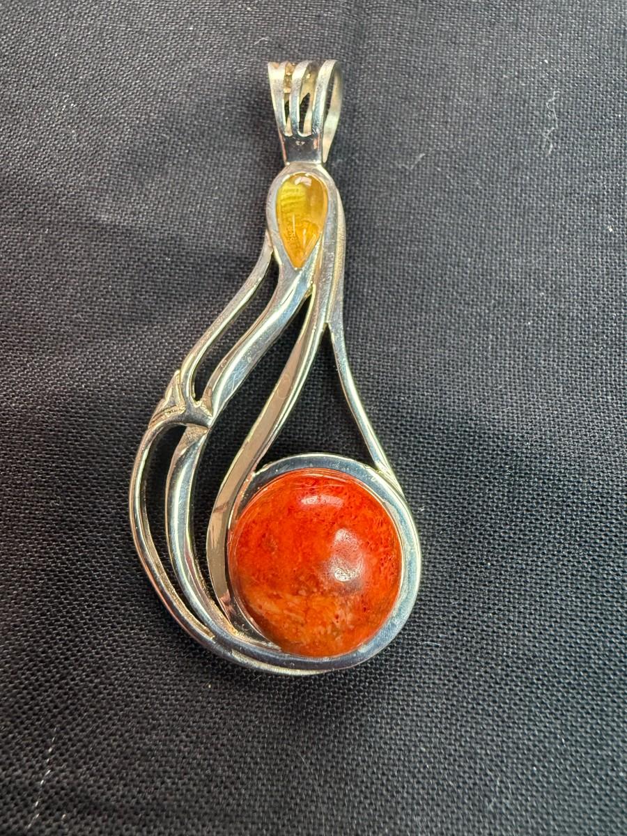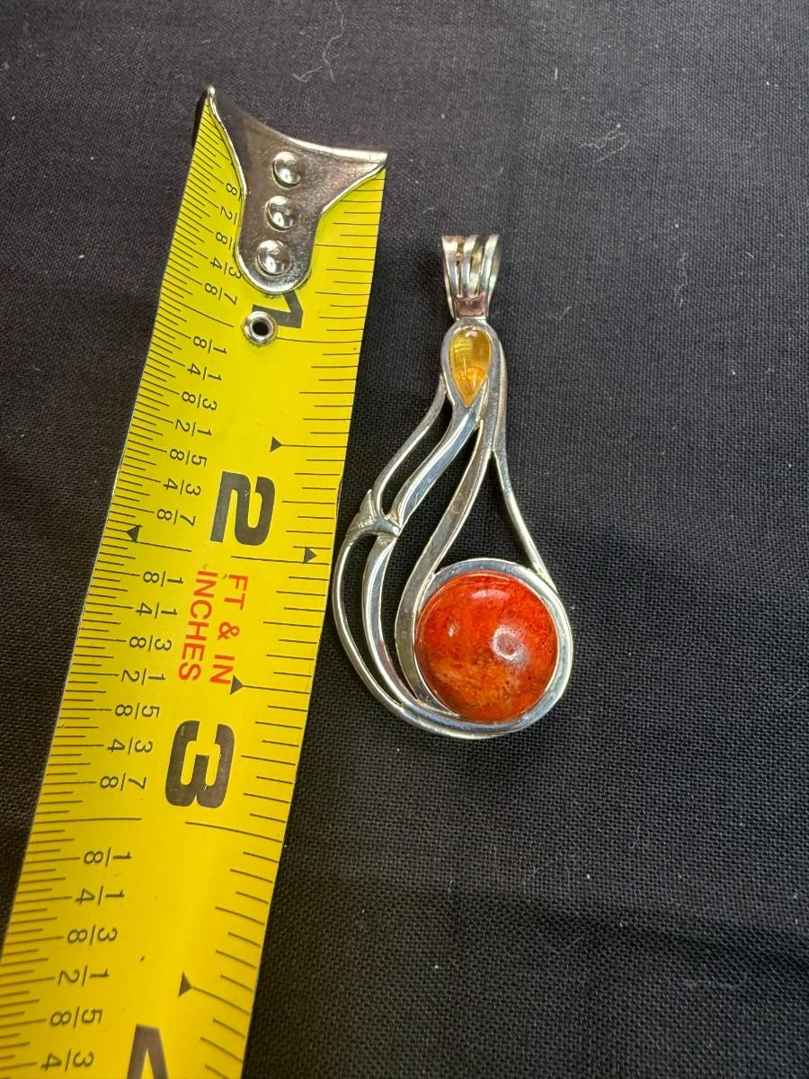 Jay King Multi Stone Sterling Pendant Citrine Orange Sponge Coral 925 Silver Desert Rose