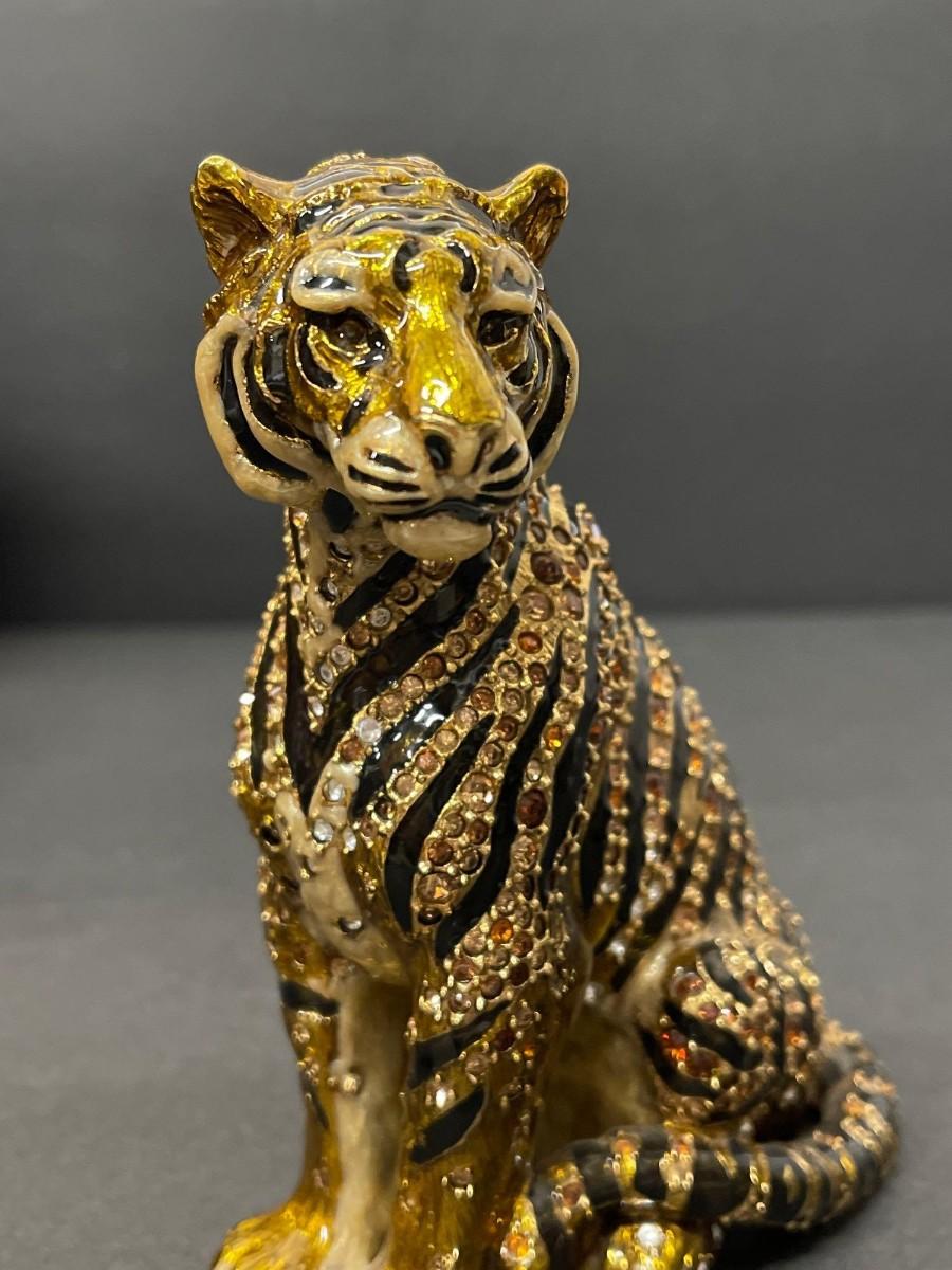 Jay Strongwater “Big Cat” Tiger Figurine. Excellent condition. 5 1/2” tall x 4 1/2” wide. Comes in original box with dust bag.