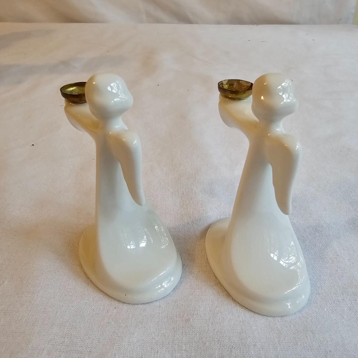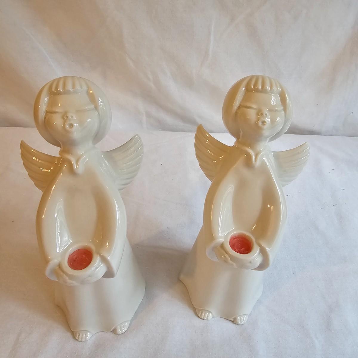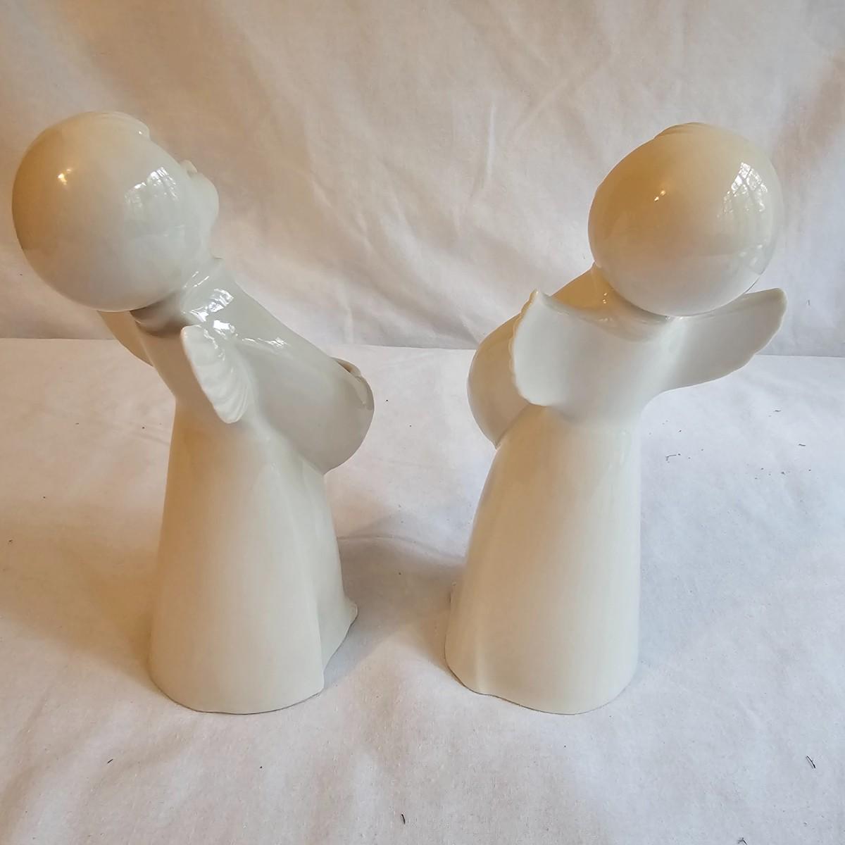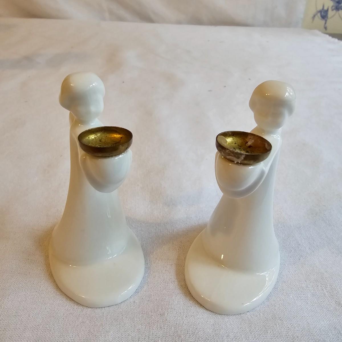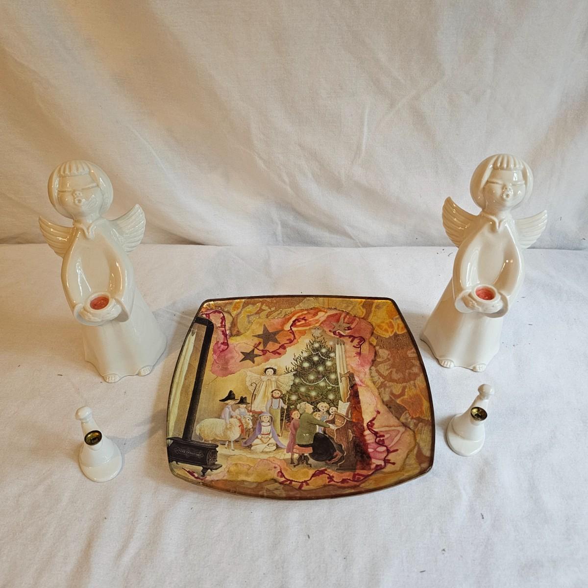 Four ceramic angels and a Christmas plate. Signed decorative ceramic plate measures 10.5” x 10.5”. Plate stand not included. Angels are all made in Germany. Largest pair are 4" x 5" x 8"H and smaller set is 1.5" x 2"x 13"H. See photos for details. Shipping available.