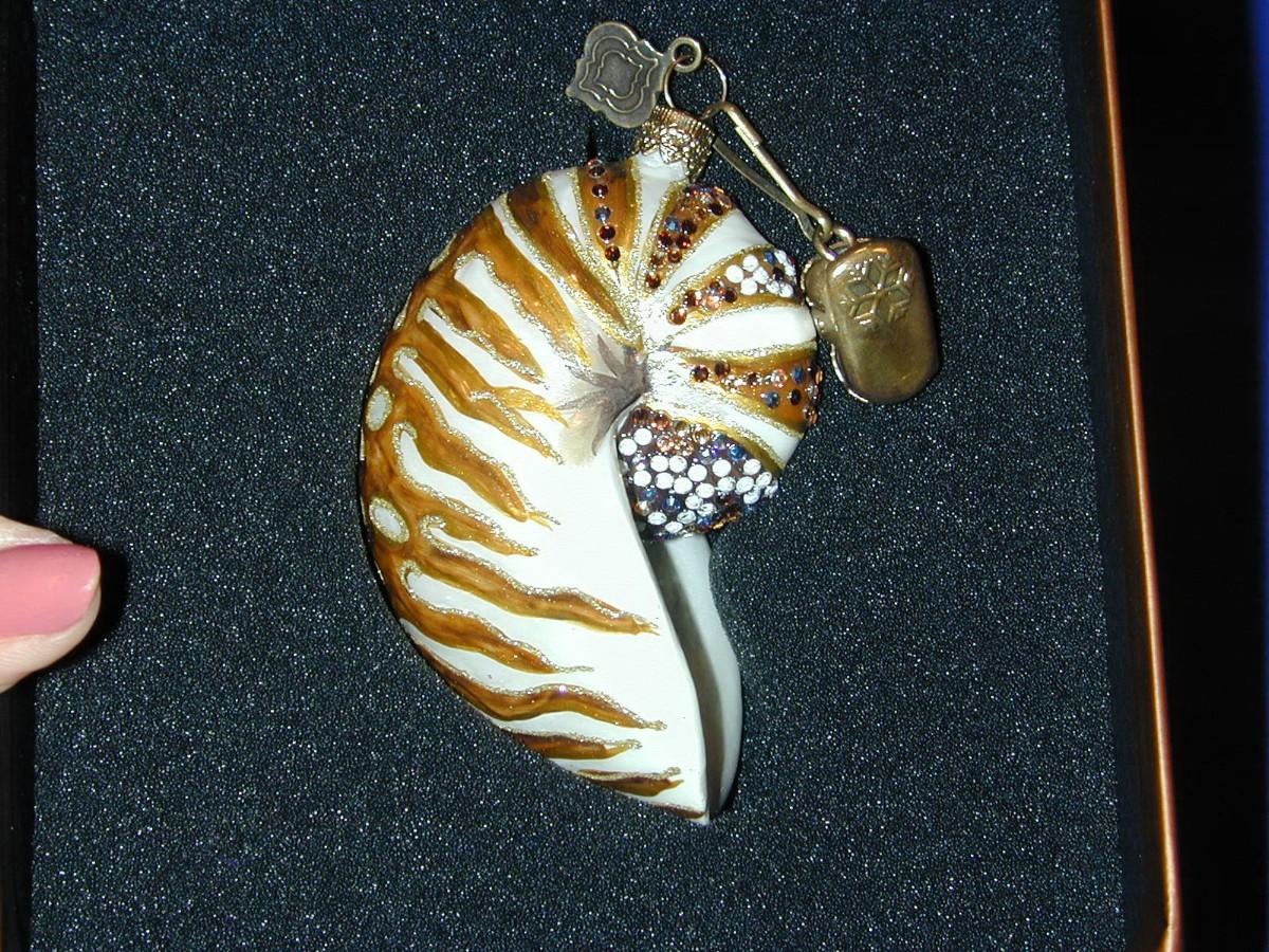 Jay Strongwater Glass Jeweled Chambered Nautilus Christmas Ornament In Box Lot 338