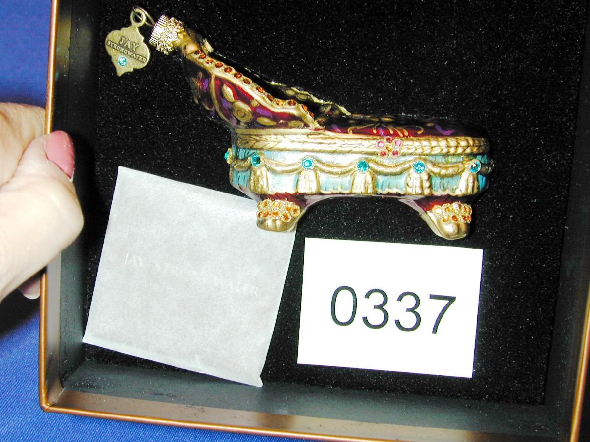 Jay Strongwater Ornaments/items are in good pre-owned condition. The boxes show some wear/corner splits. Never a buyers premium, credit card fee, or reserve. All items start at just $10.