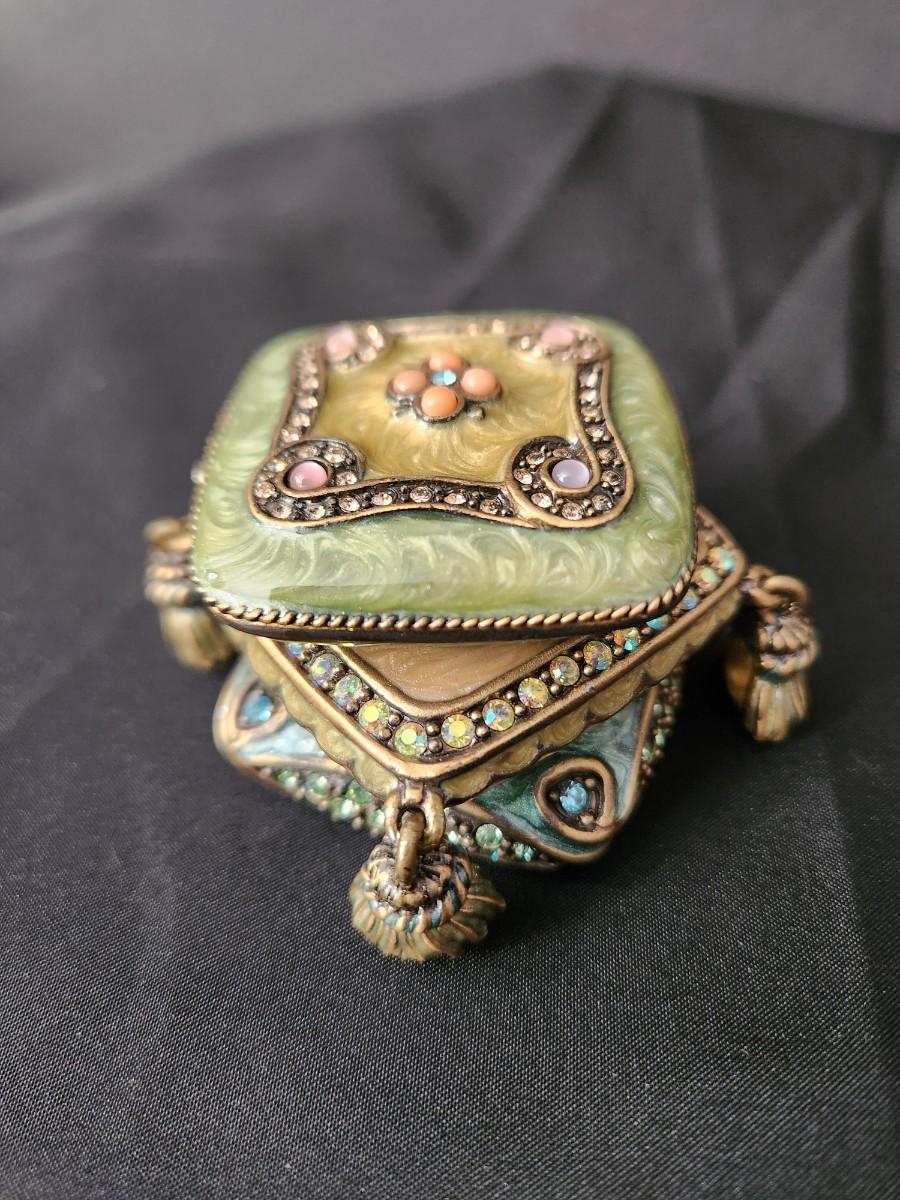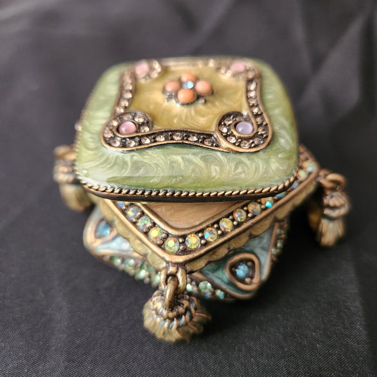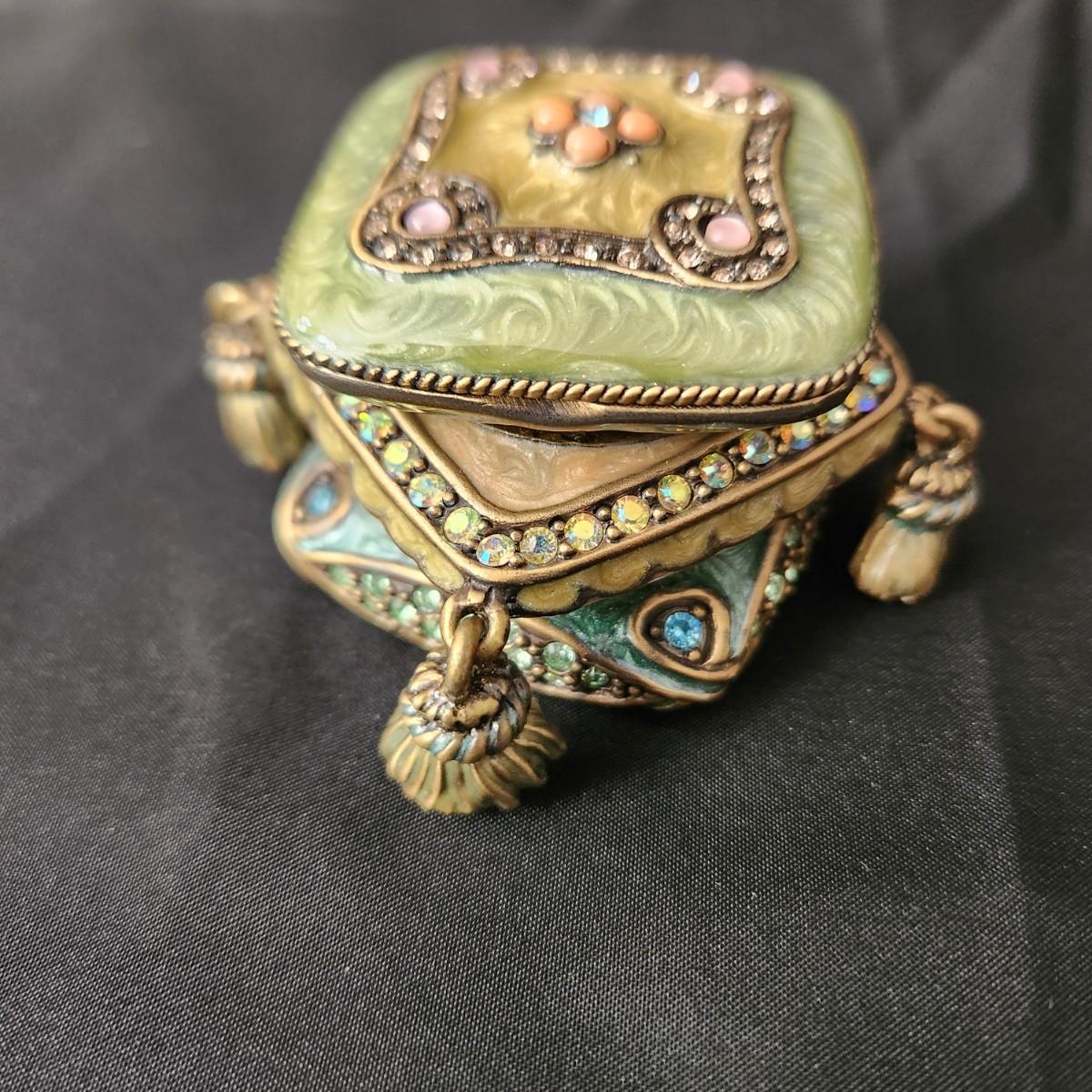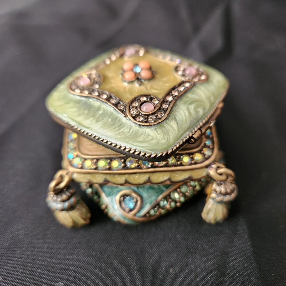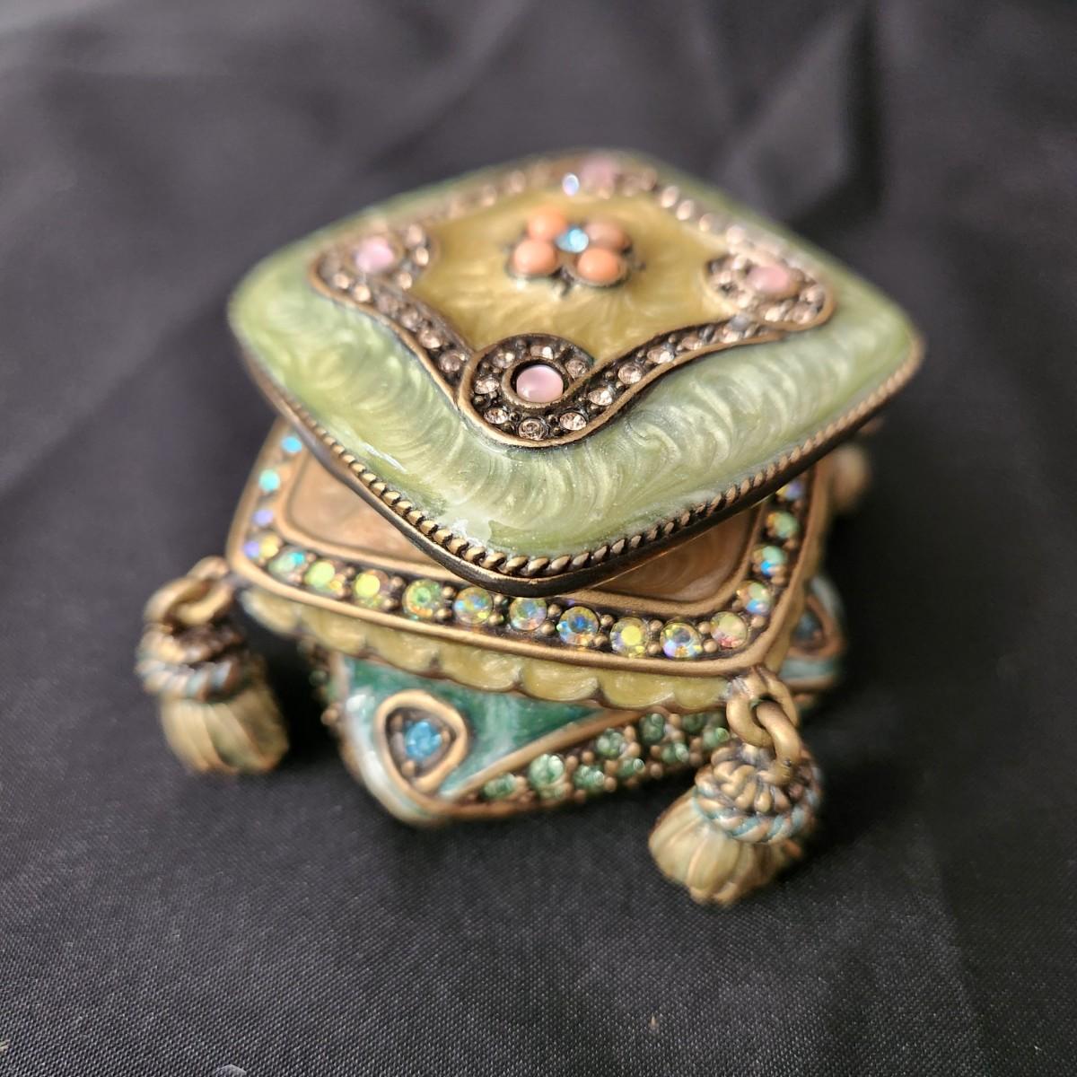 Jay Strongwater Jeweled Enamel Tasseled Pillows Trinket Box