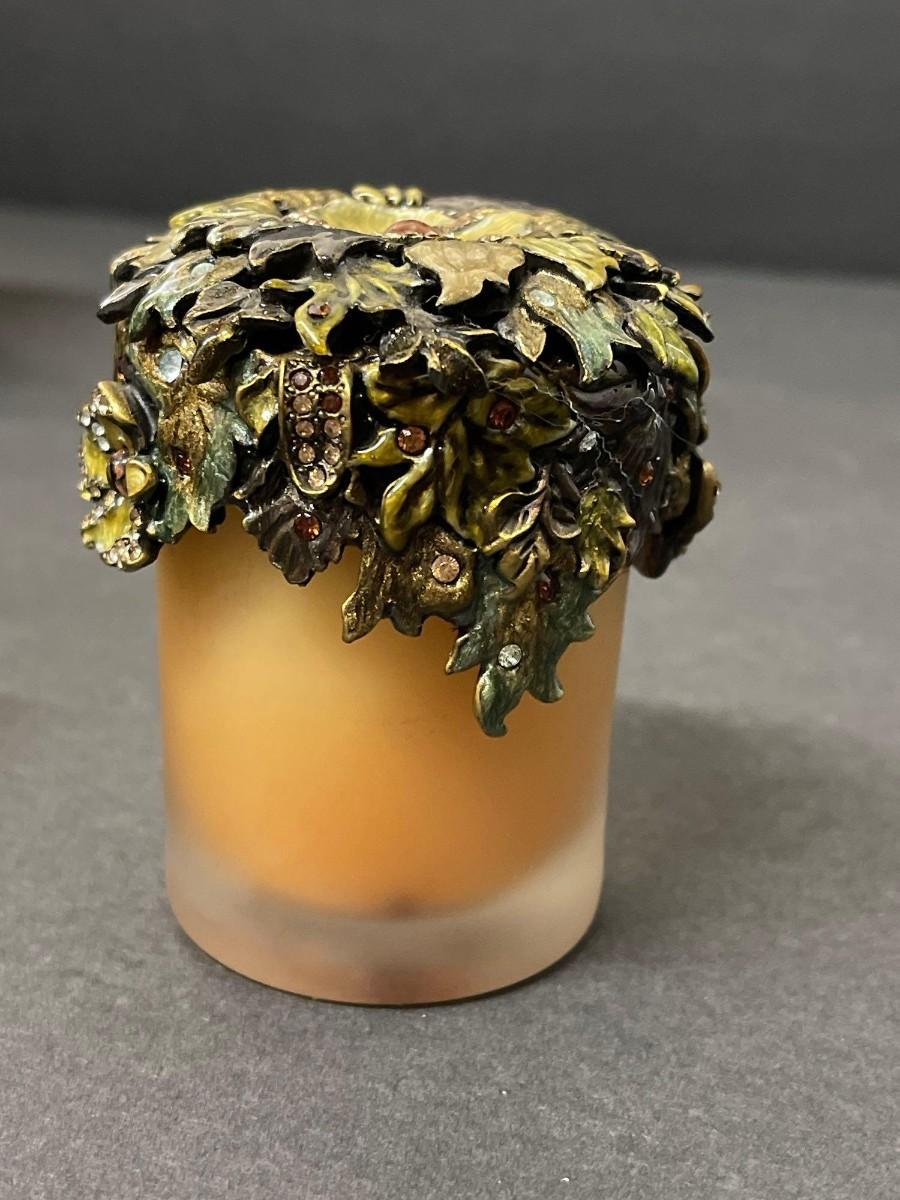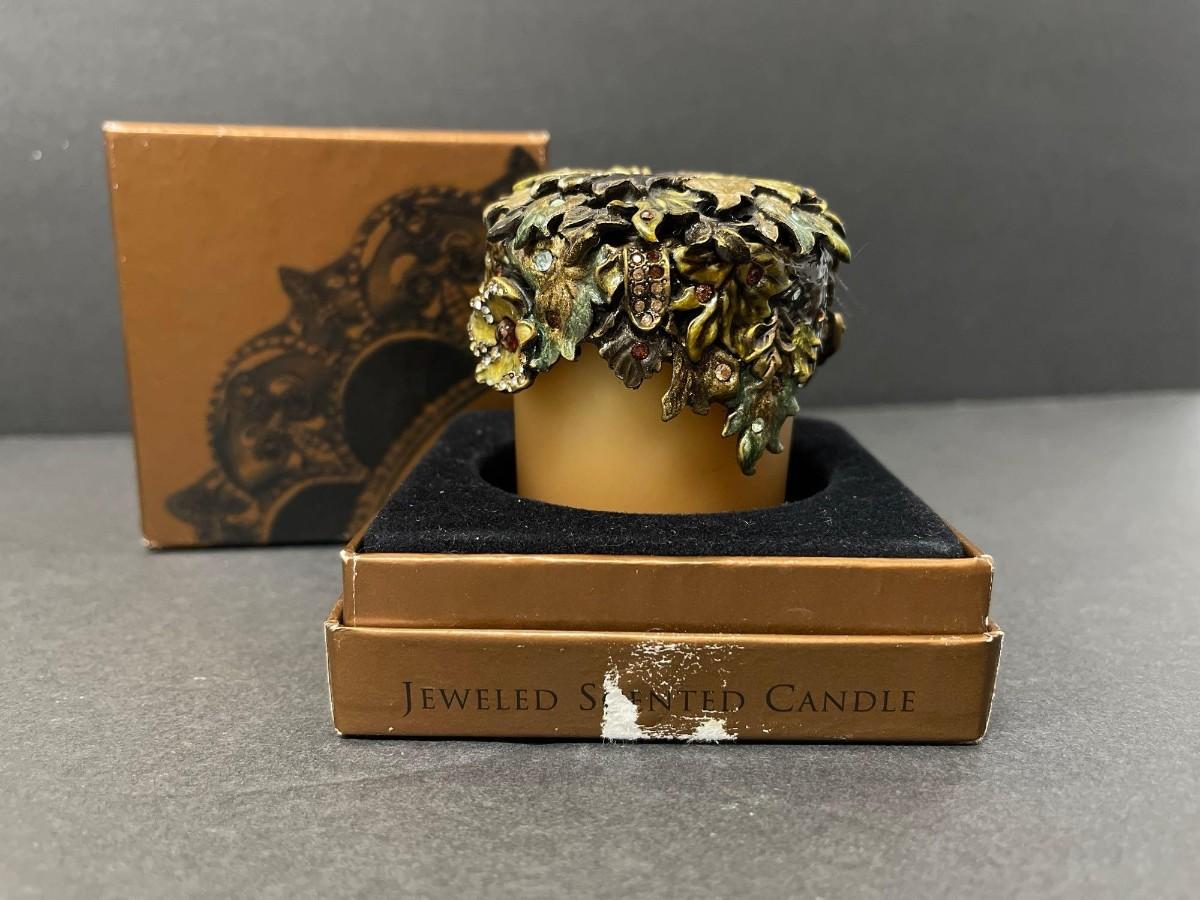 Jay Strongwater Jeweled Scented Candle. Very good condition. Candle has been lit previously. 3 1/2”.