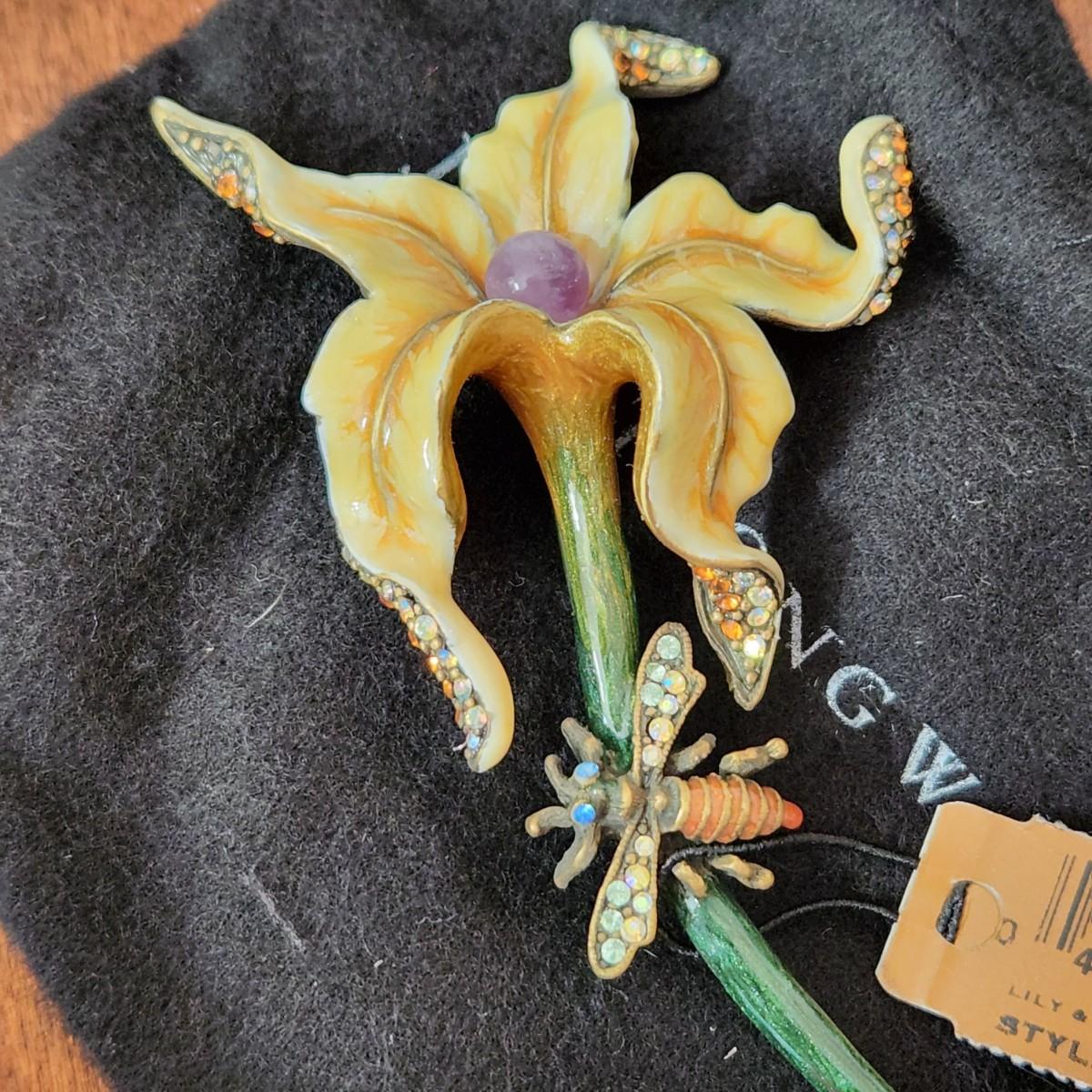 Jay Strongwater Lily & Bee Pin Eleanor w box and tag