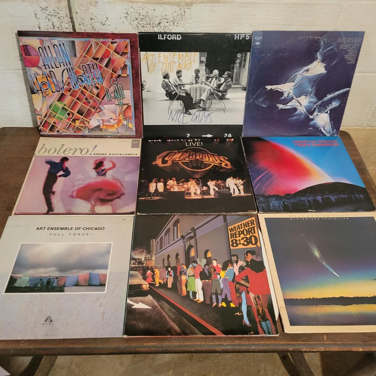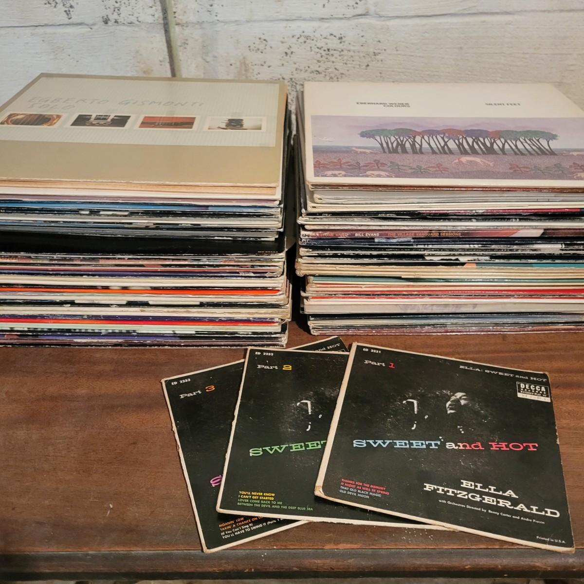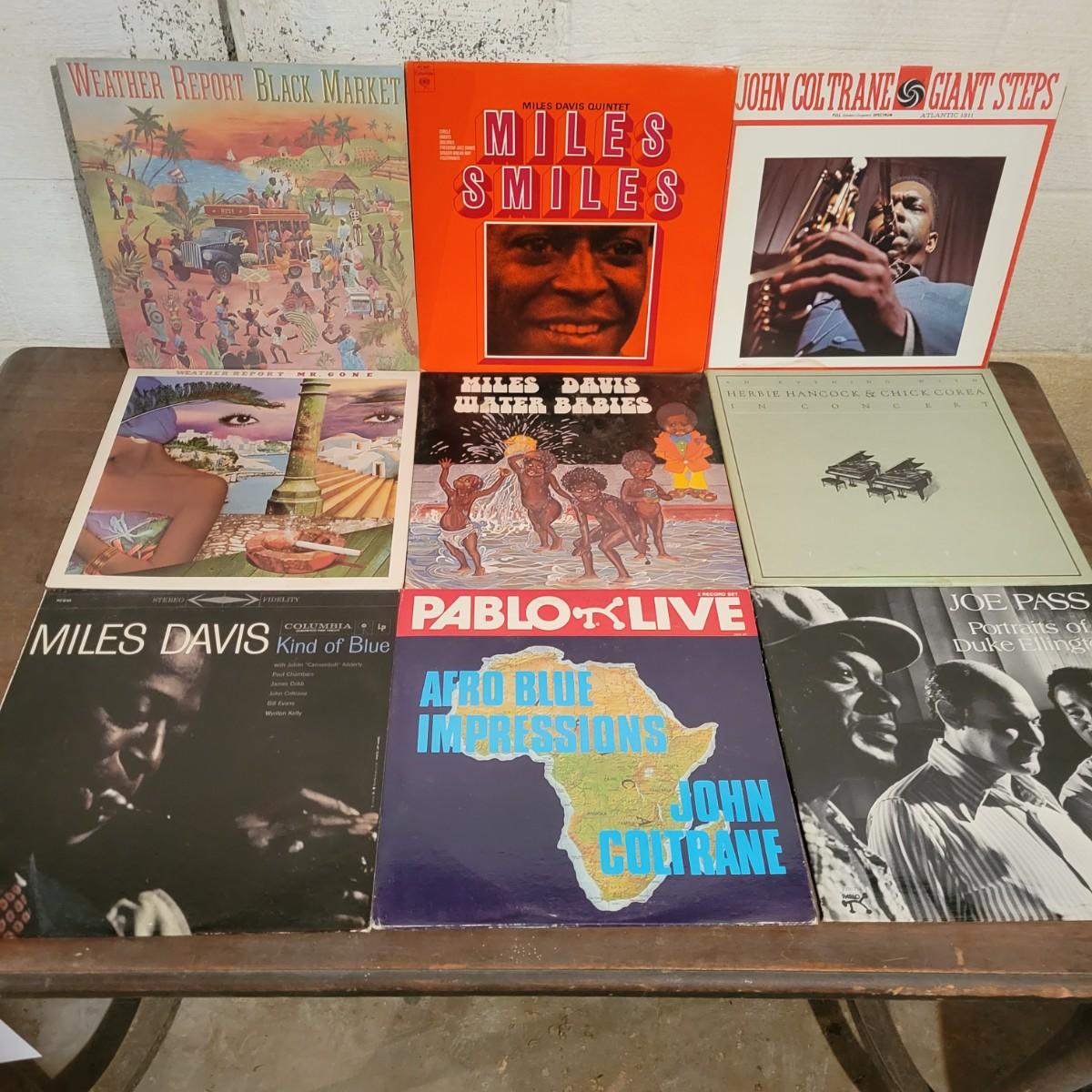 An assortment of approximately 68 LPs and three 45s with minor scratches, but some covers show minimal damage from use and storage. Includes artists Ella Fitzgerald, Miles Davis, Weather Report, Joan Armatrading, and many more. Shipping available.