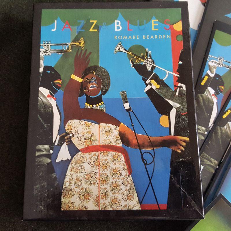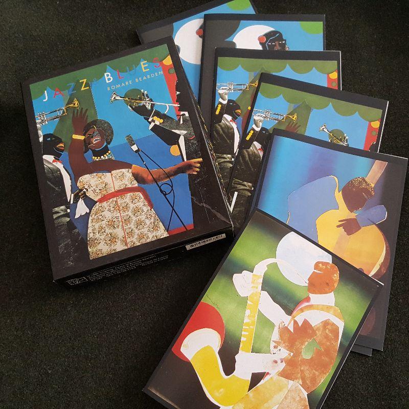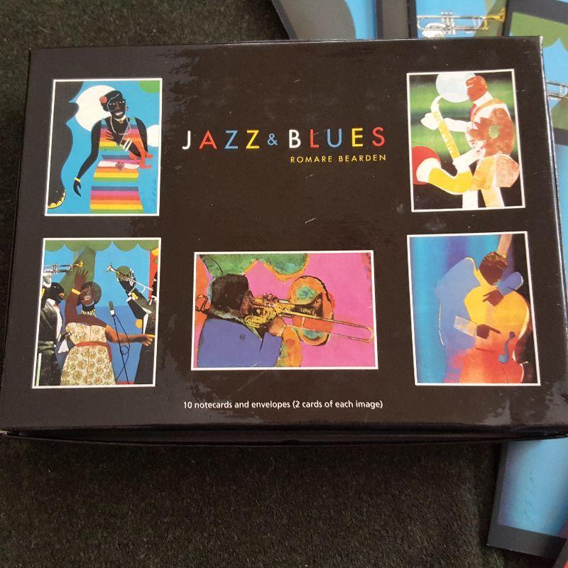 This auction lot is for a box of Romare Bearden's Jazz & Blues Note Cards. Originally produced in 1996. The colorful artwork of noted designer Romare Bearden (1911 - 1988) is reproduced on these blank note cards. There are 7 cards in this set. The cards were produced in Paris, France. Where you gonna find some more.