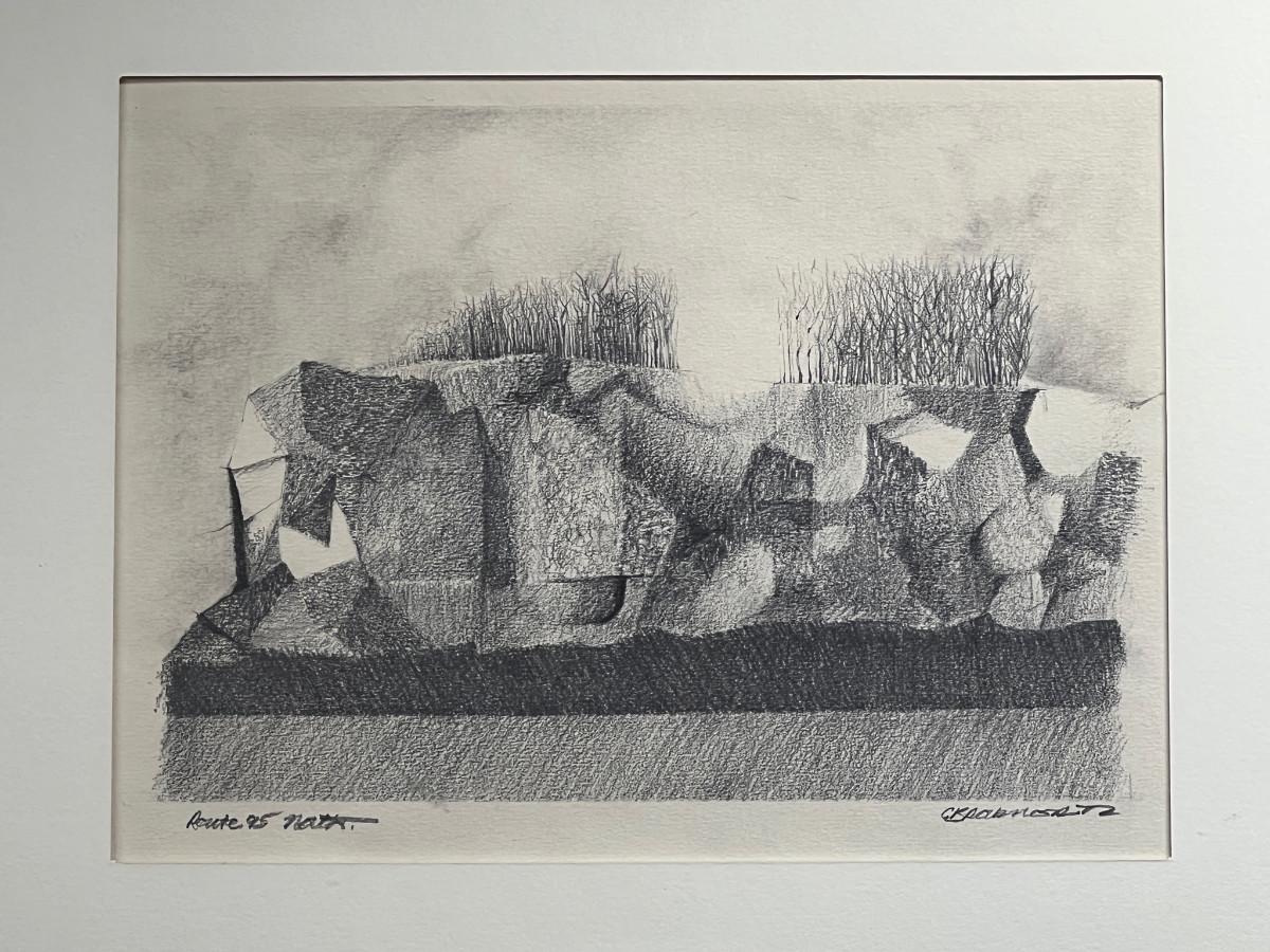 Abstract Drawing "Route 95 North" by Kansas artist purchased at the Raymer Society (as indicated on back)