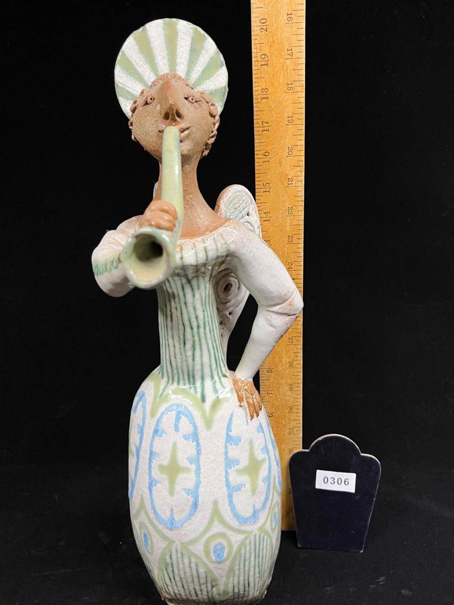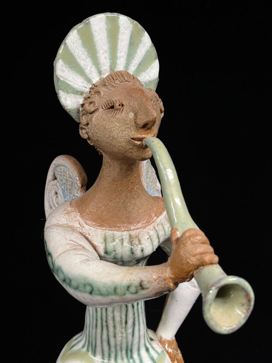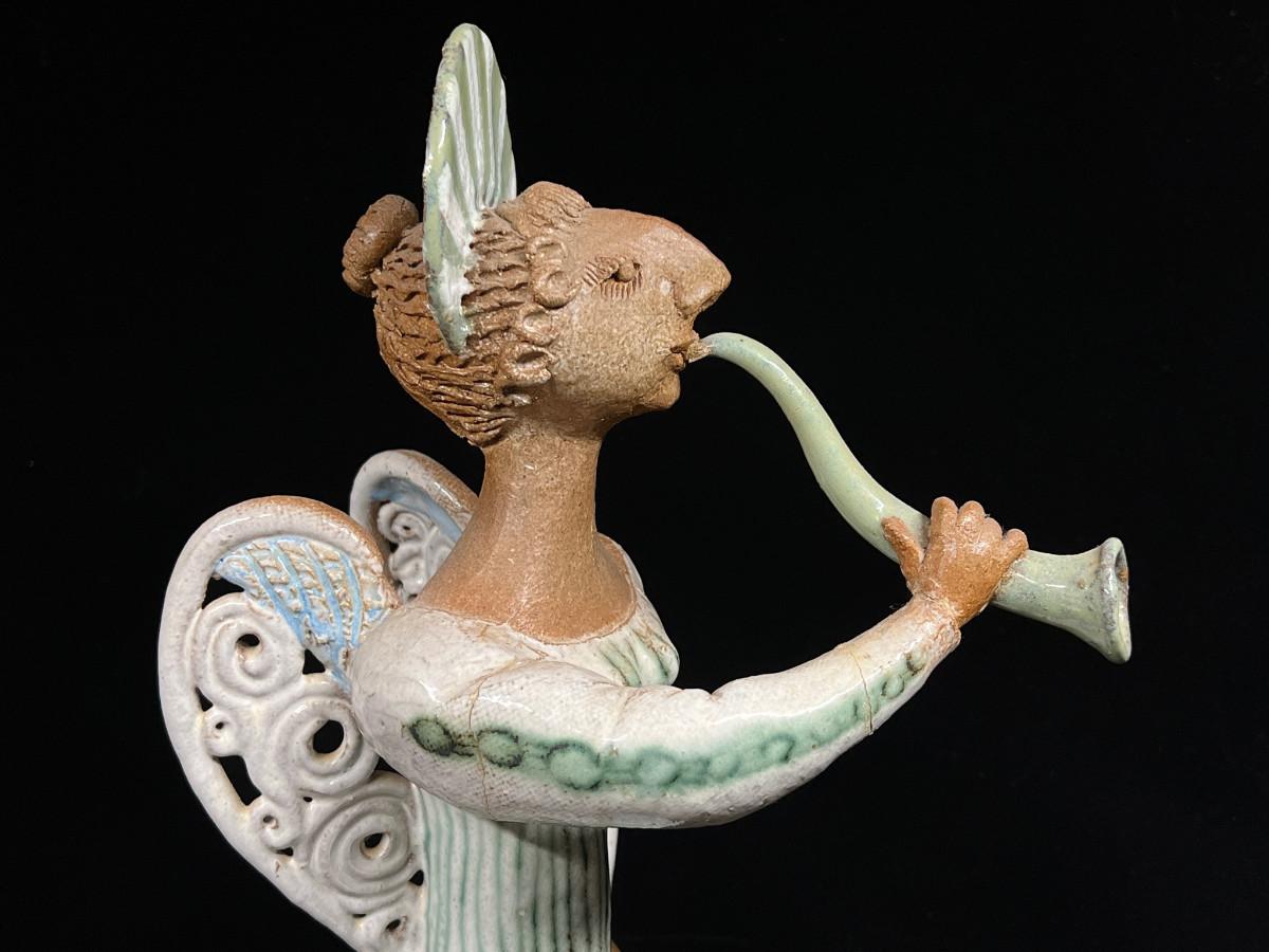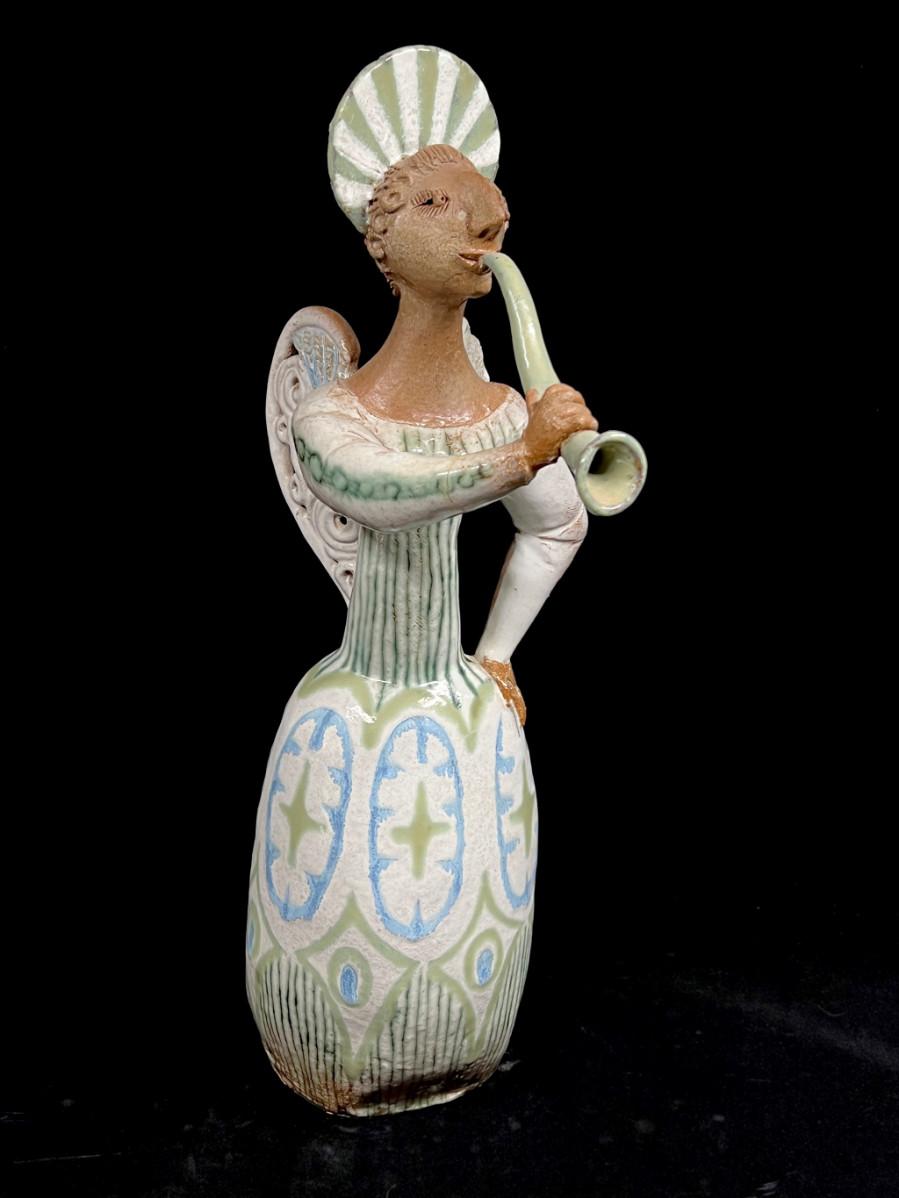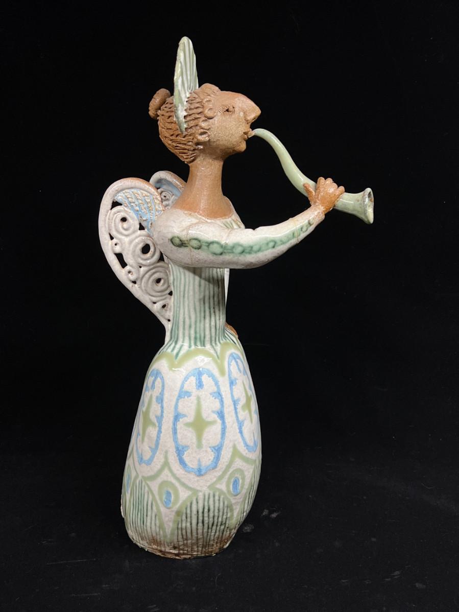 Rosemary Laughlin Bashor Studio Ceramic sculpture Angel with a horn