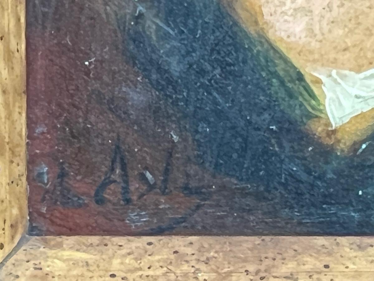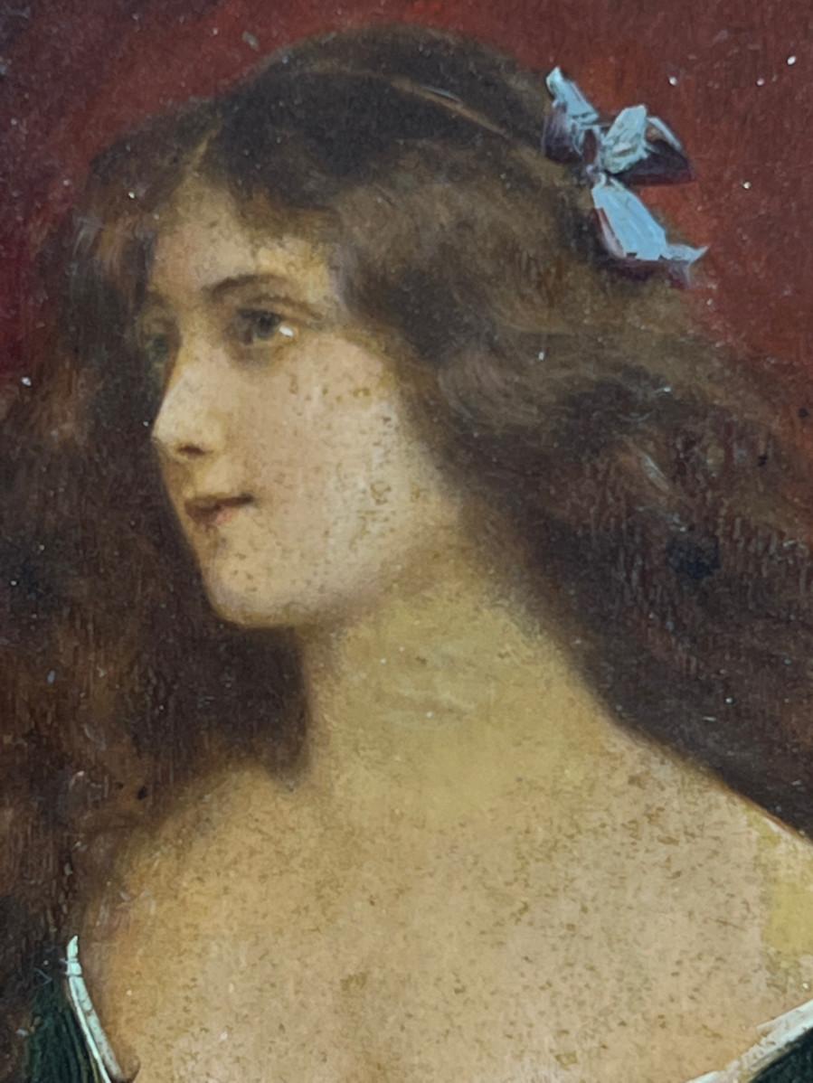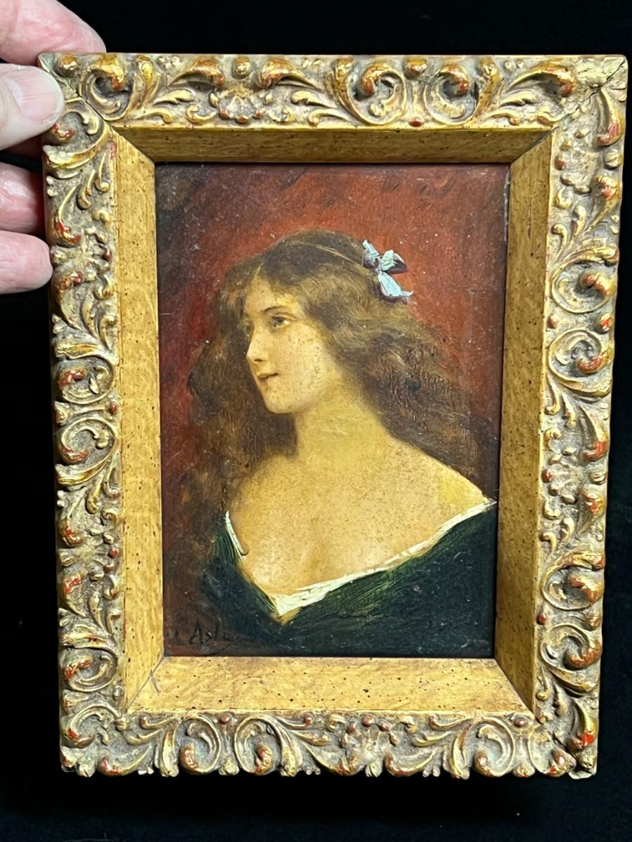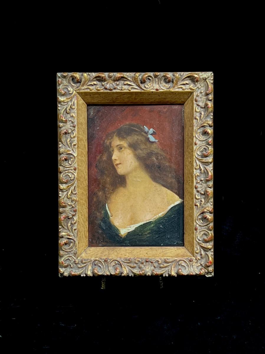 Antique Late 19th C Signed Miniature portrait oil on panel