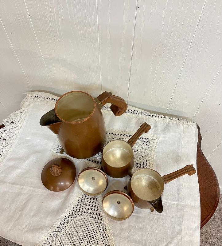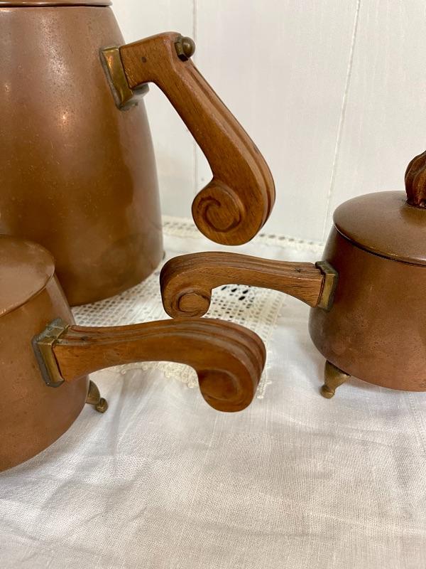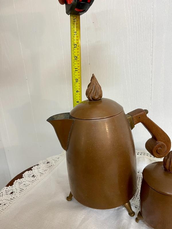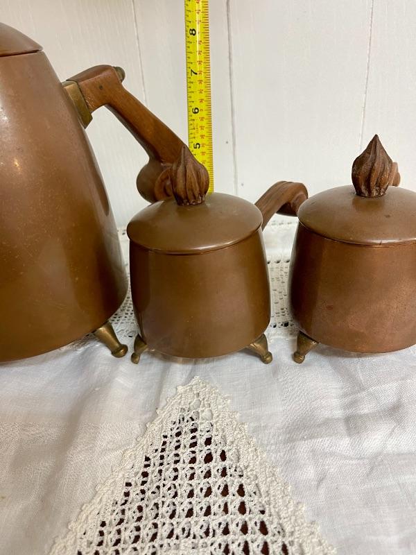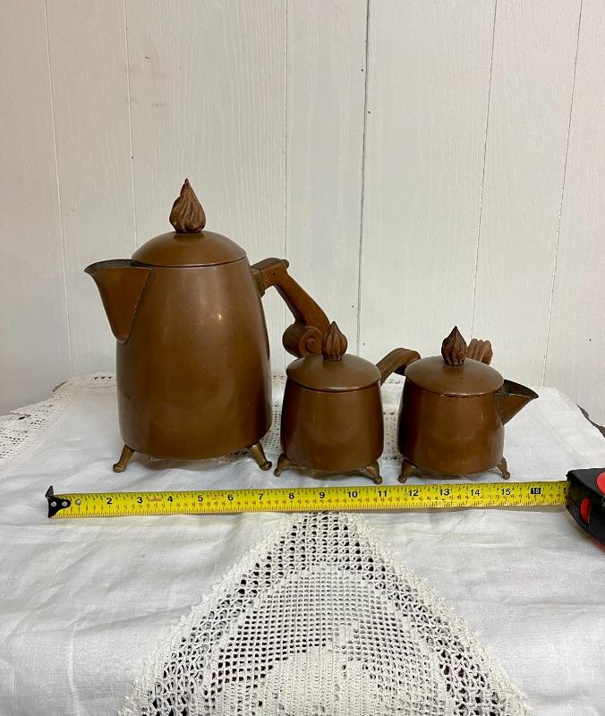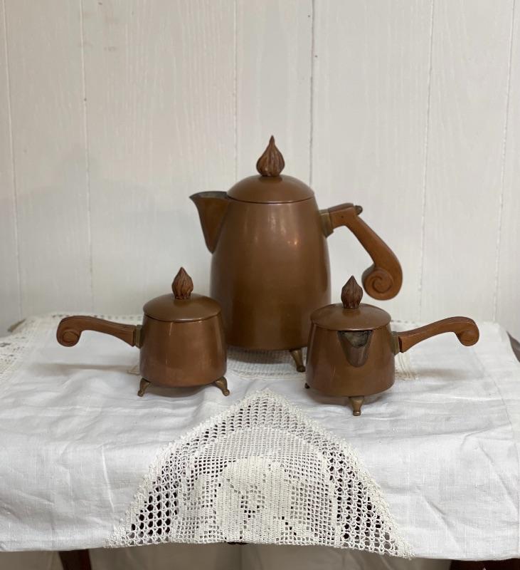 J.C. Moode 3 Pc. Flame Top Copper Tea Set